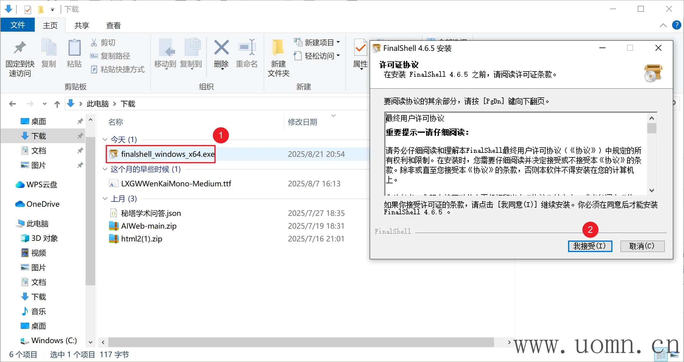 下载完成后双击文件进行安装,安装页面,点击我接受
