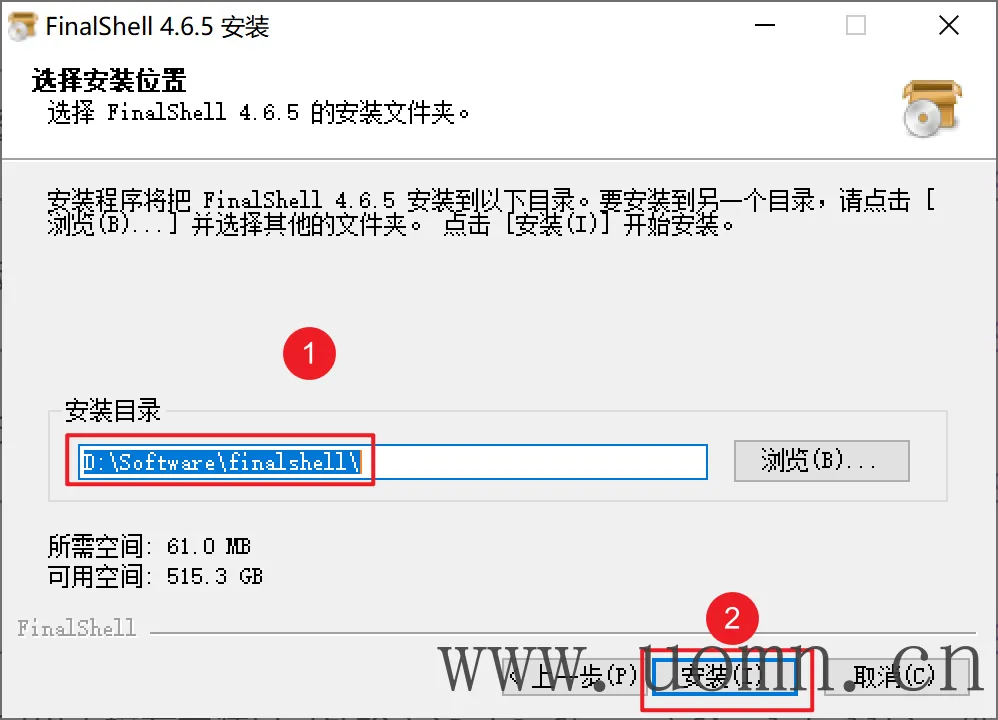 建议不要安装在C盘,可以直接在安装目录处输入D:\Software\finalshell\,然后点安装