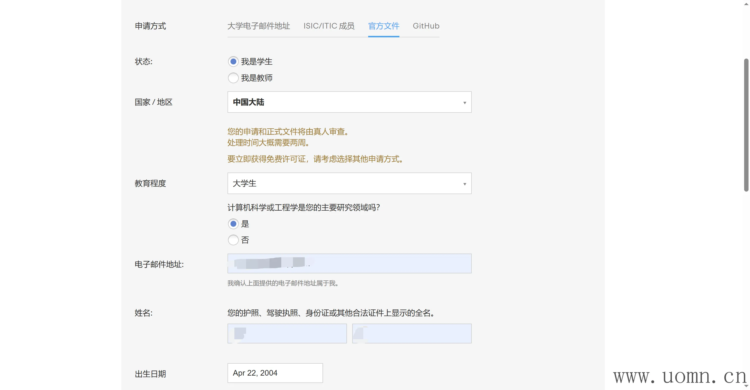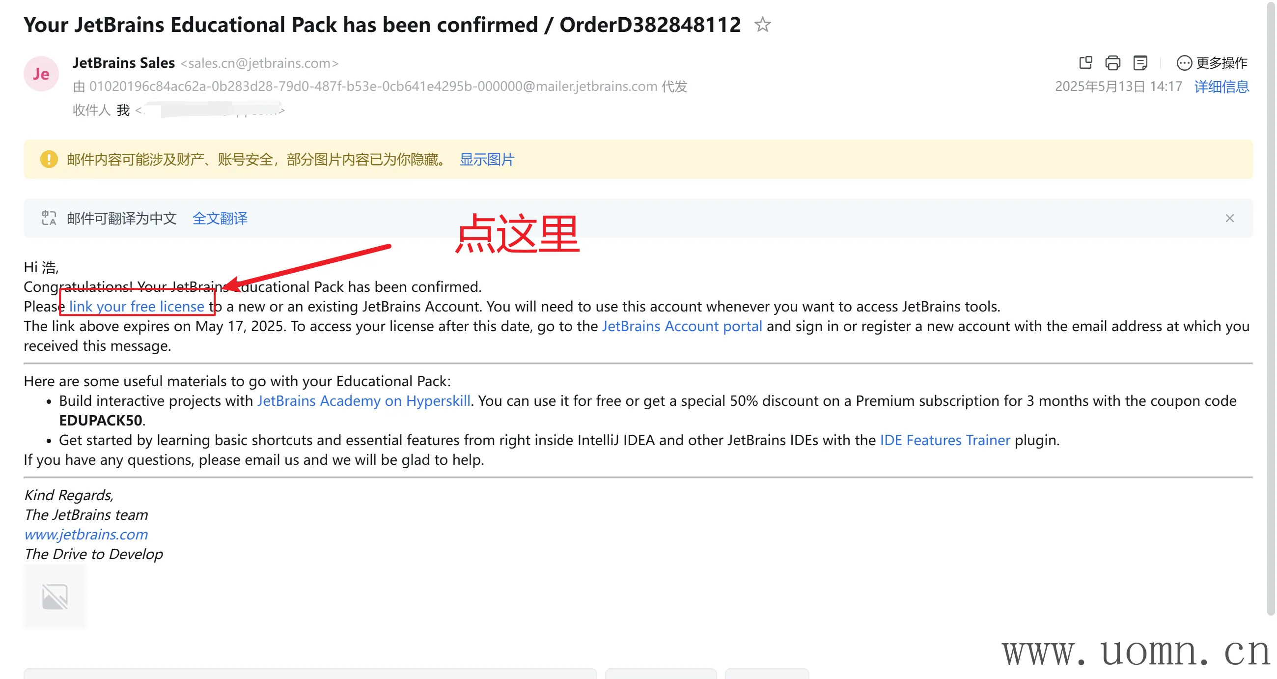 提交申请后等待邮箱通知,一般一两周就OK了,如下图,你需要在指定时间内,将许可证链接到你的账户