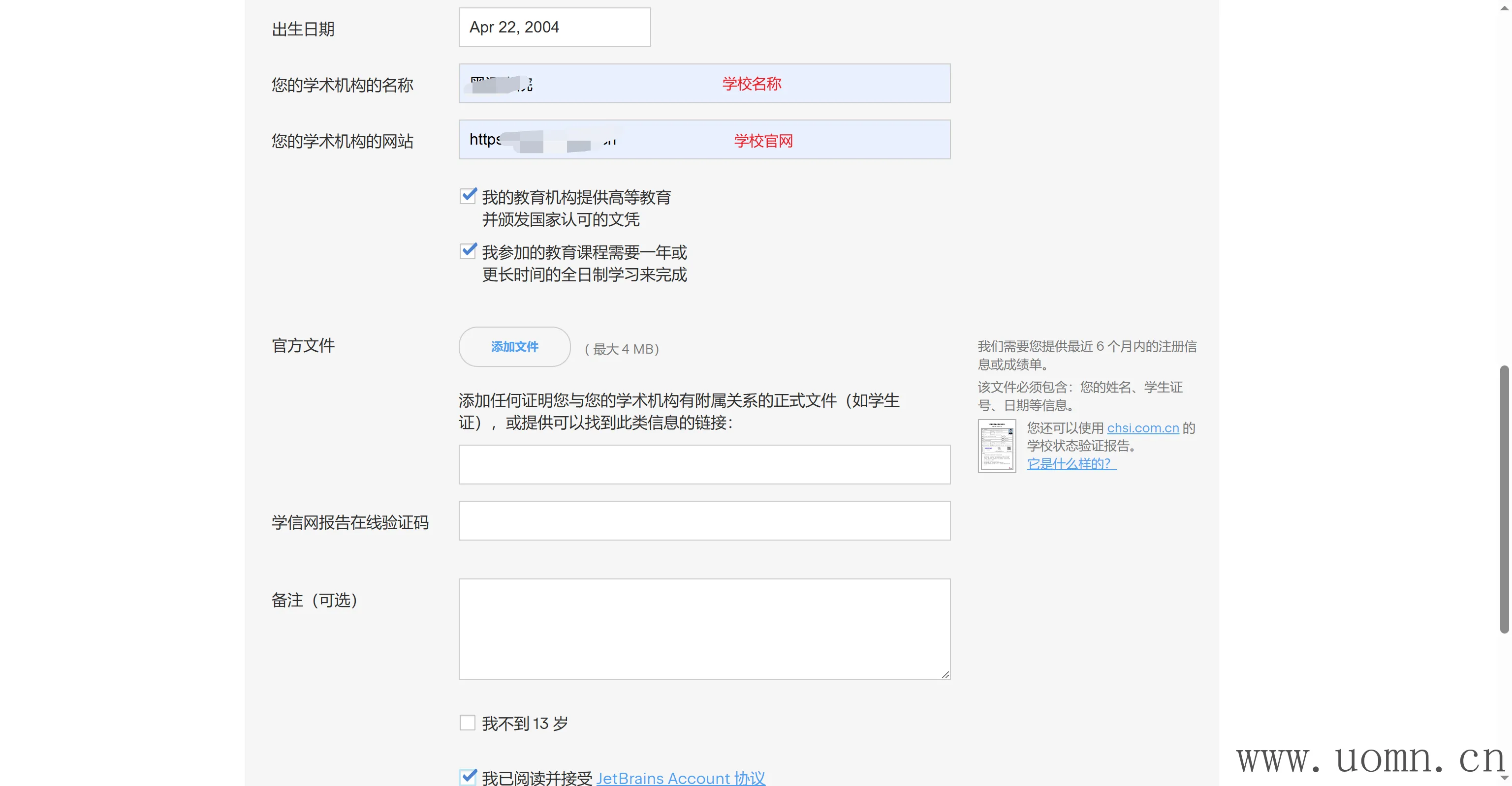 前端时间,Jetbrains公司开放了学生认证,认证过后,学生能够在在校期间免费使用专业版软件。本教程适用于 无教育邮箱学校的学生