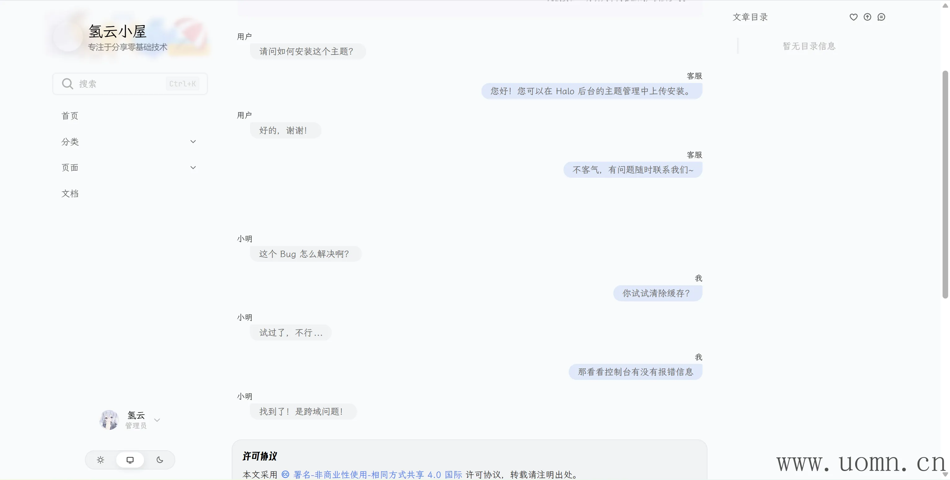 <c-chat-item name="客服" self>您好!您可以在 Halo 后台的主题管理中上传安装。</c-chat-item>
