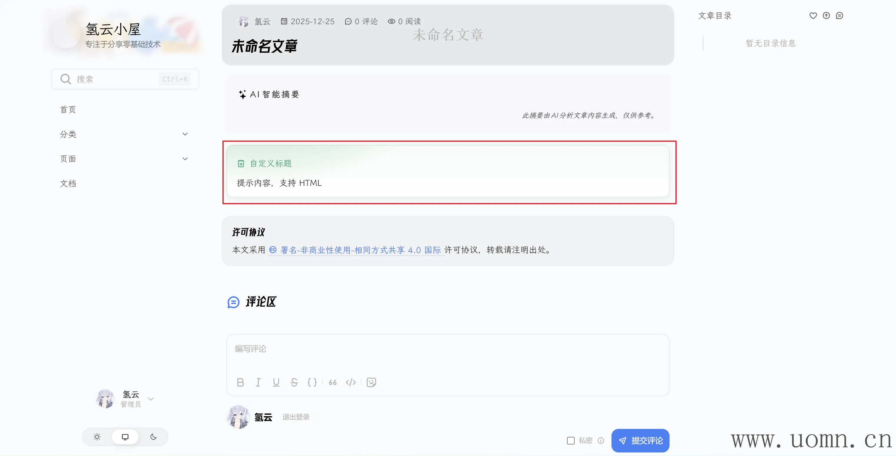 Clarity主题中内自定义的内容组件的使用方法及效果展示
