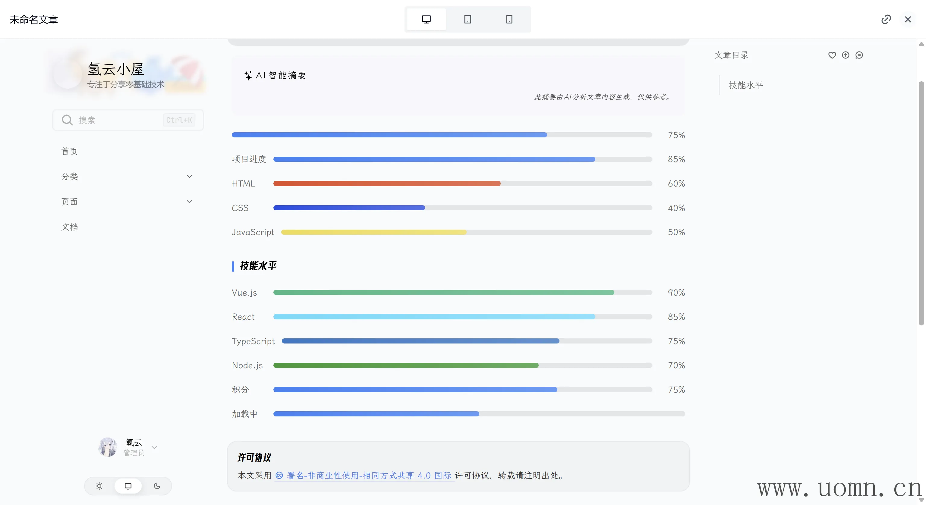 效果:显示 75% 的进度条