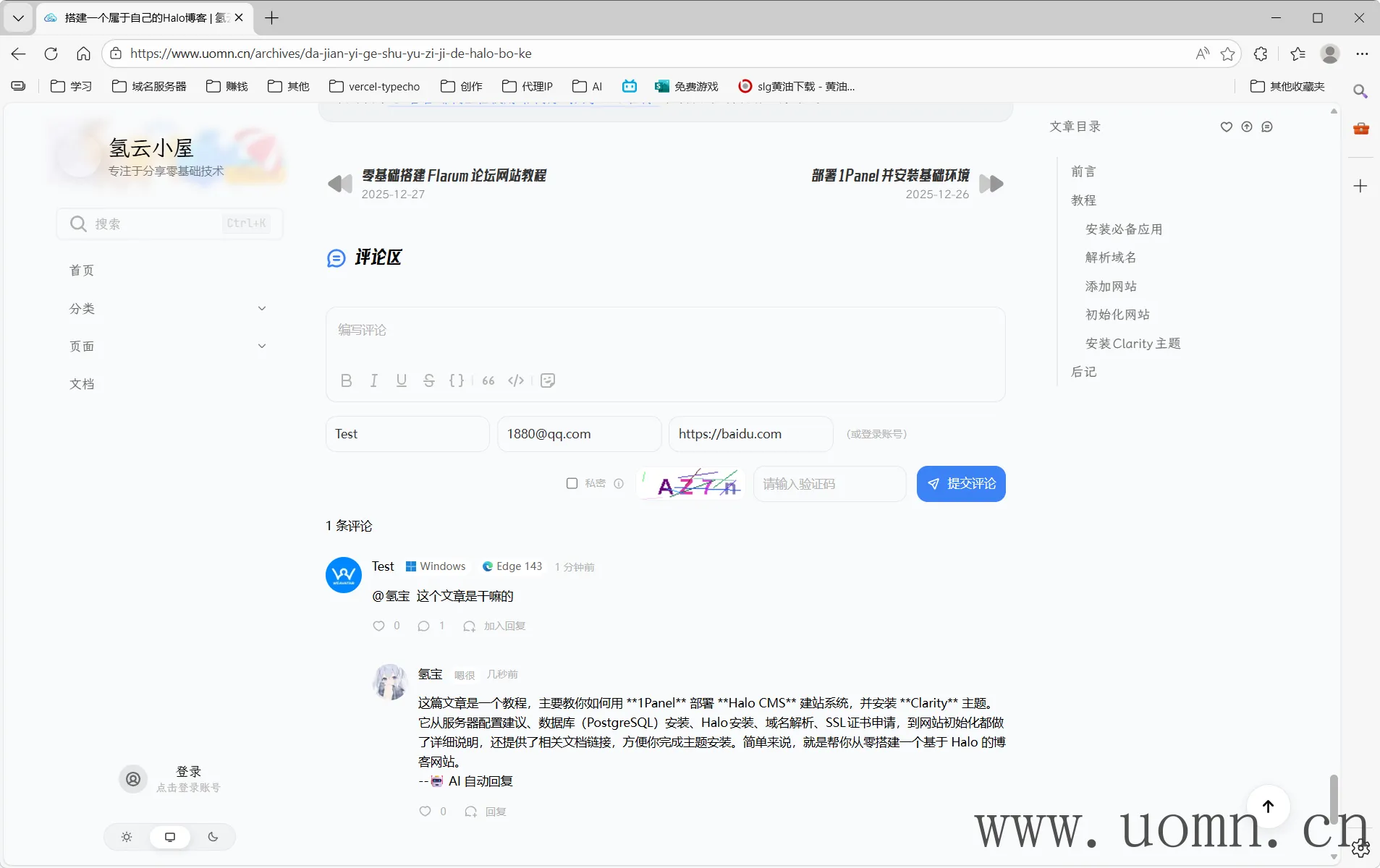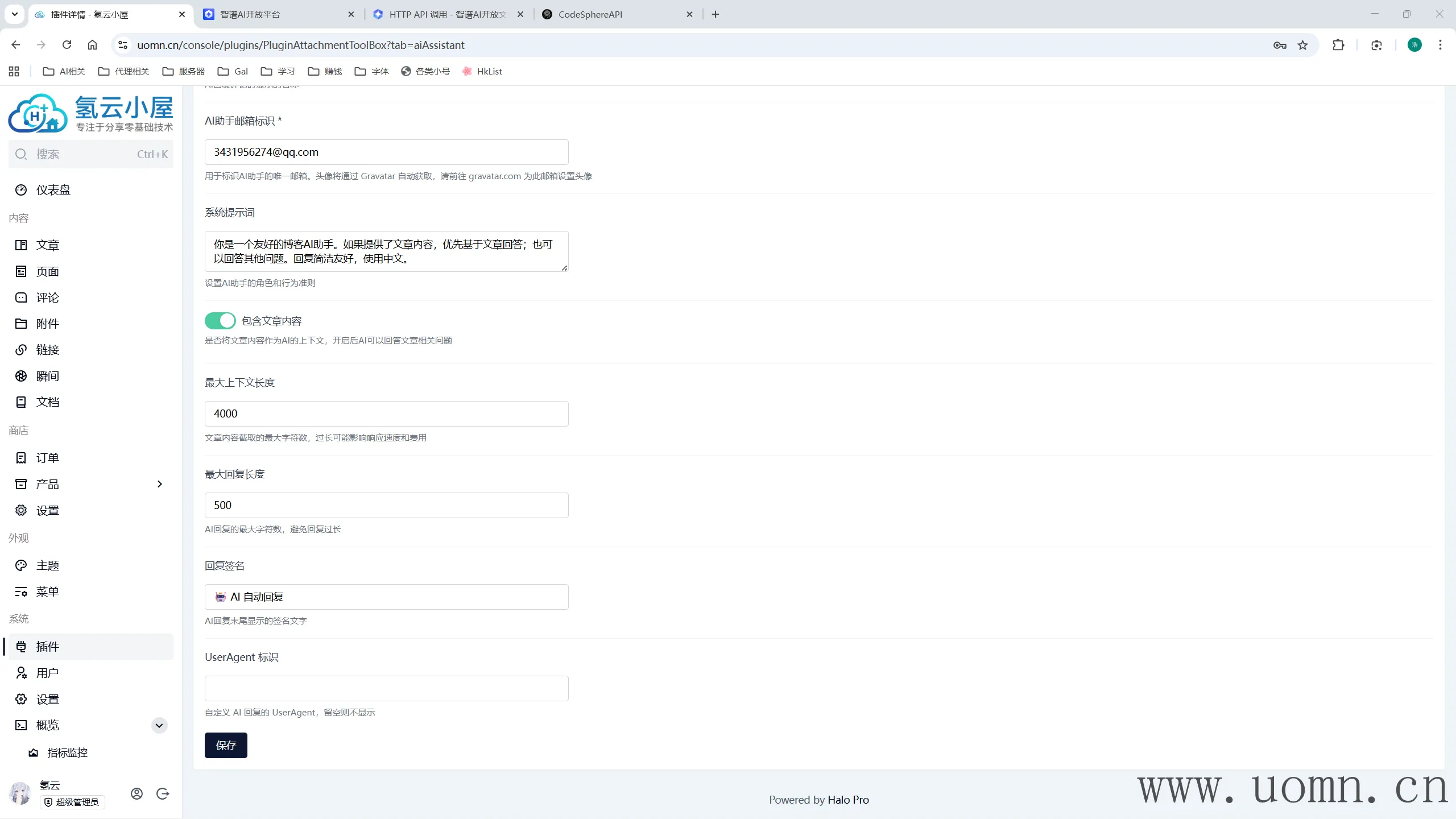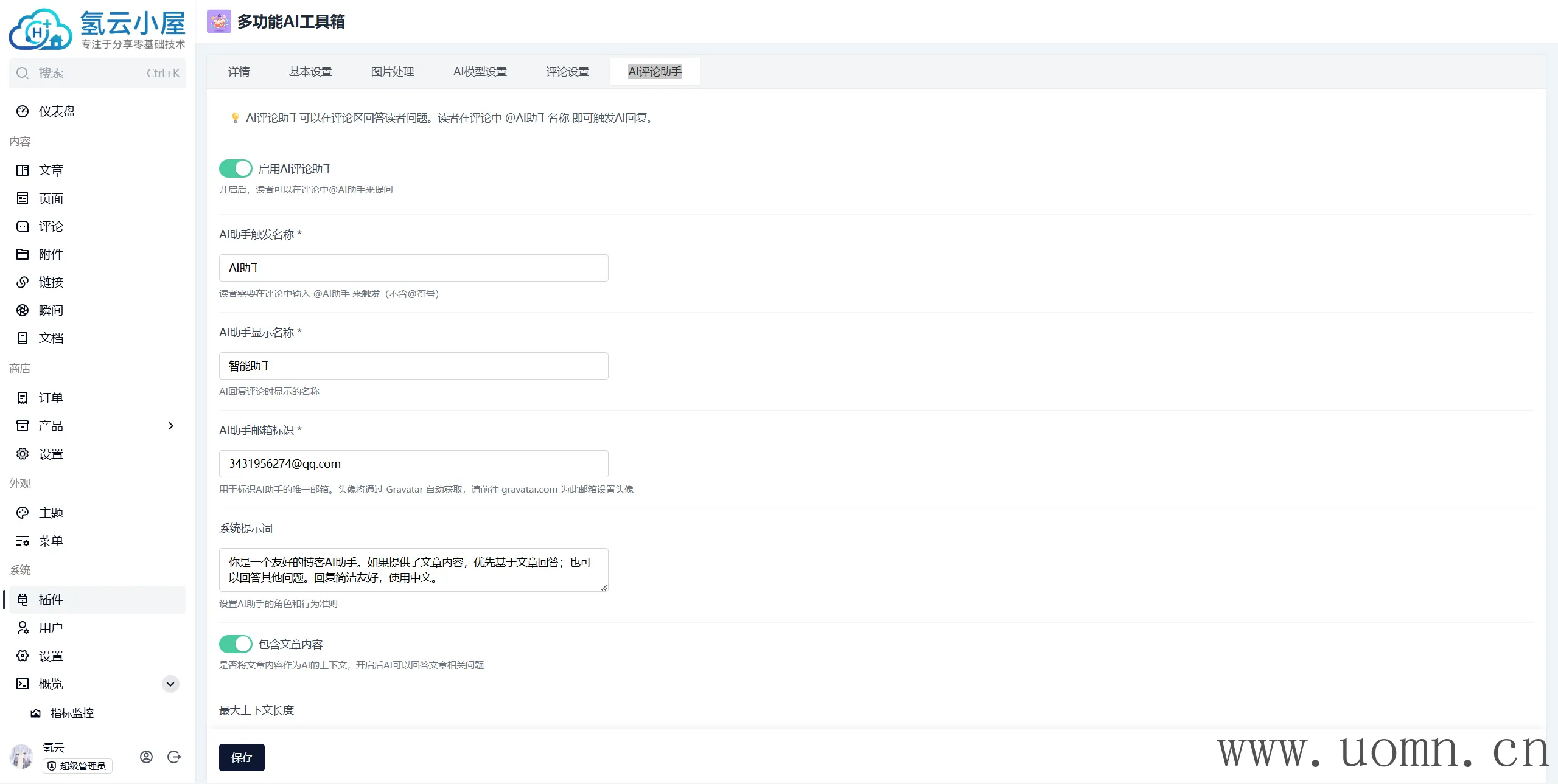 当启用后,用户在文章评论区评论,插件会携带文章内容和用户评论一起发给AI助手生成回复,AI助手可以根据文章内容来回复用户的评论