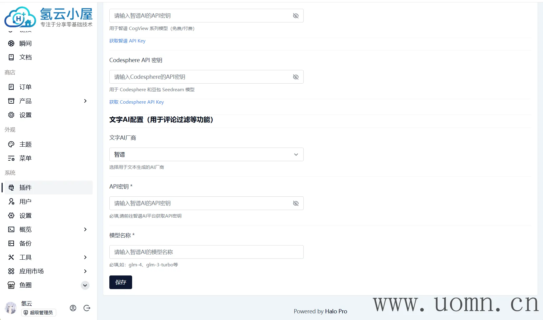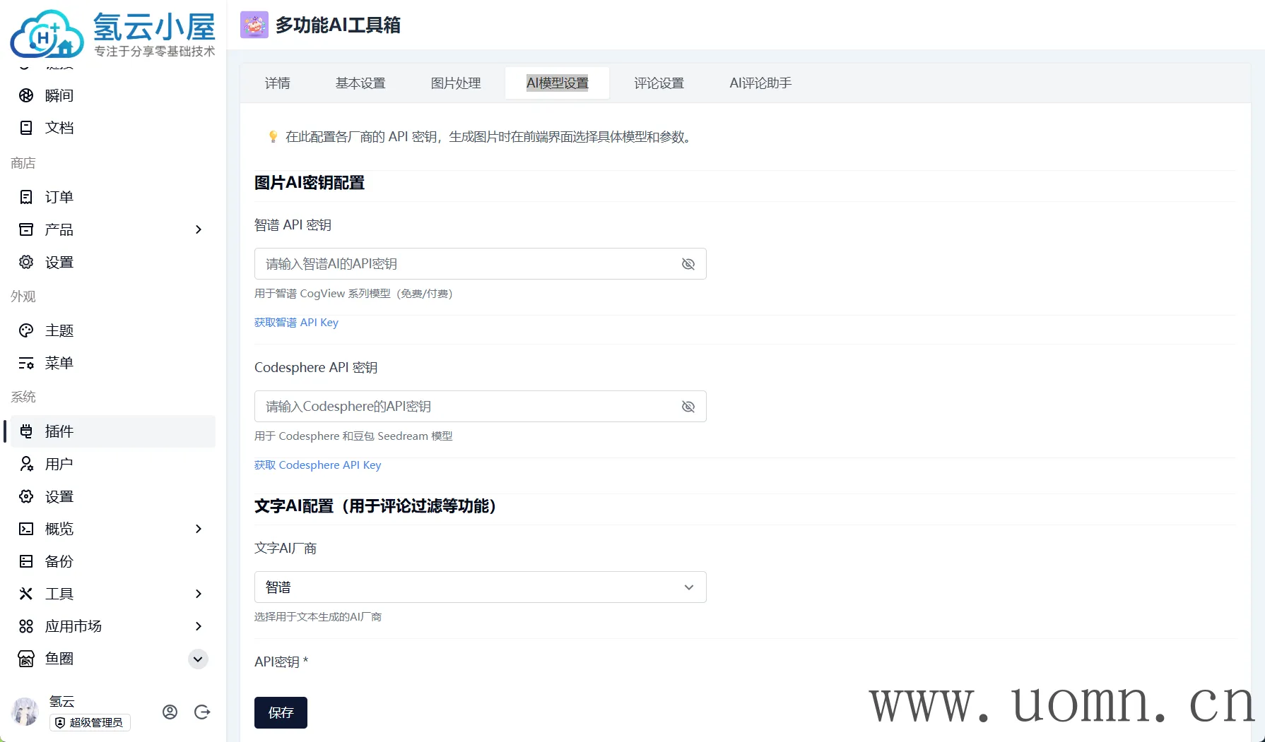 配置项:图片AI密钥配置->智谱 API 密钥