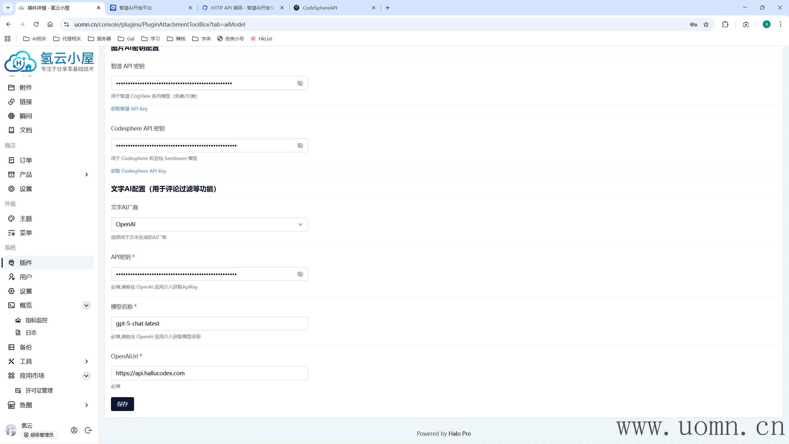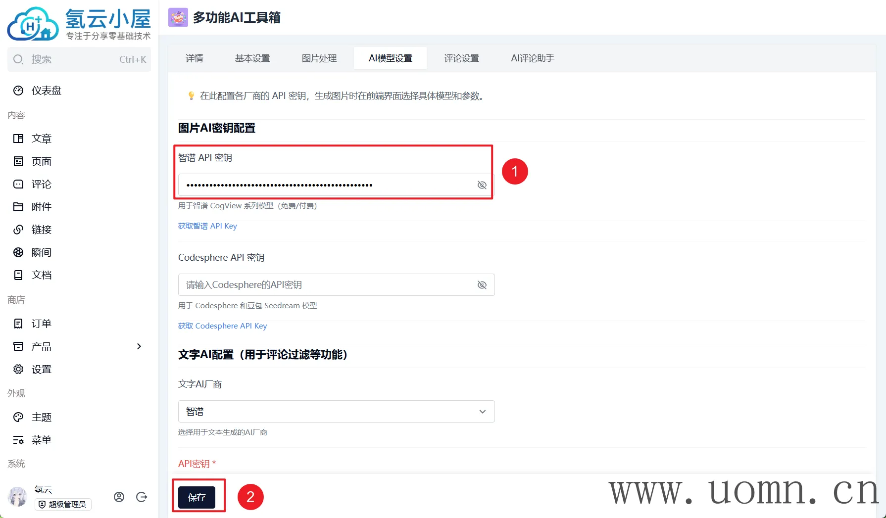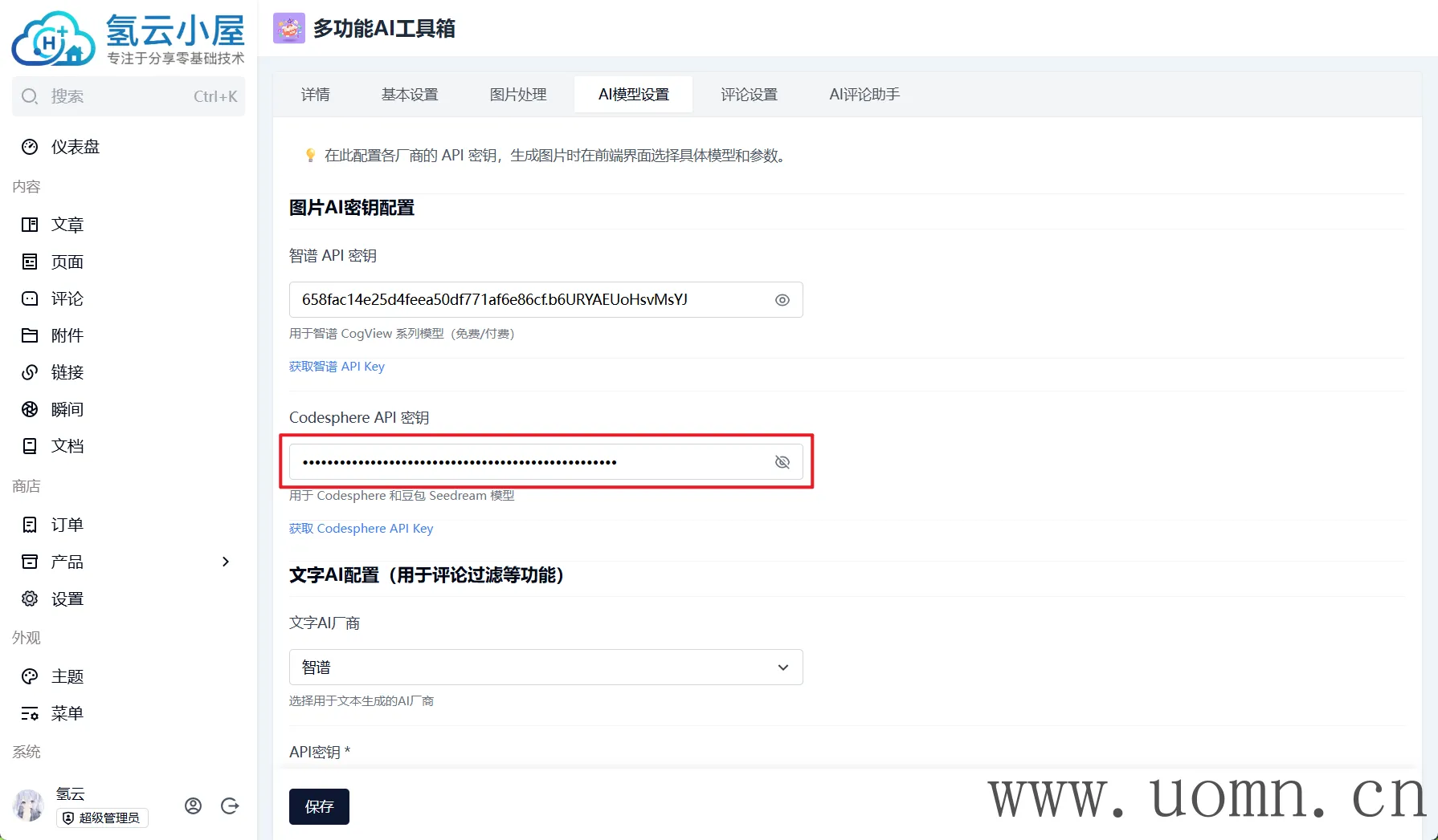 配置项:图片AI密钥配置->Codesphere API 密钥