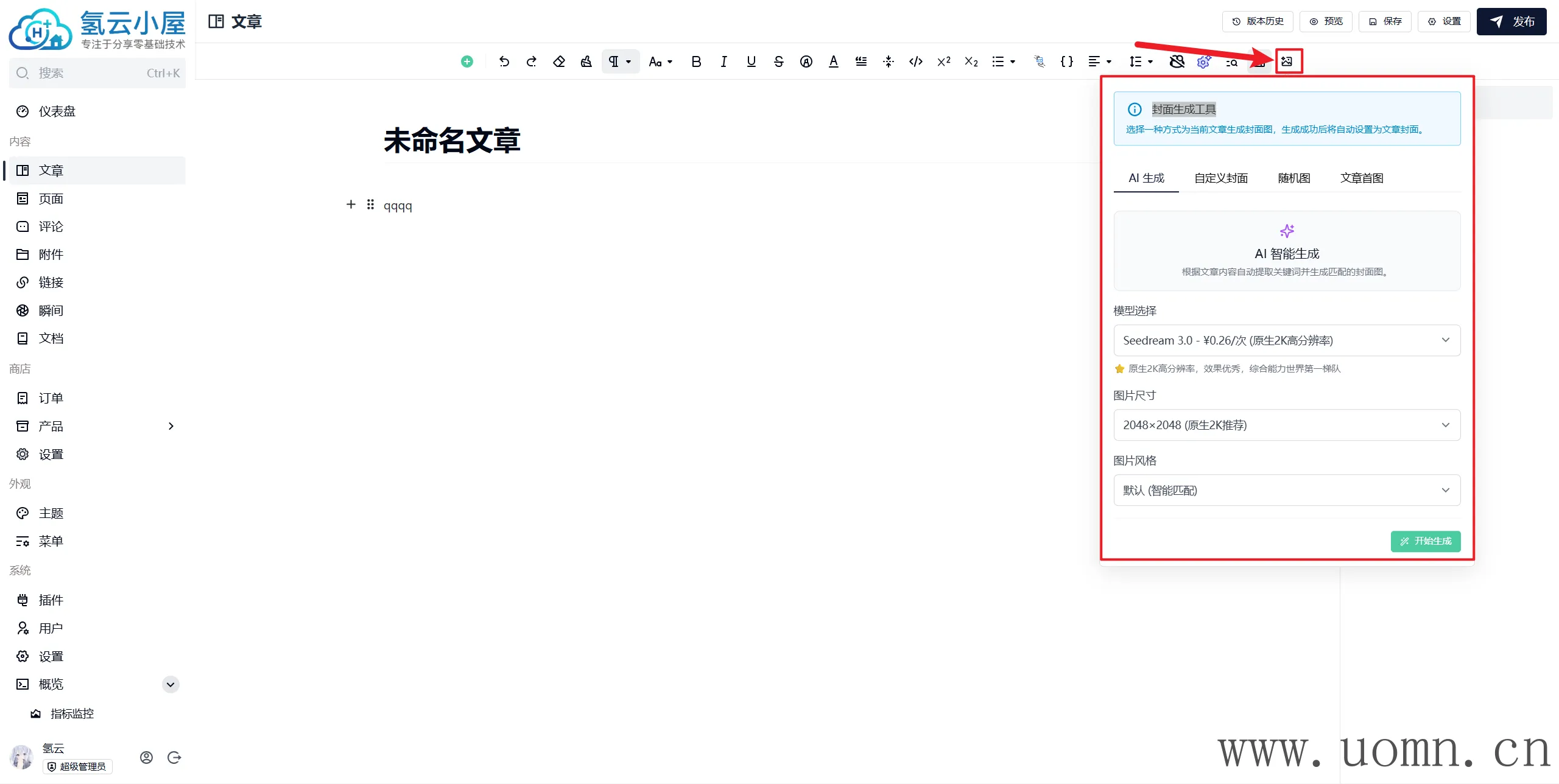 该功能位于文章编辑器的顶部,使用前需要设置好插件中的AI模型设置