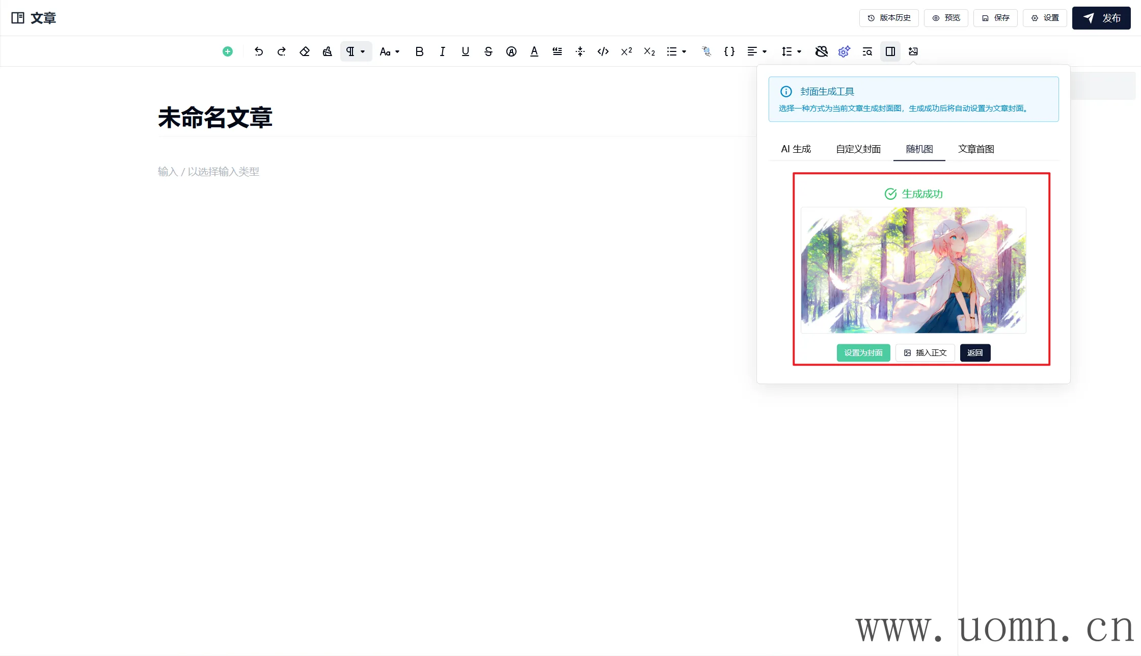 可以用鼠标选中正文的一段话,为这段话生成配图