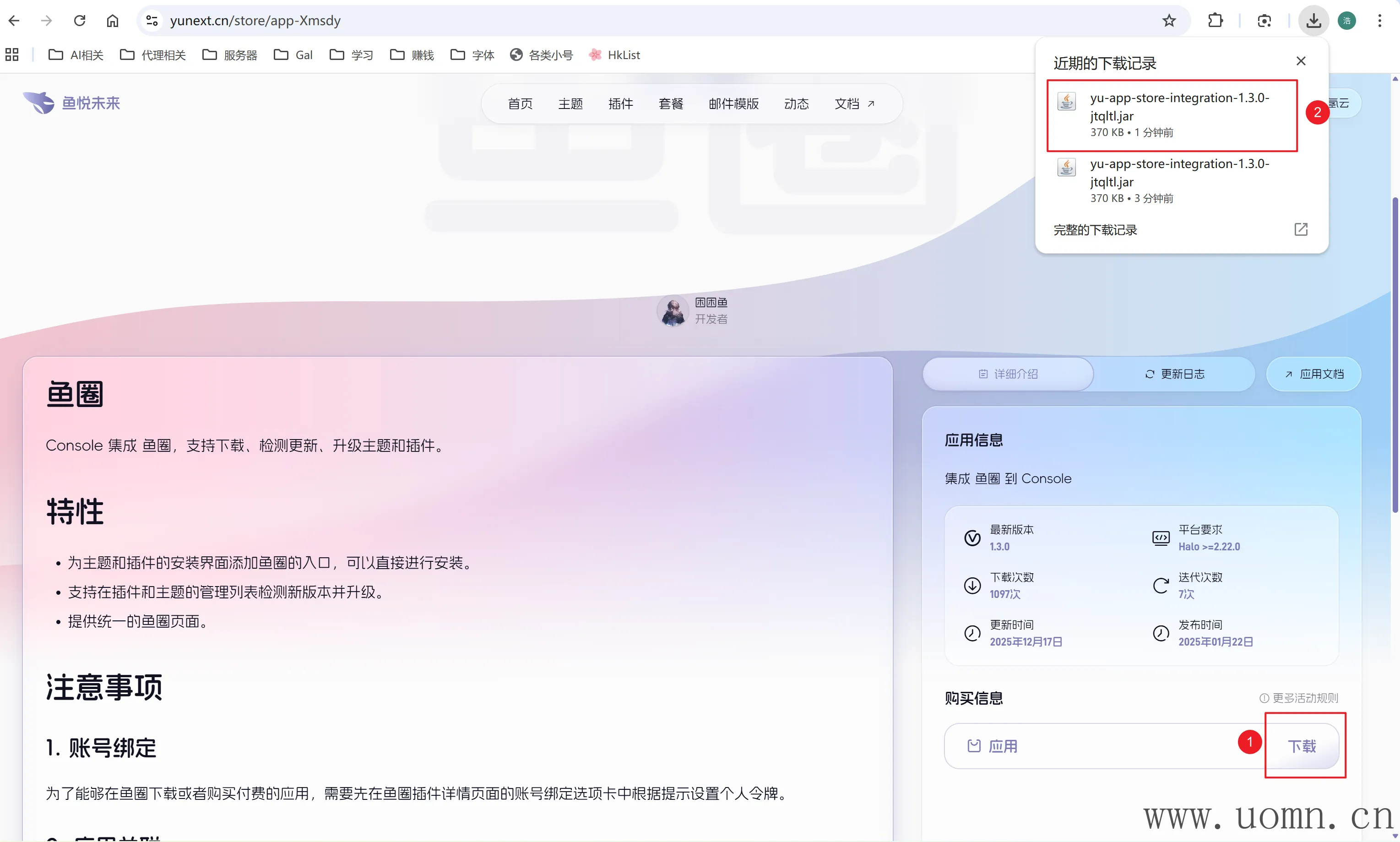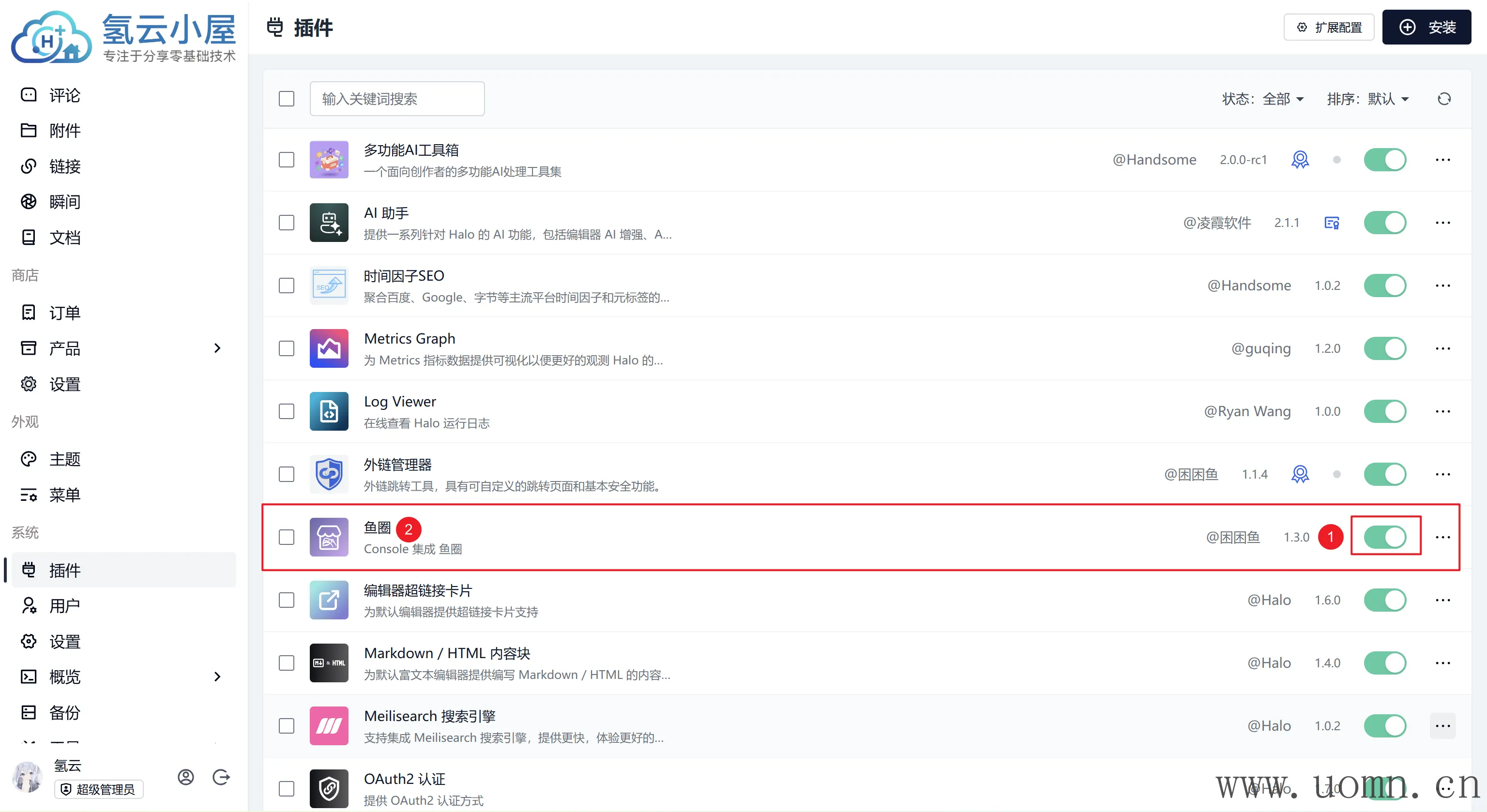 鱼圈为第三方的插件商城,该商城下的插件需要依赖鱼圈插件