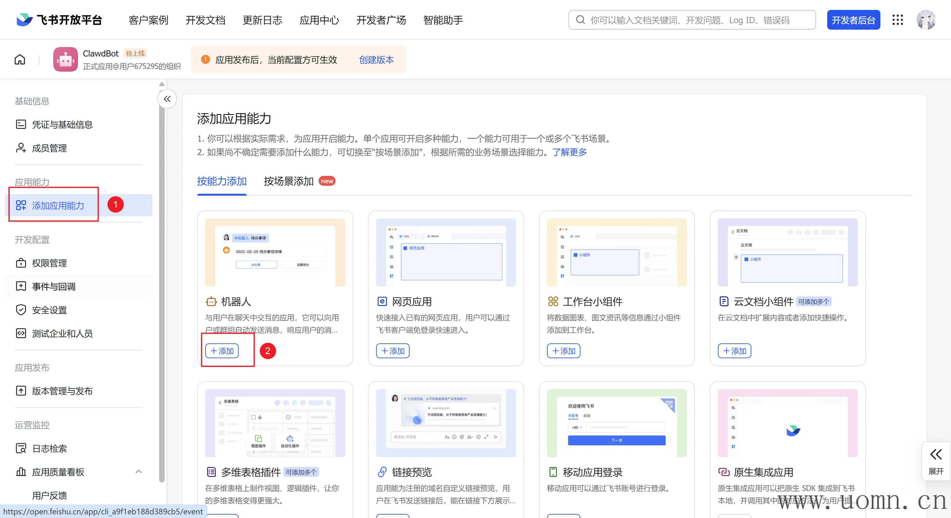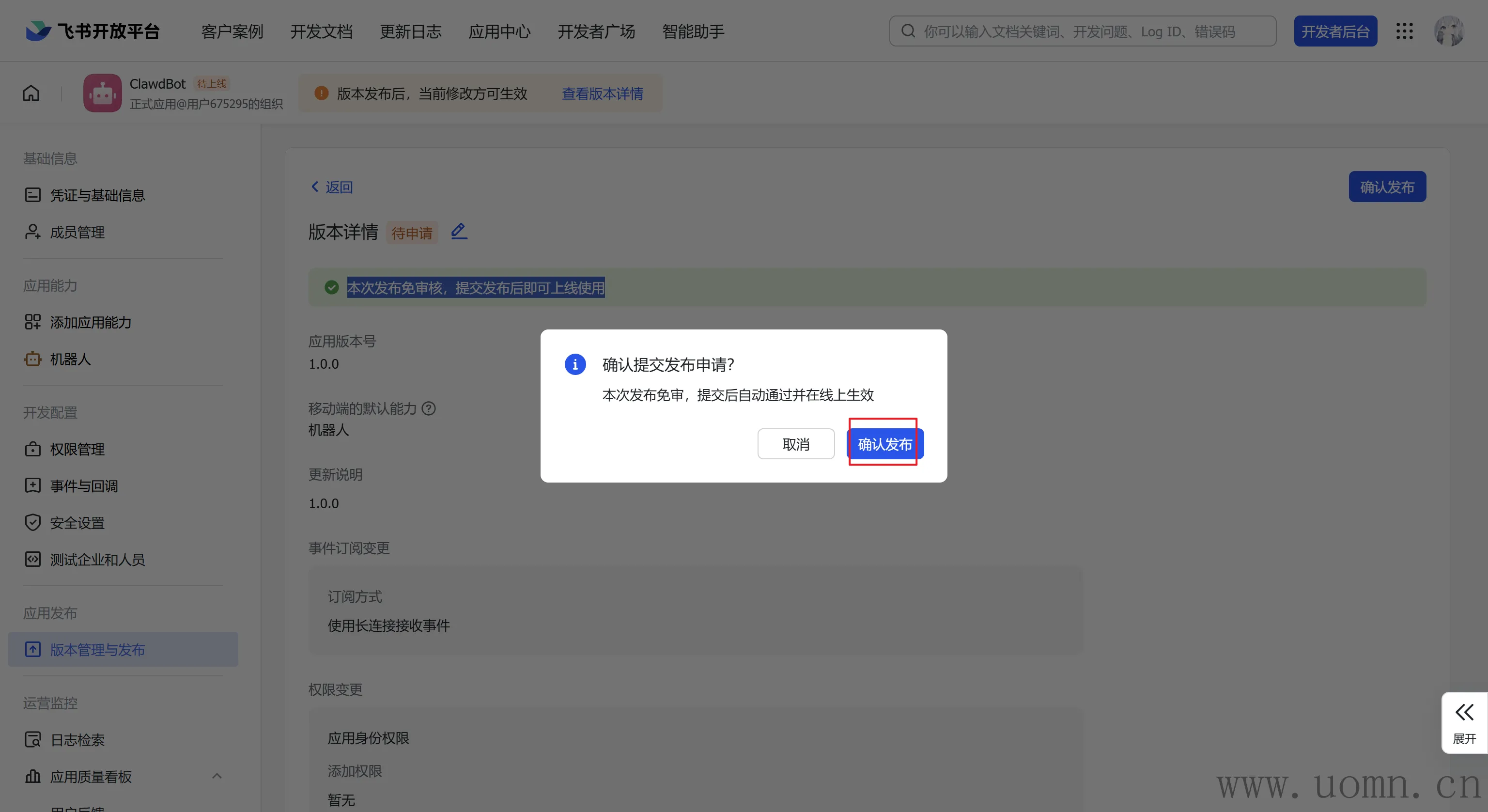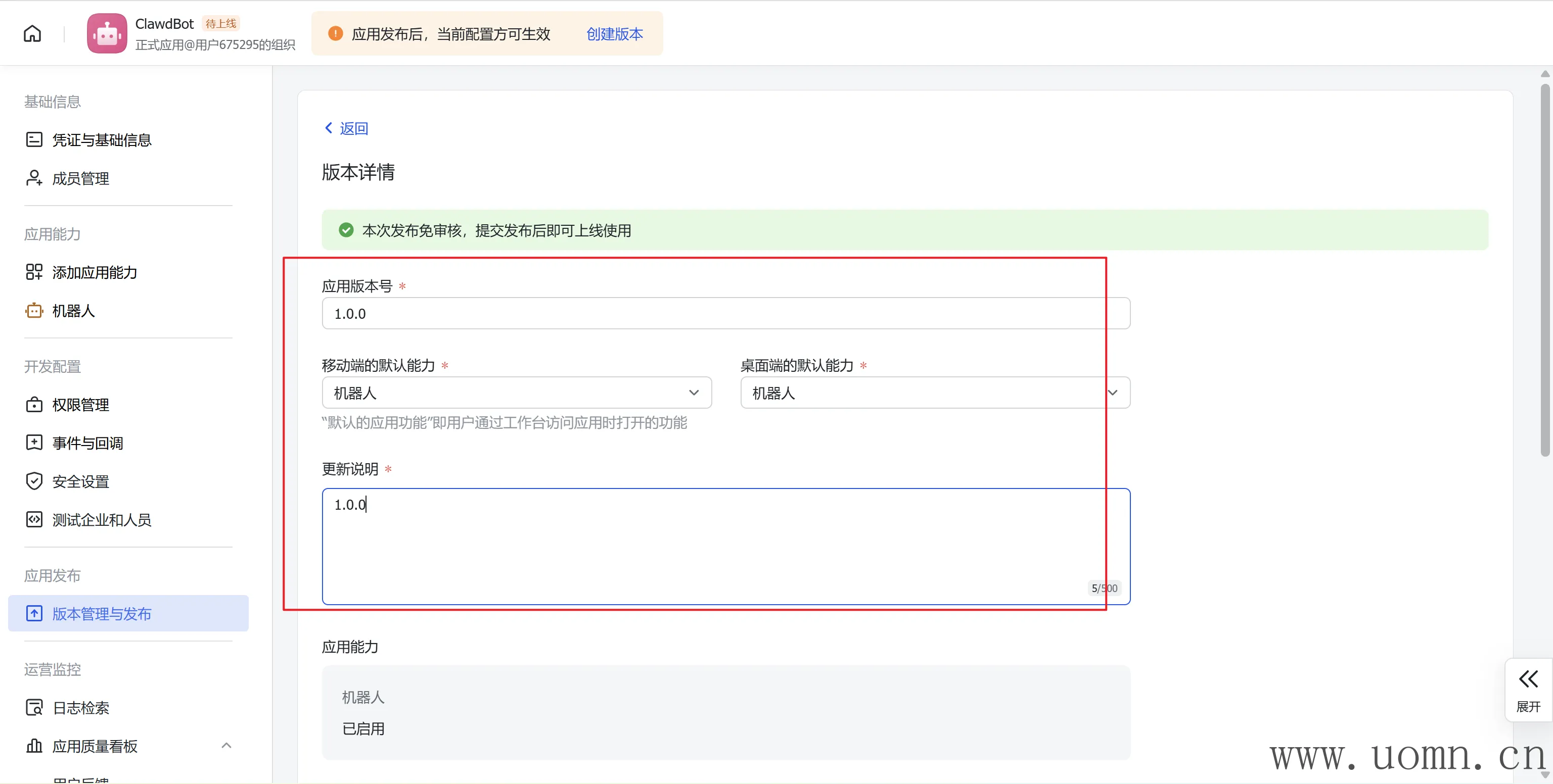 创建版本后发布机器人