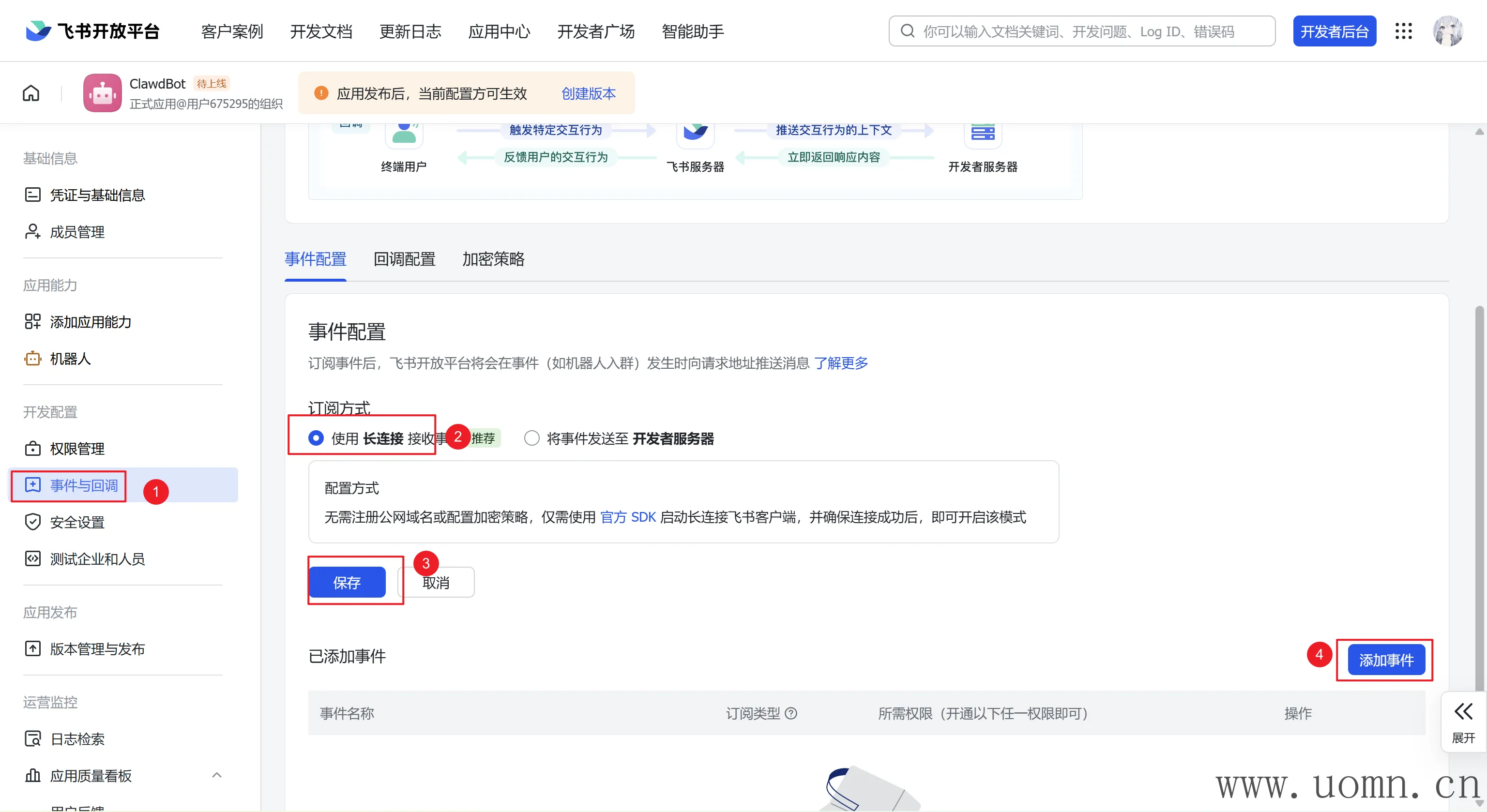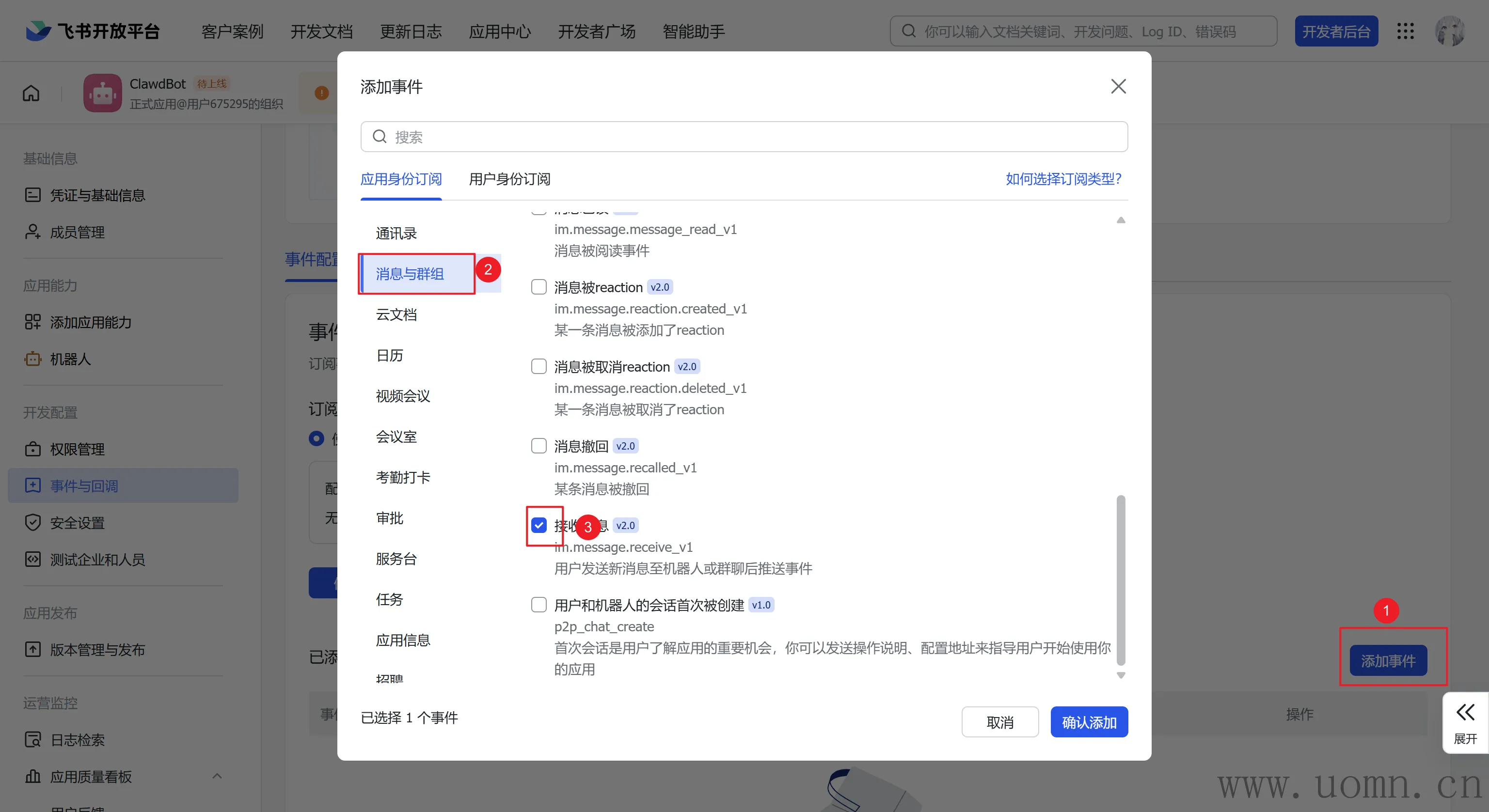 添加飞书消息事件