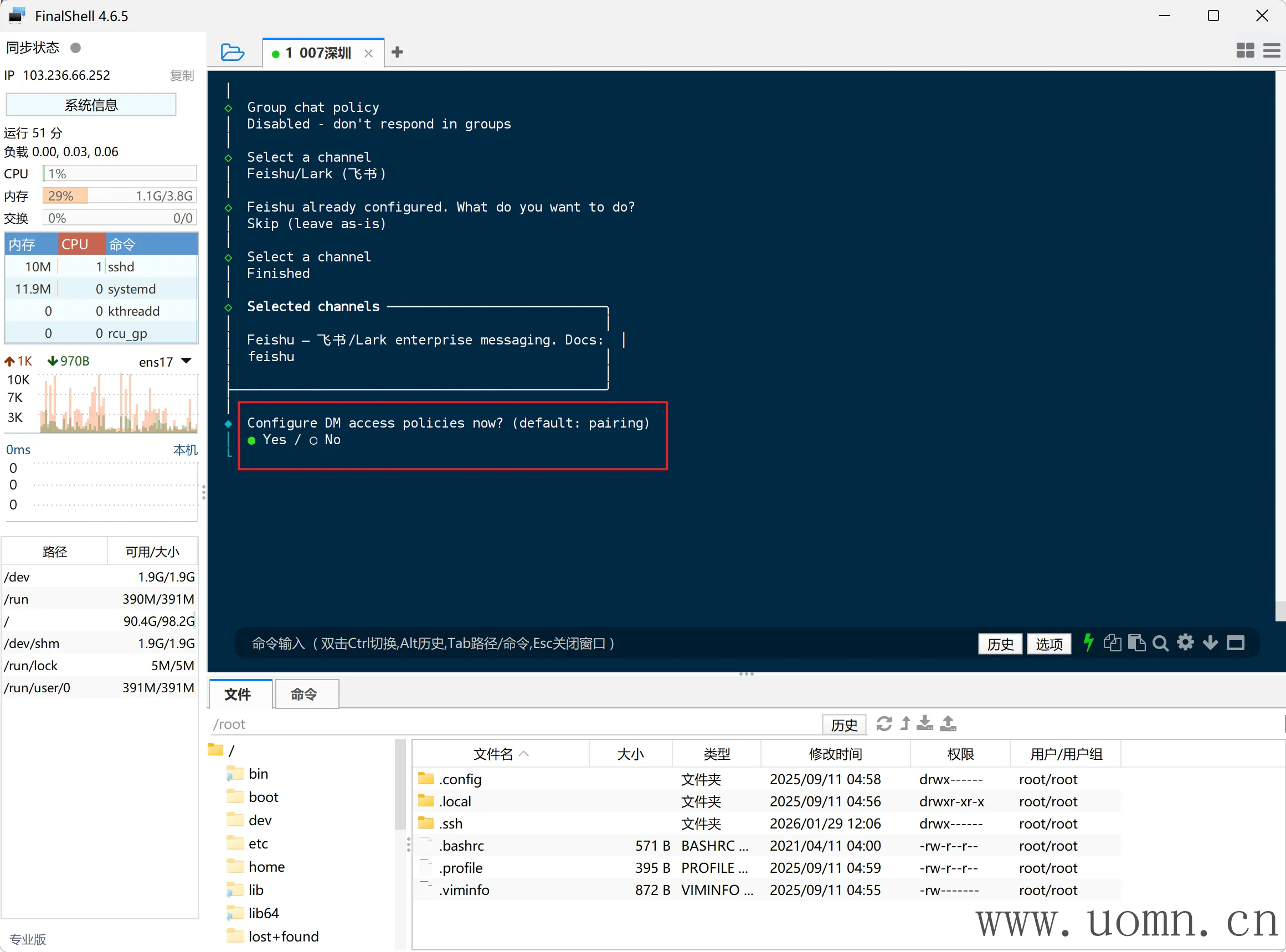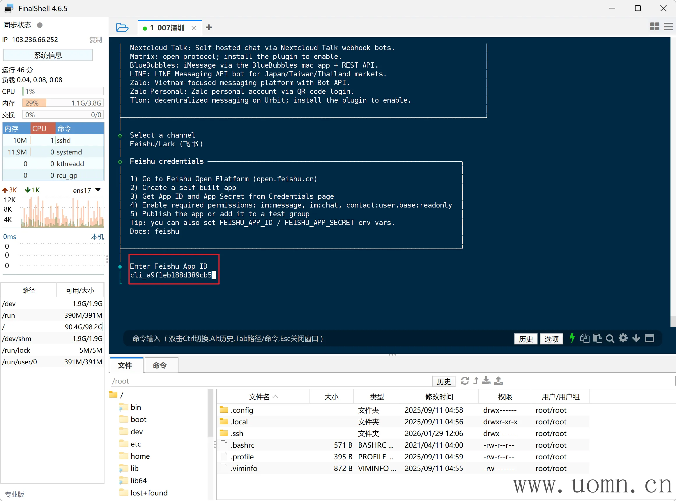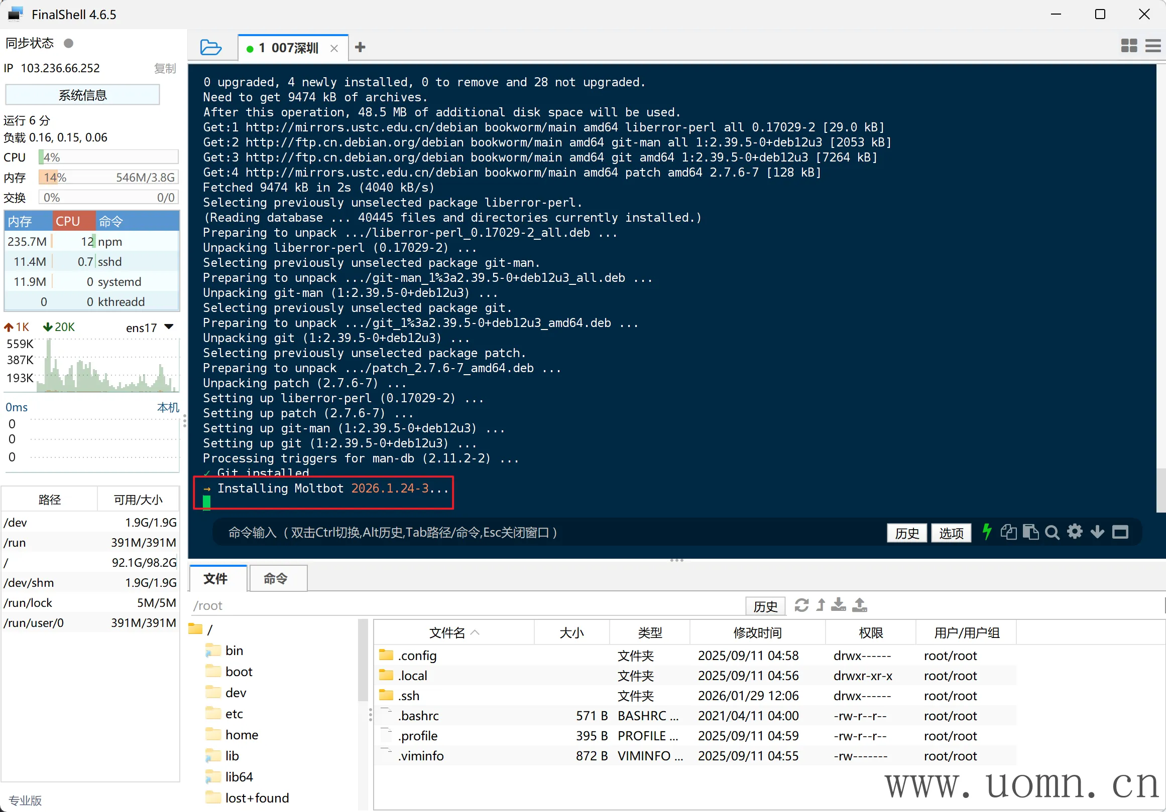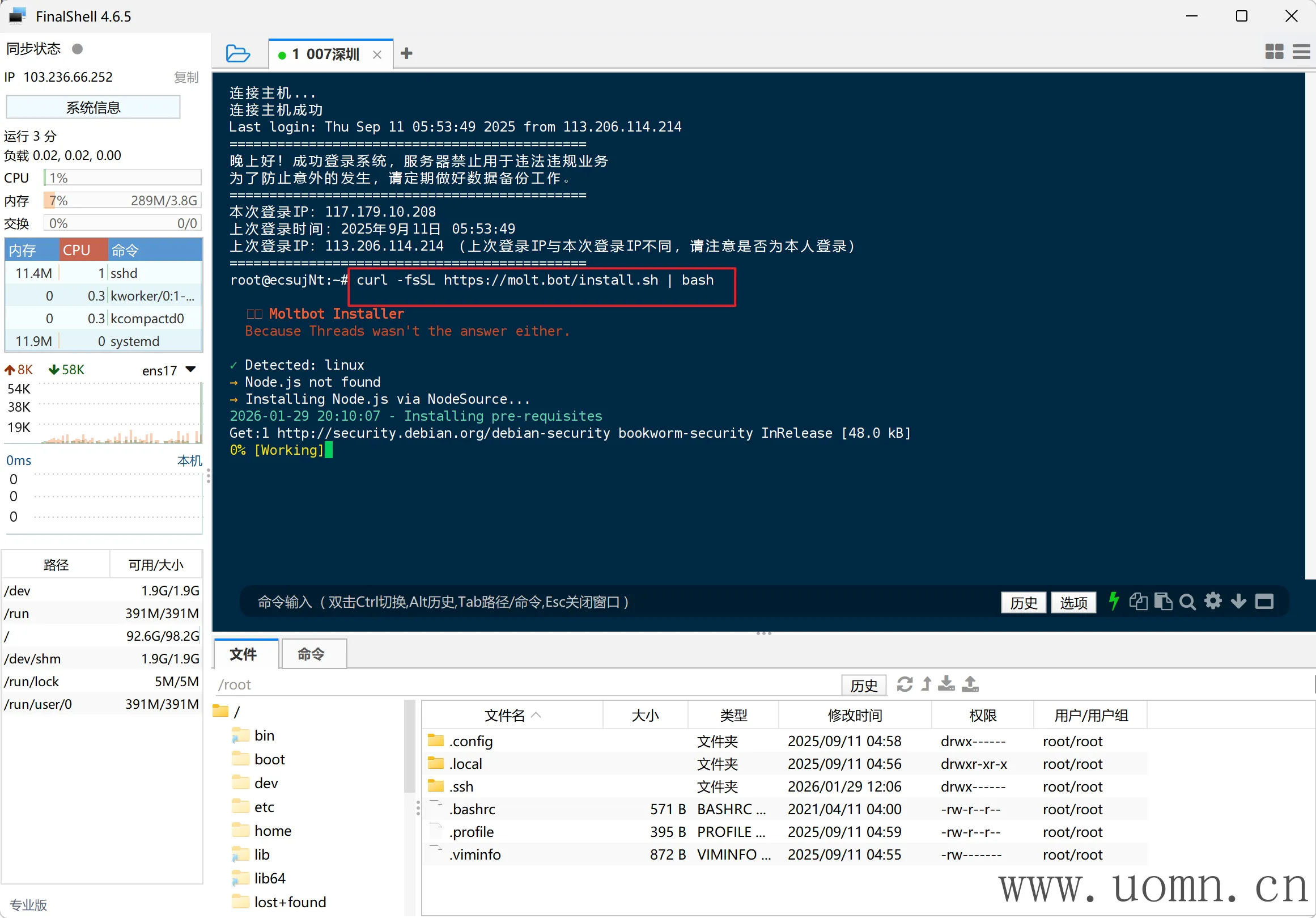 连上SSH后,执行命令进行安装