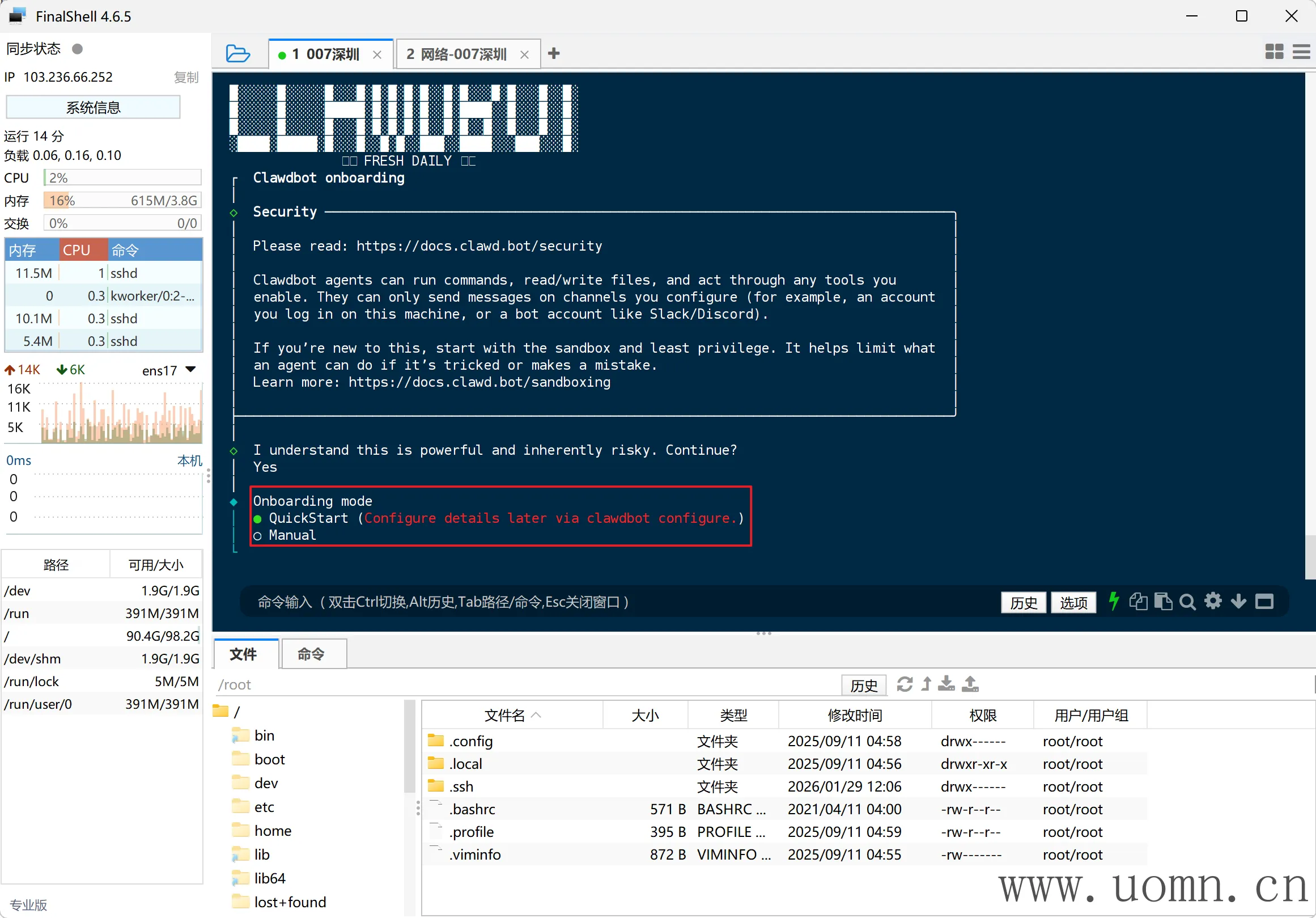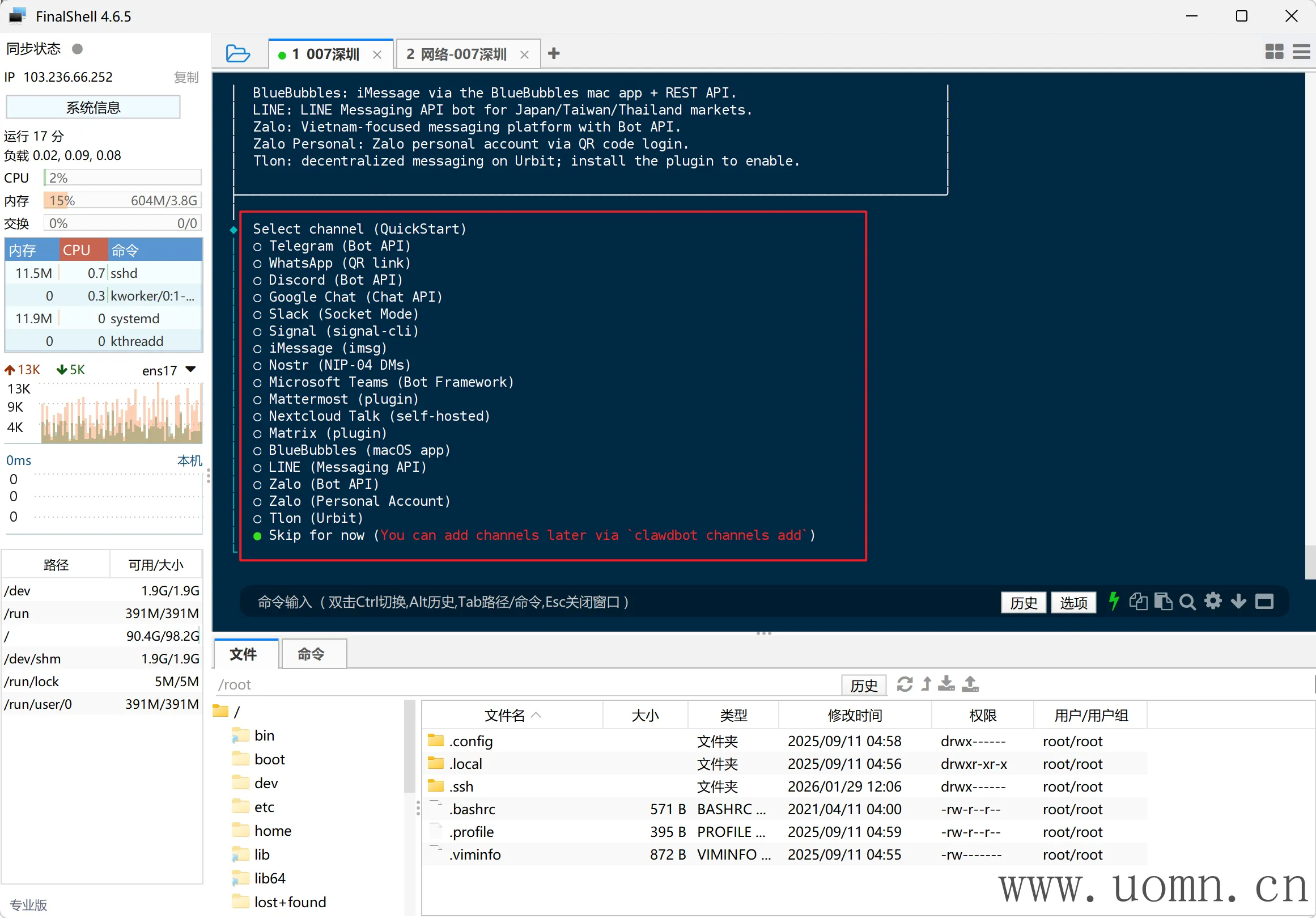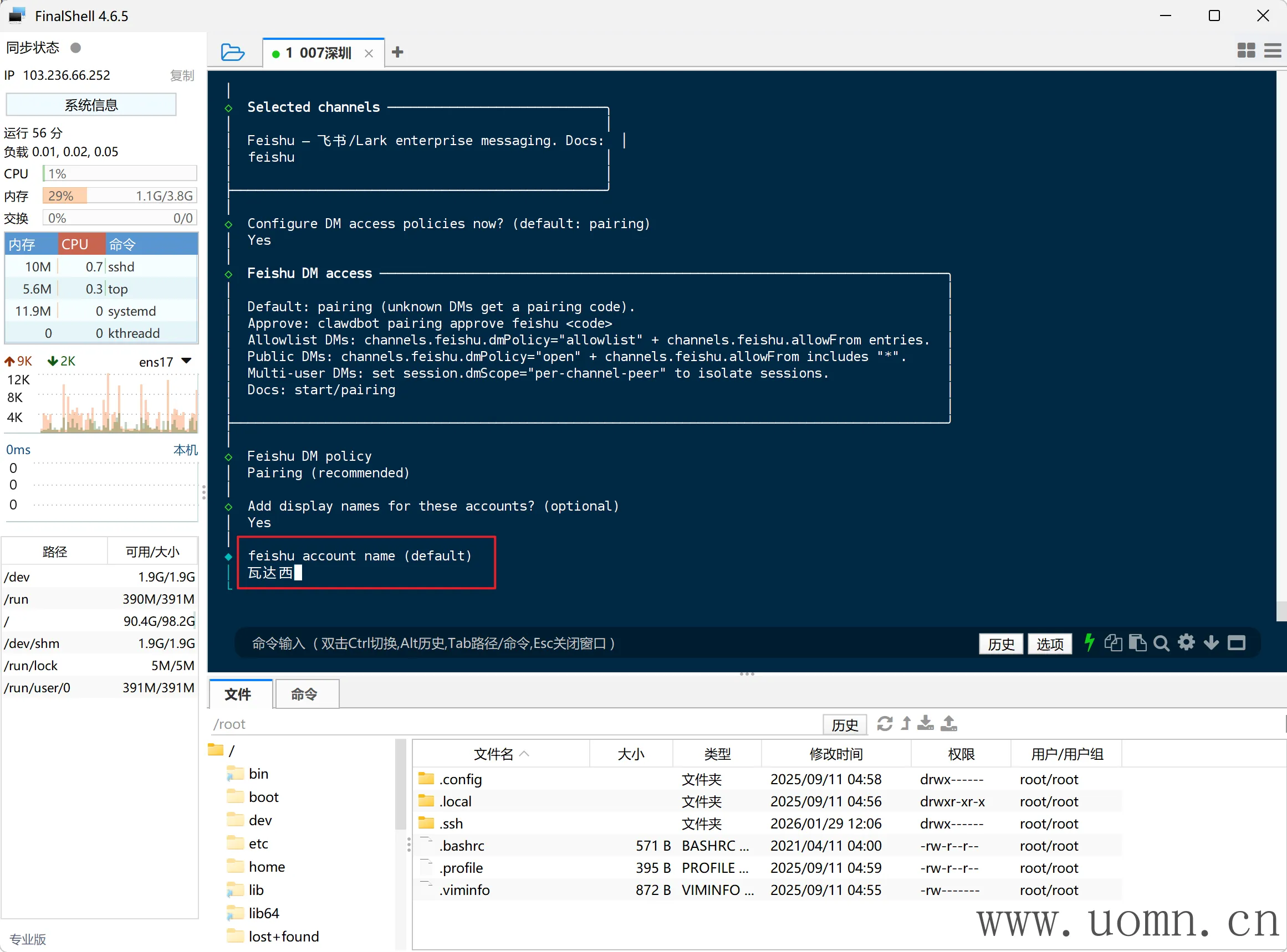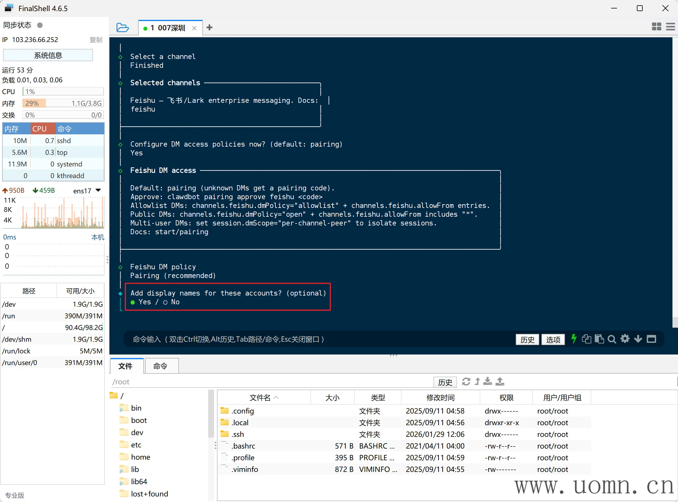 连上SSH后,执行命令进行安装