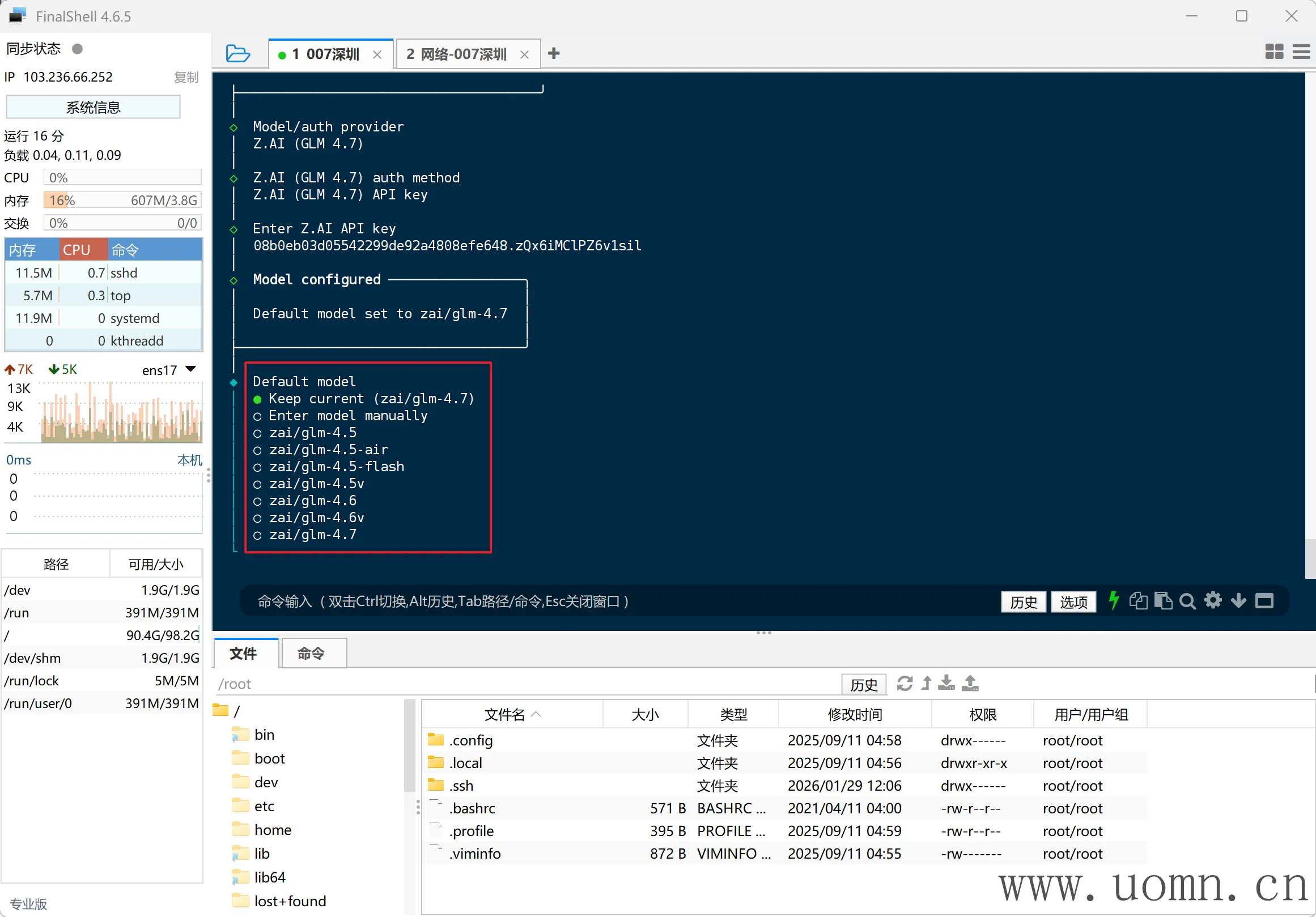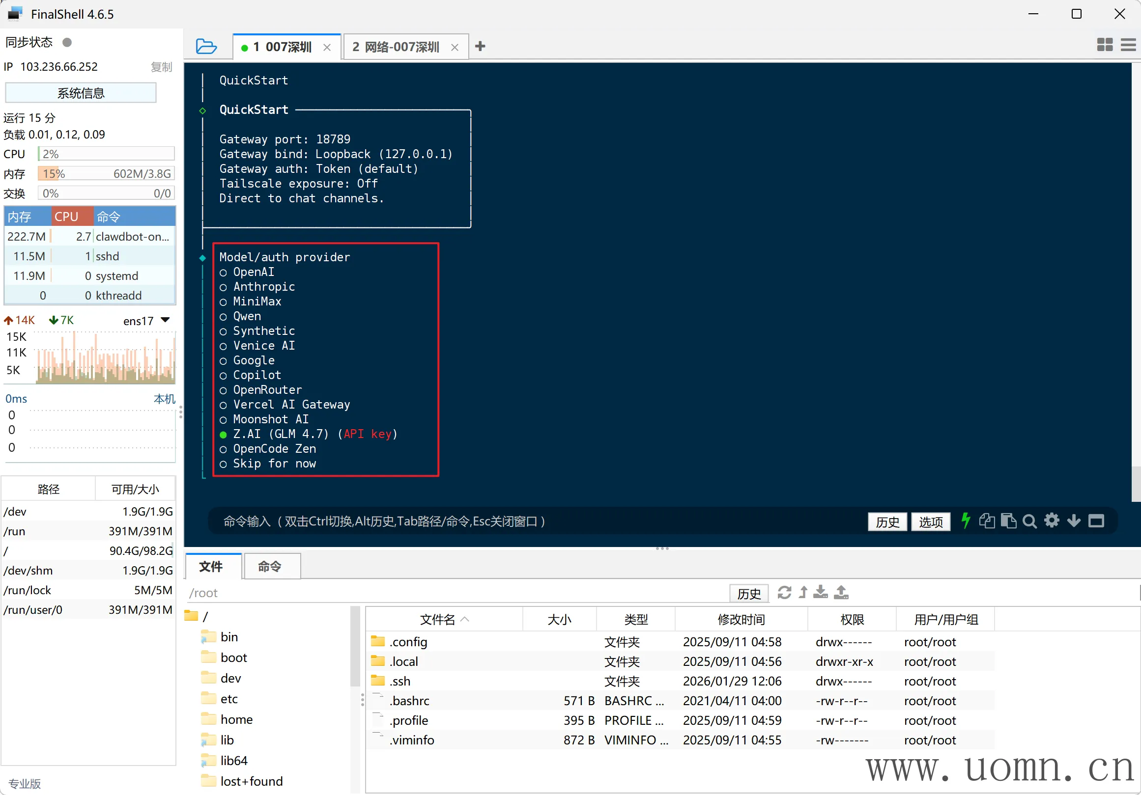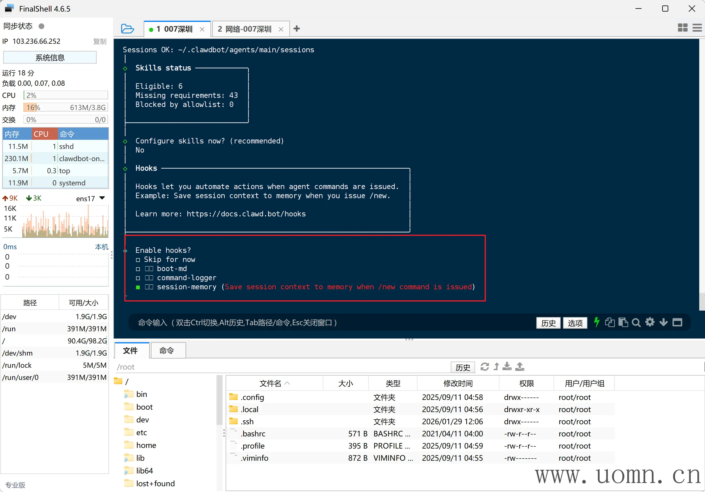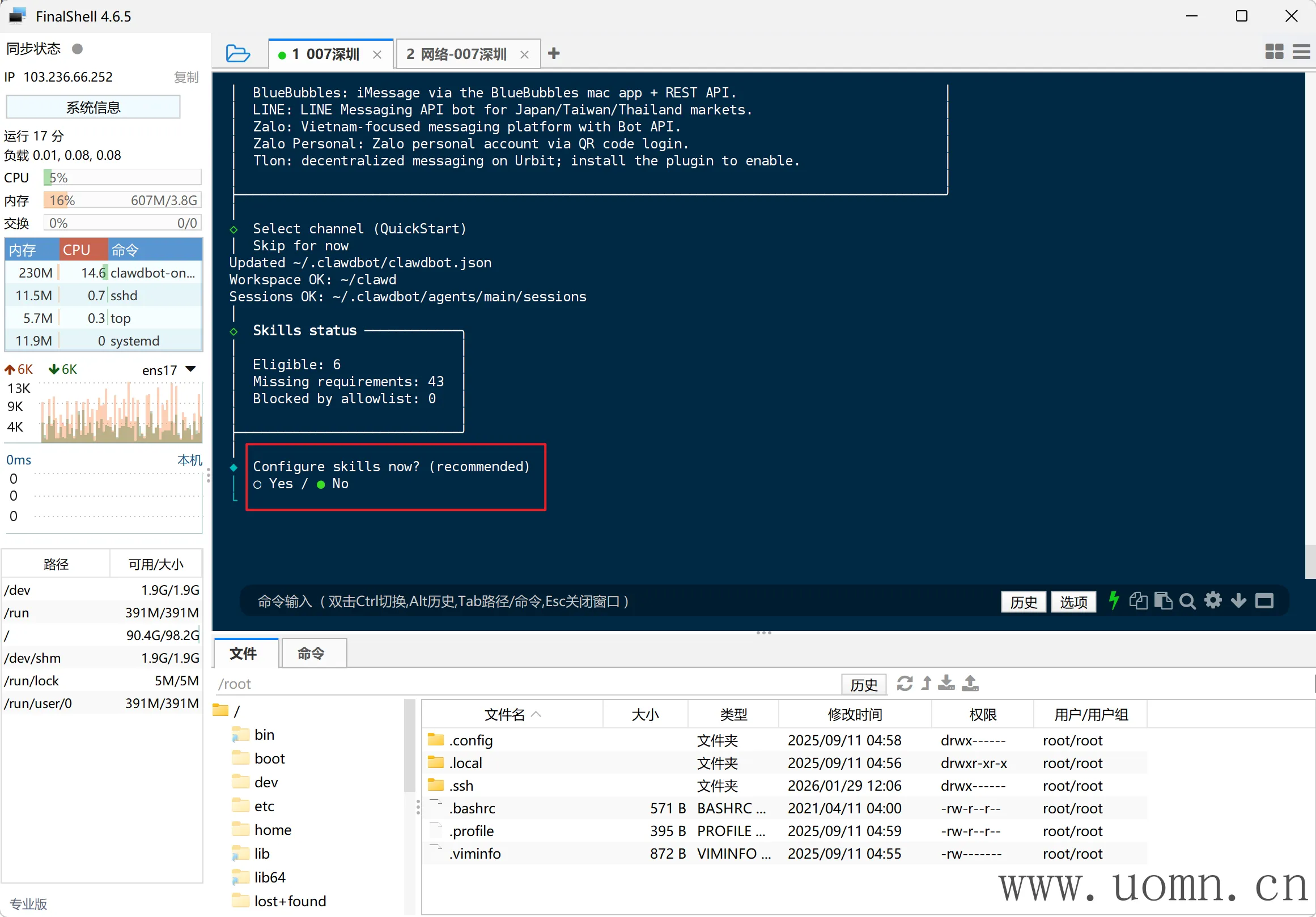 连上SSH后,执行命令进行安装