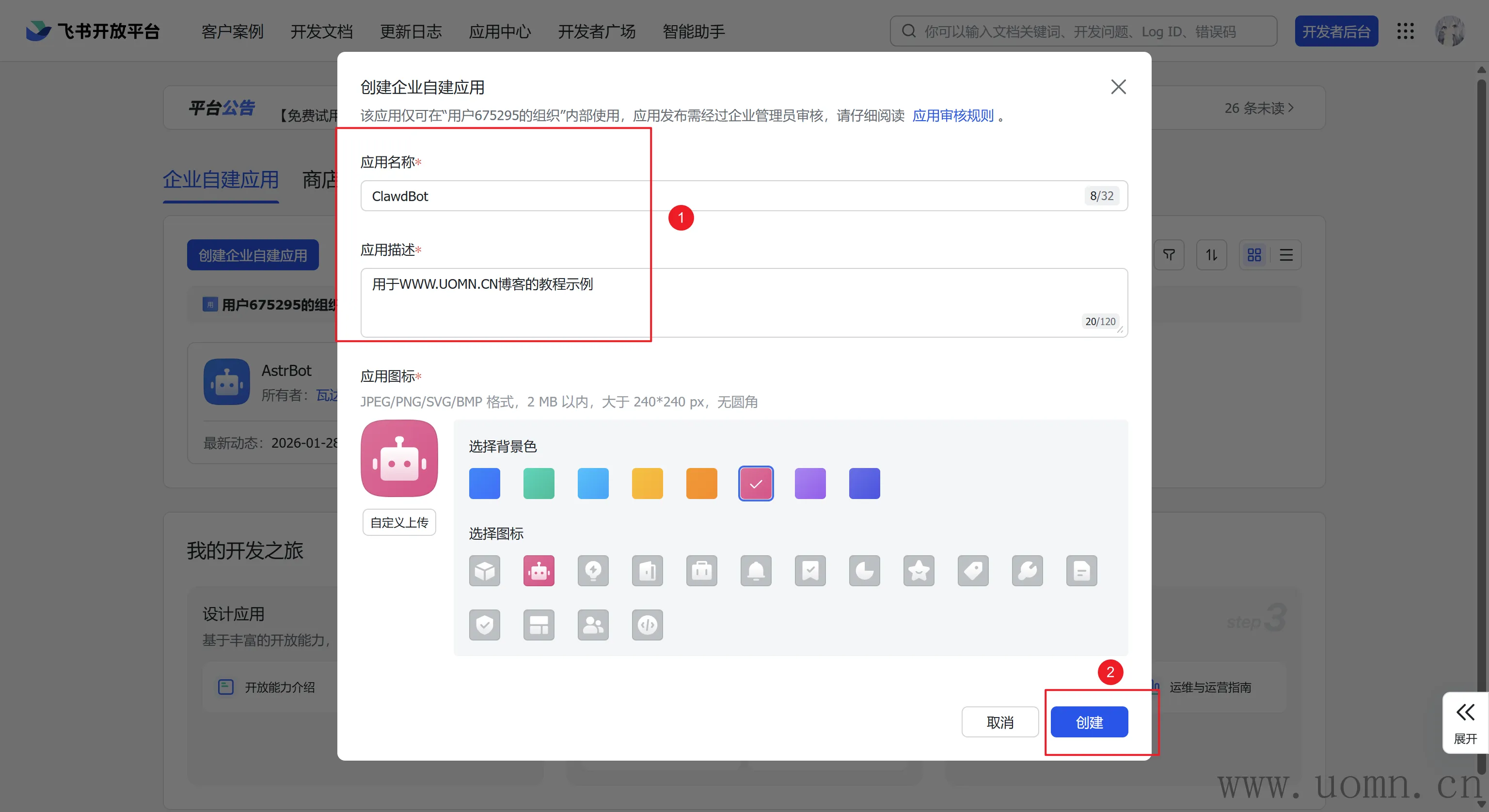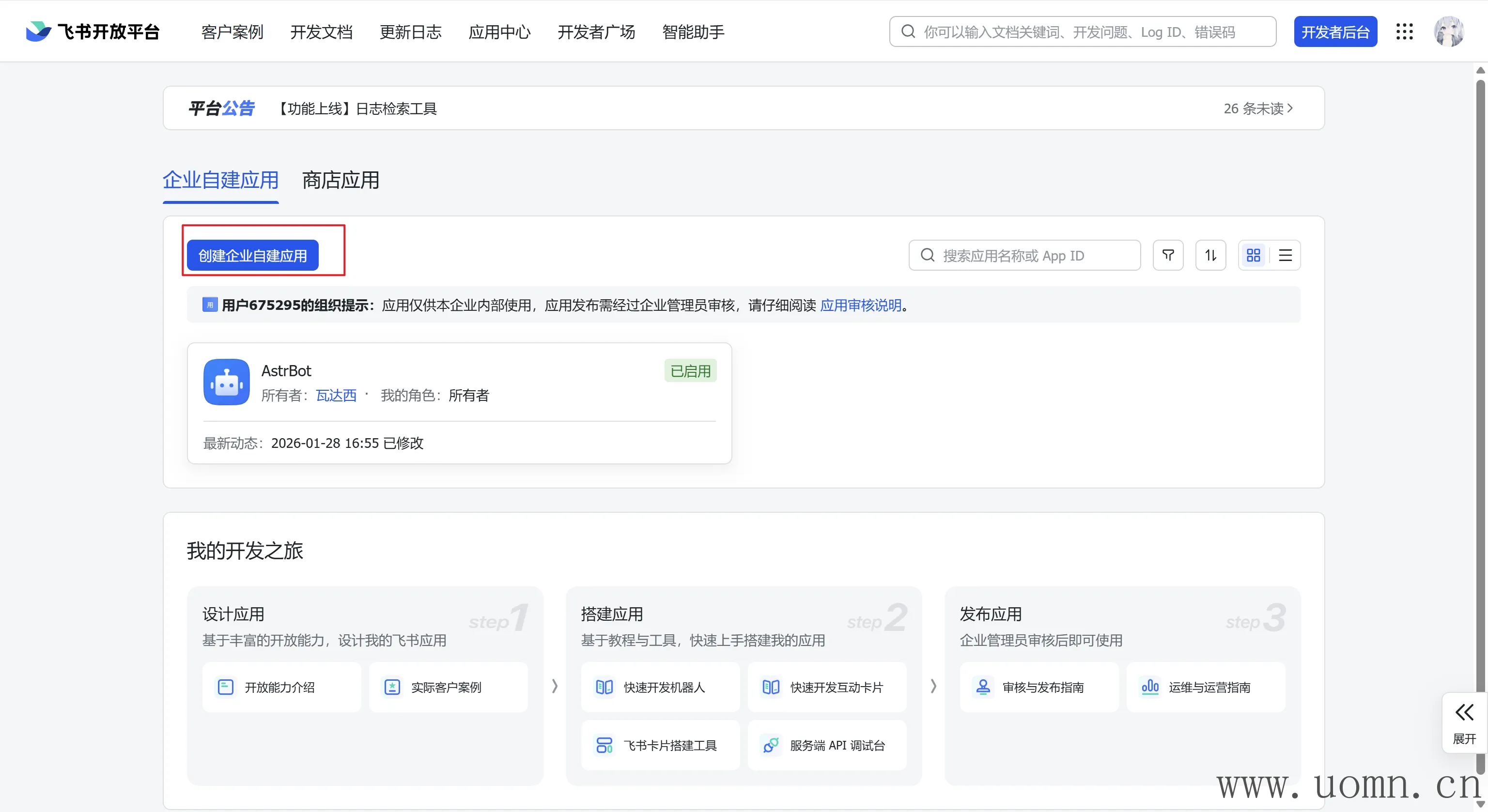 创建企业自建应用