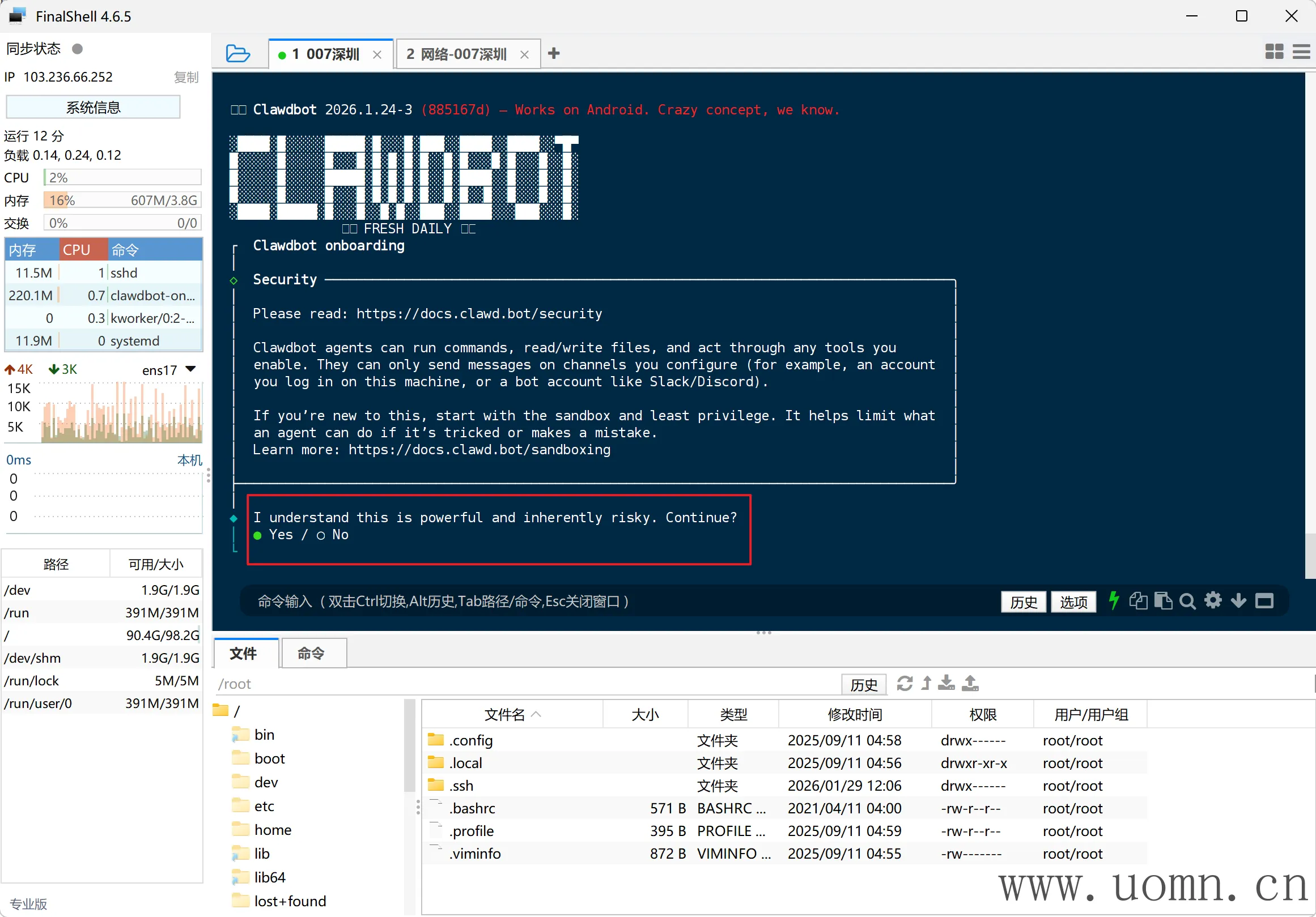 第一项:我知道这功能强大且本身存在风险。是否继续?选YES