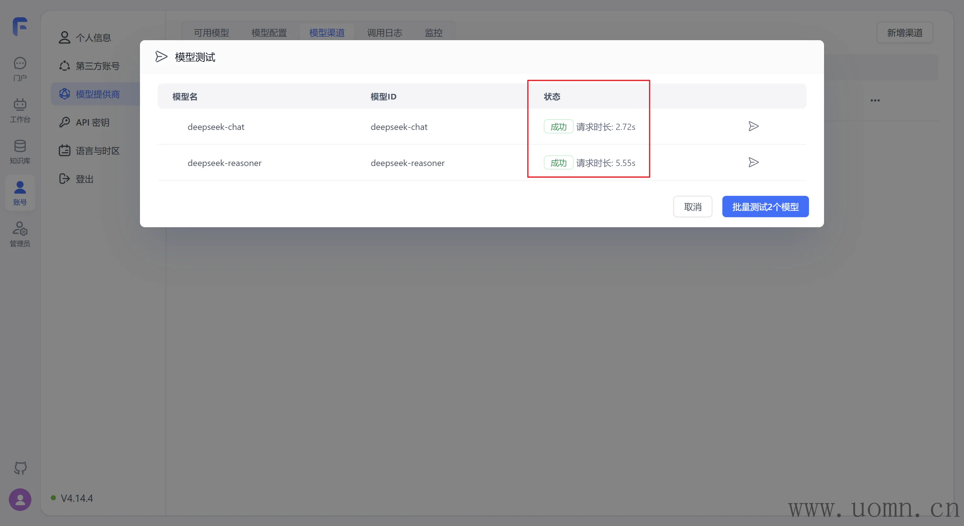 渠道配置里的模型名一定要和部署模型时候的模型名一致,要不然会提示模型不存在的