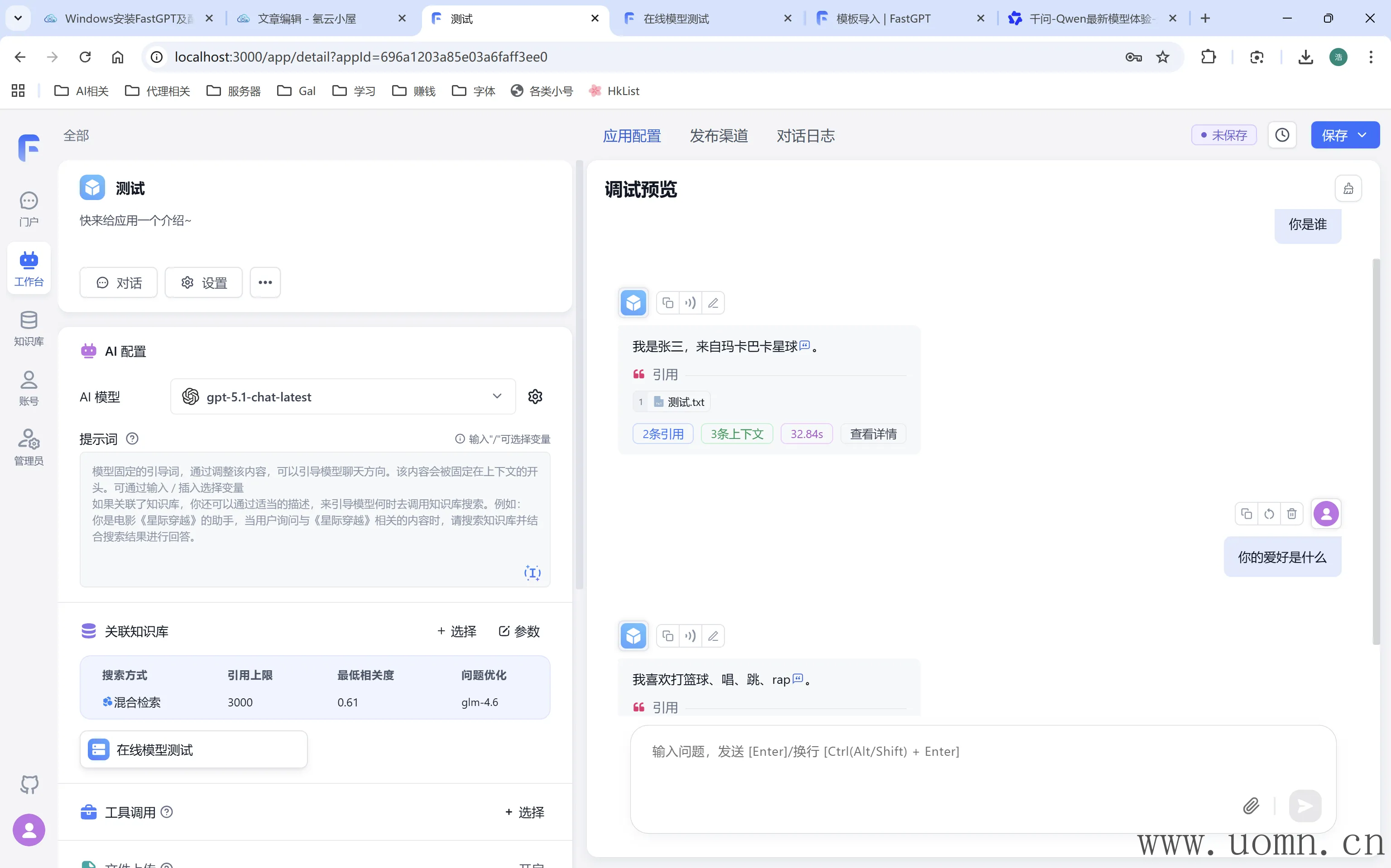 那么至此FastGPT接入在线模型和本地模型的教程到此完结啦