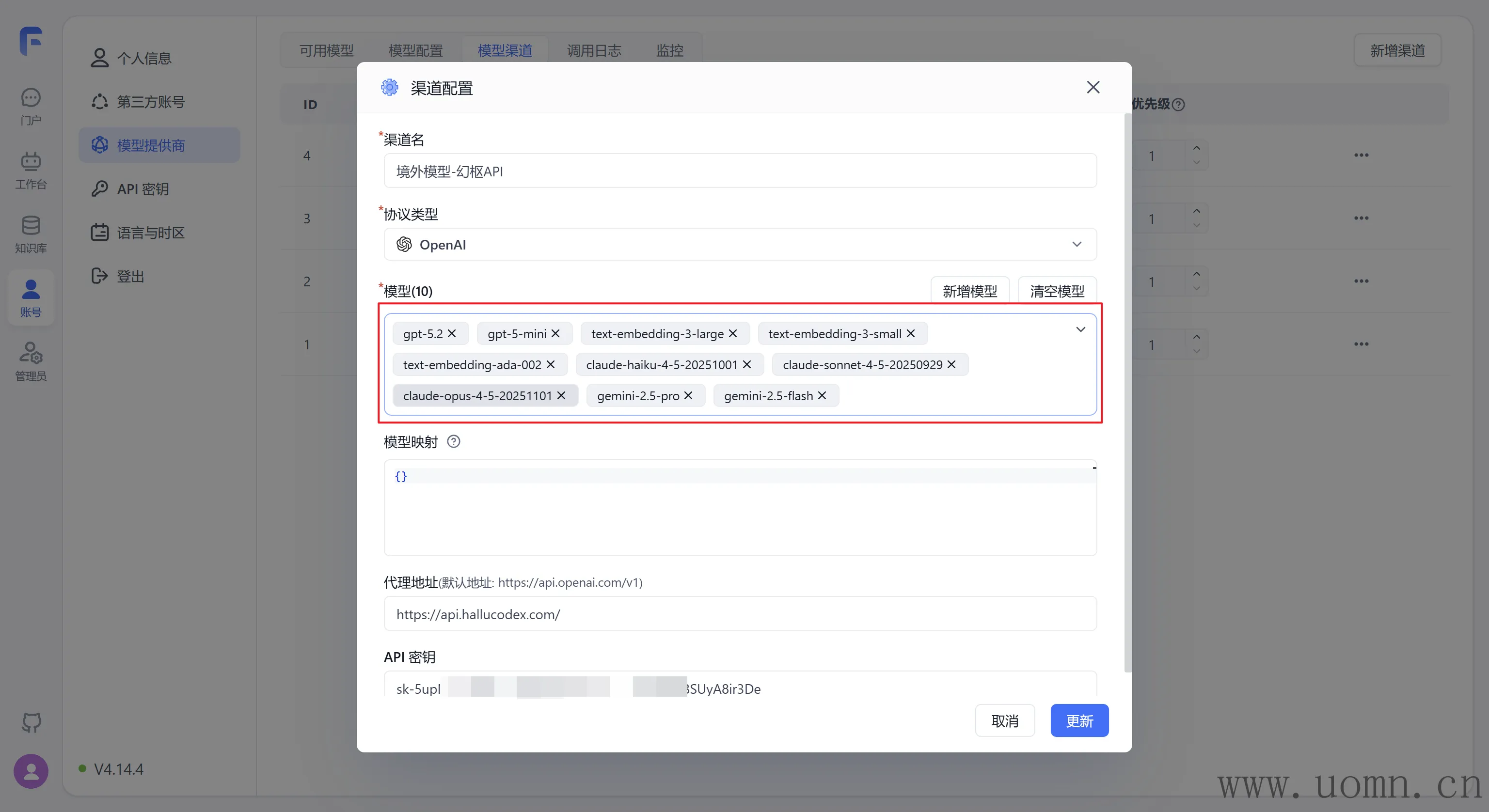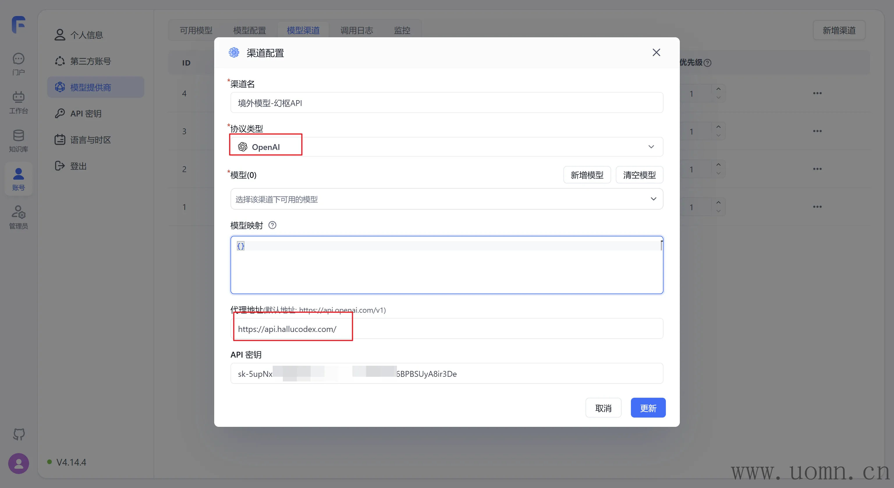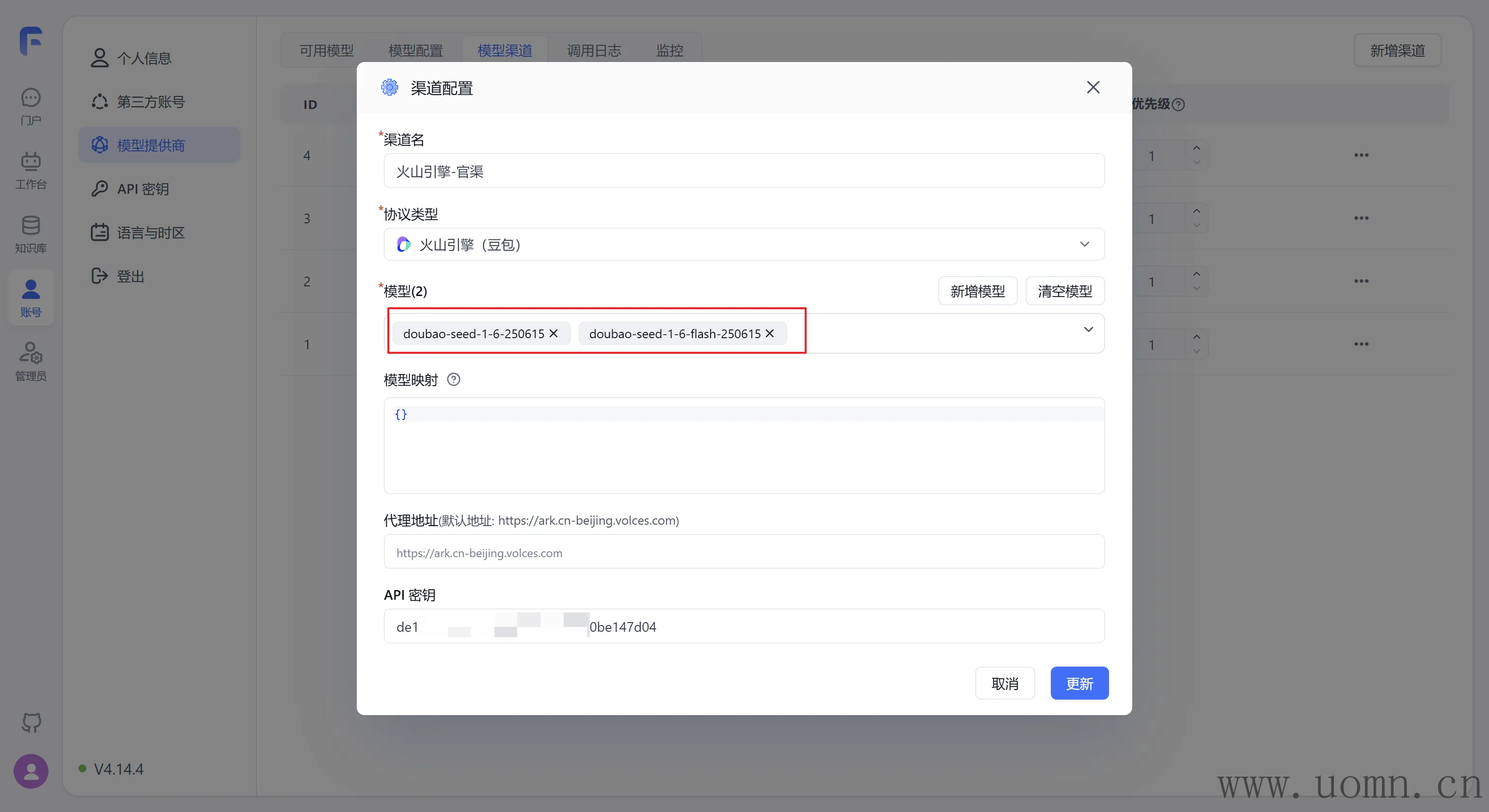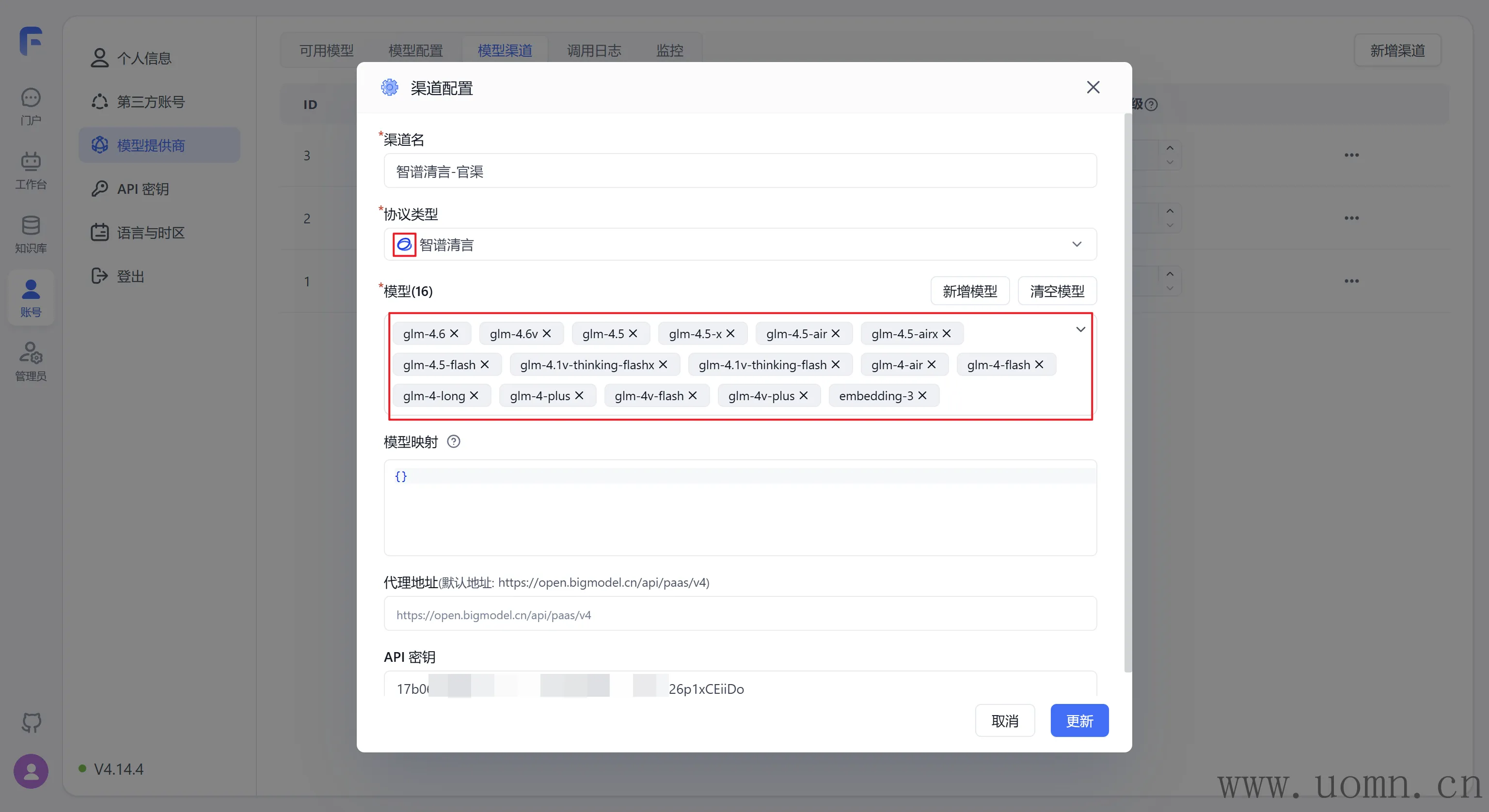 模型:选择协议类型后,对应厂家的模型会置顶显示,方便选择。在选择模型的时候一定要选择对应服务商渠道的模型,选错了用不了哈