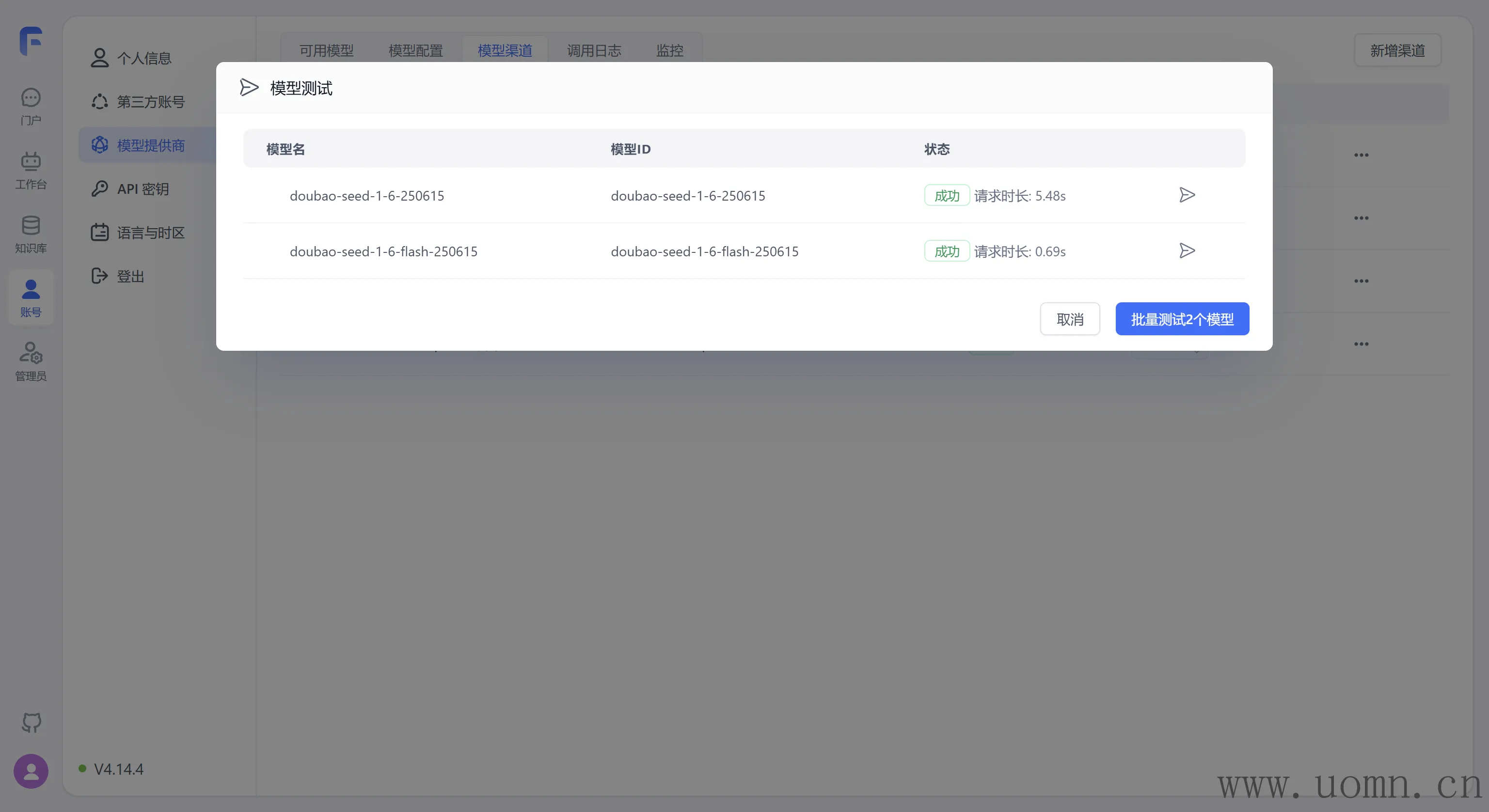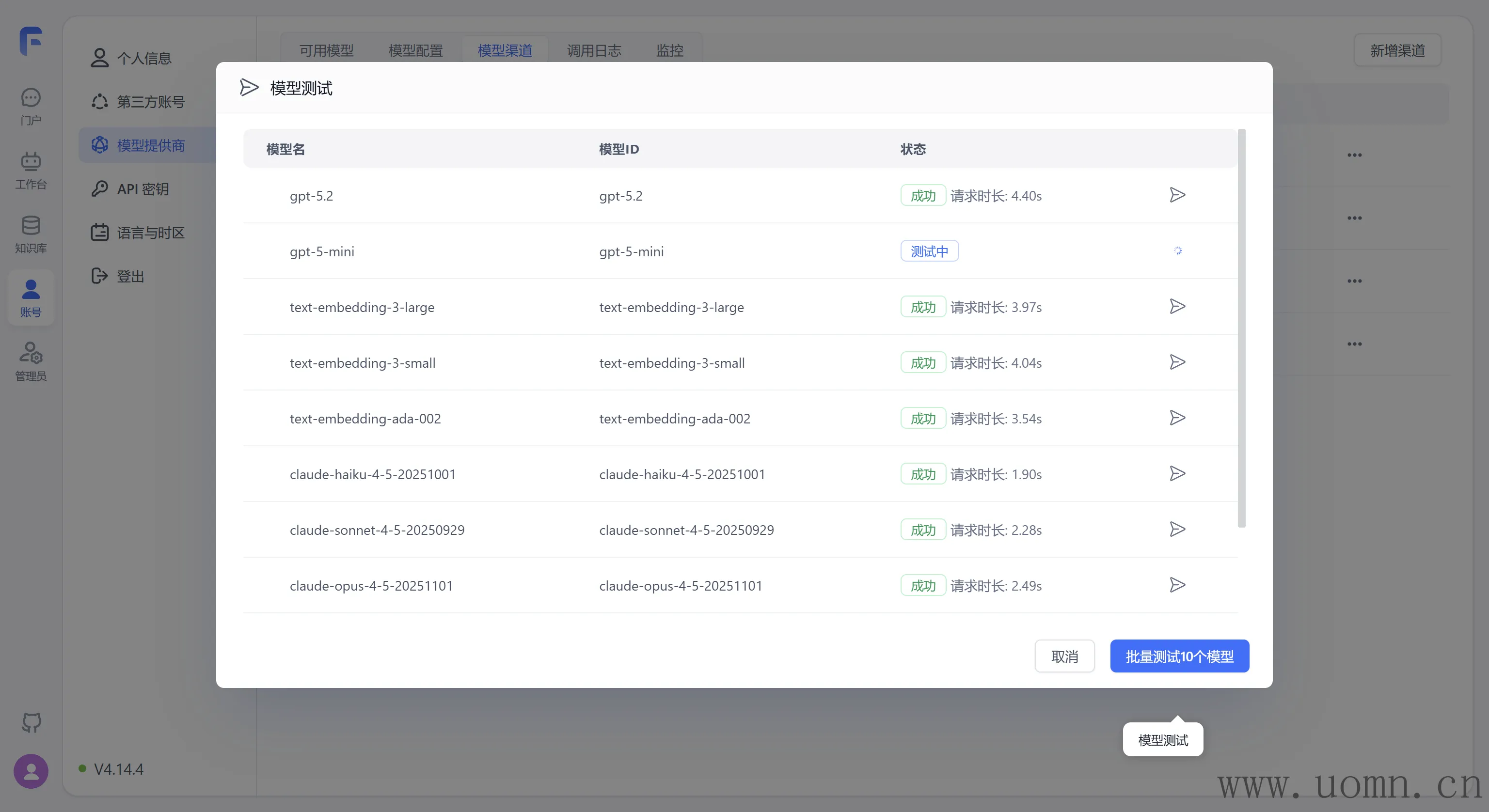 虽然已经添加完了渠道,但是模型依旧需要启用之后才能调用