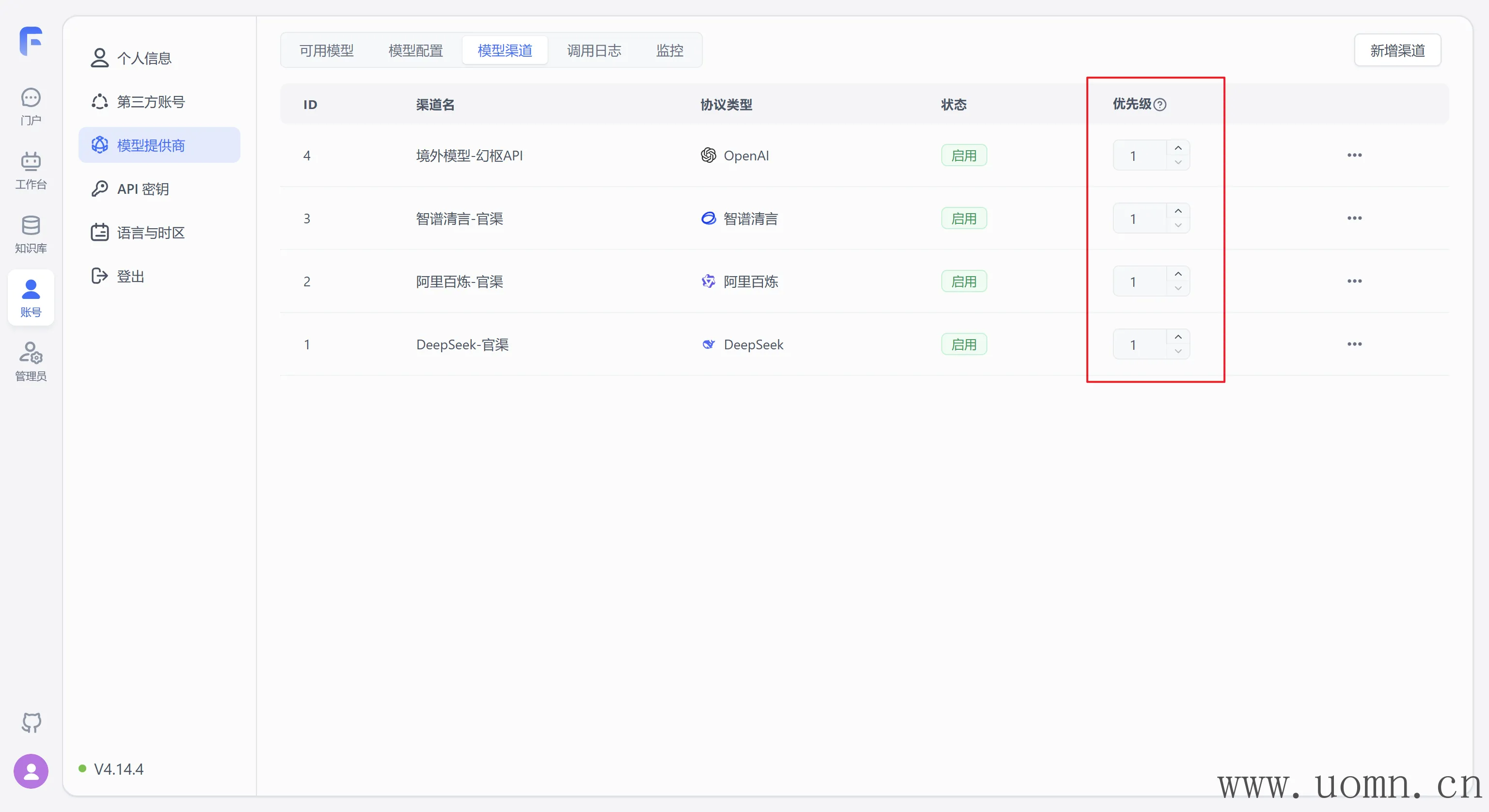 模型渠道优先级说明