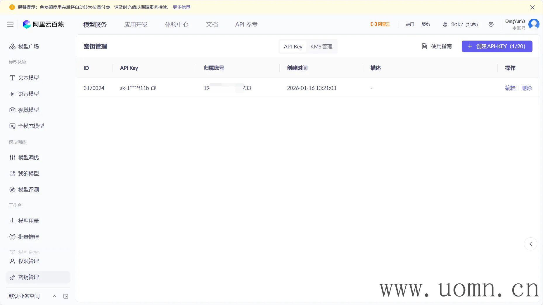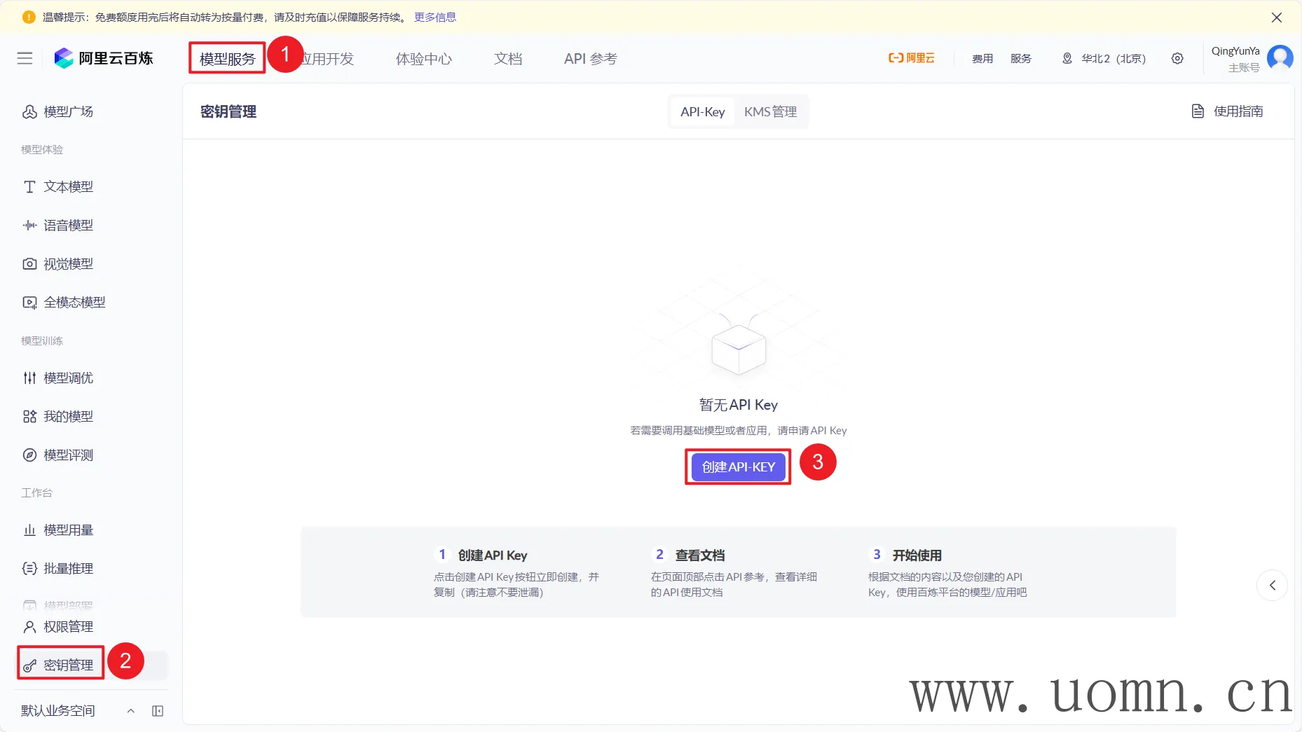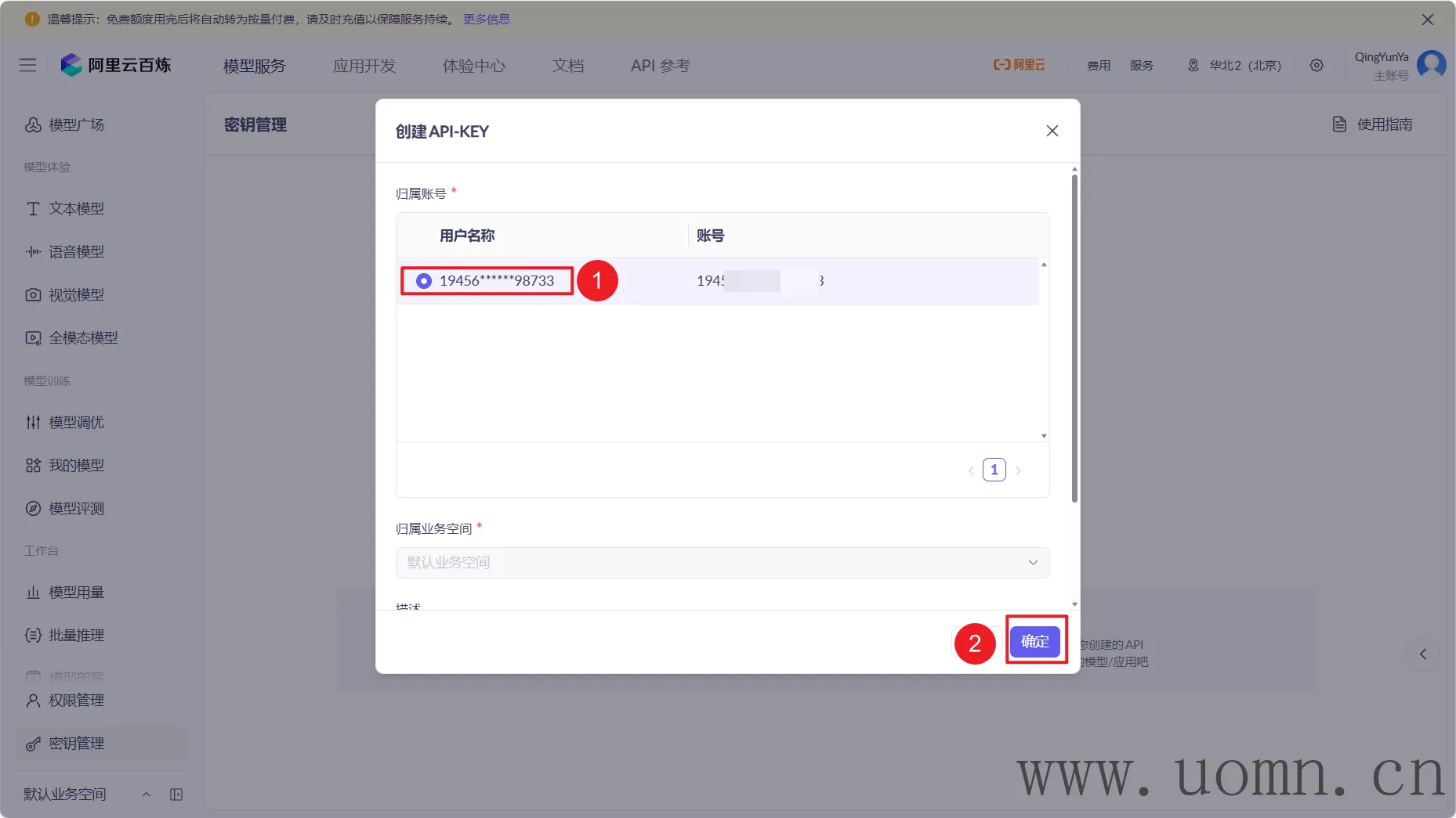 在创建API密钥前,需要开通所有的大模型