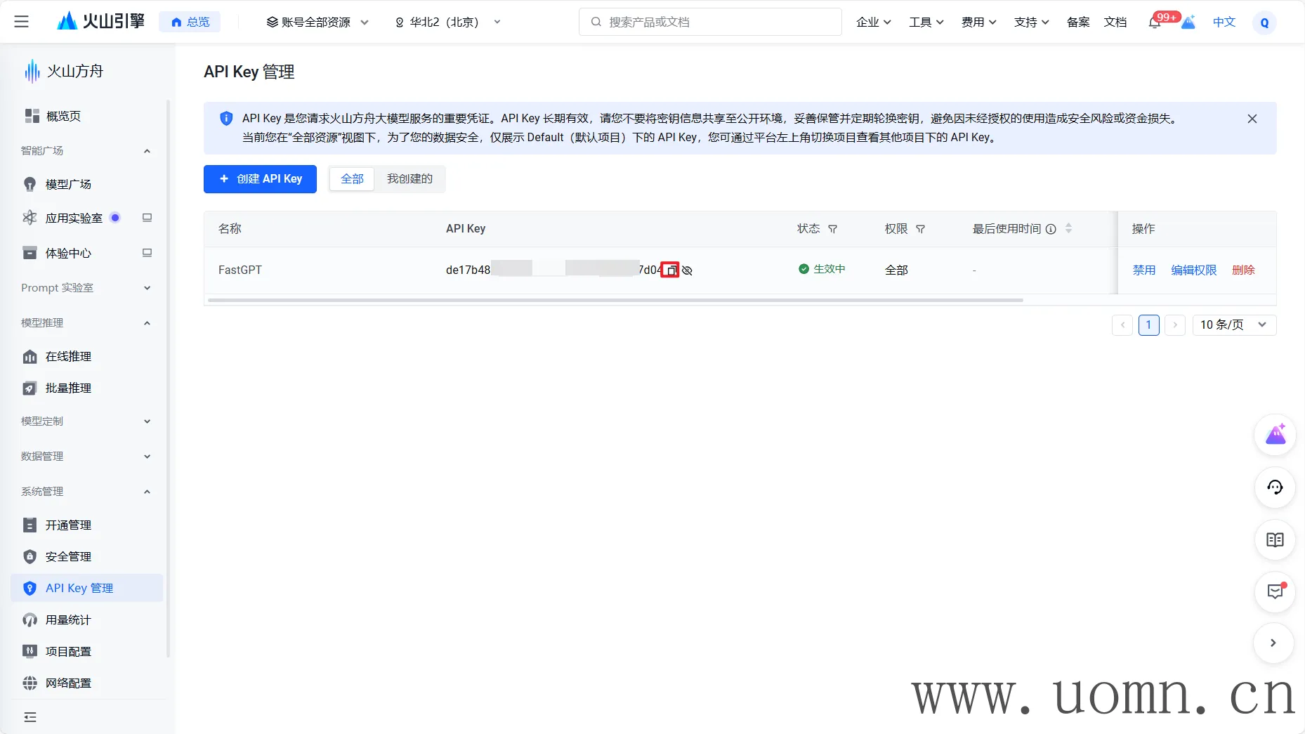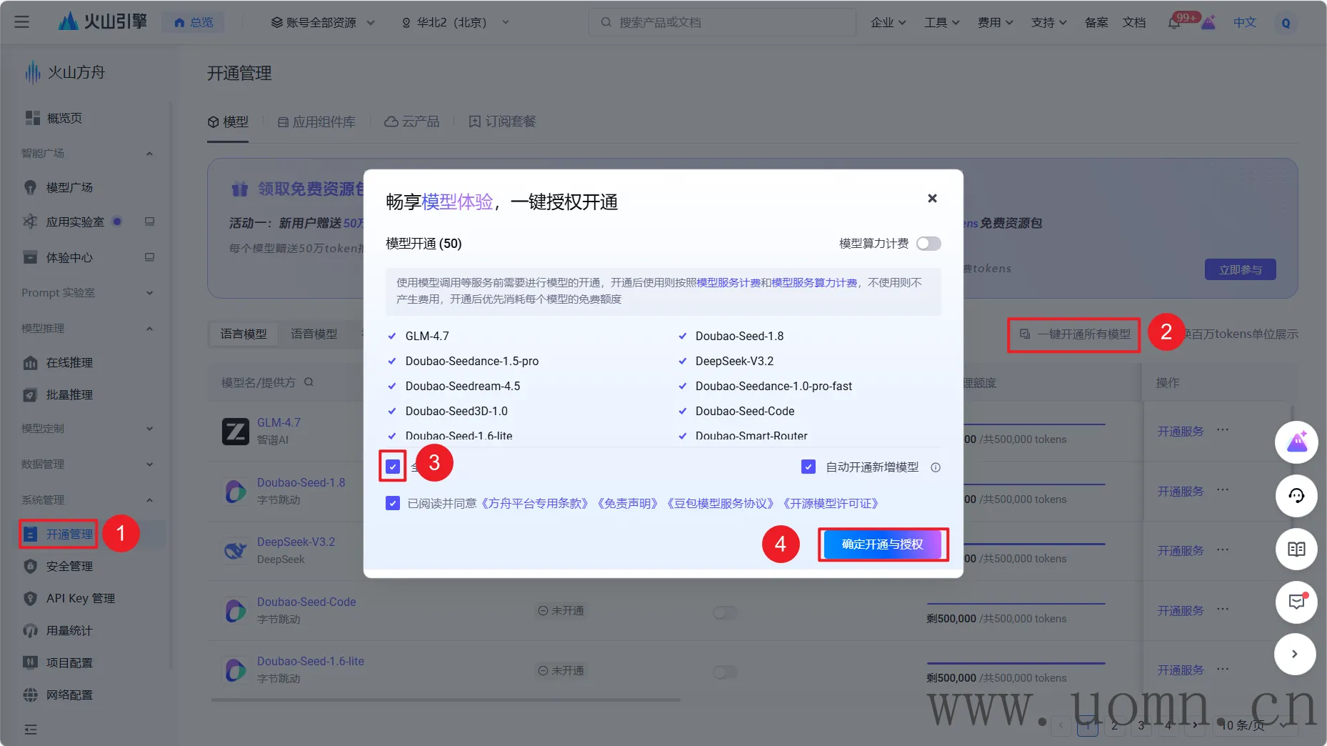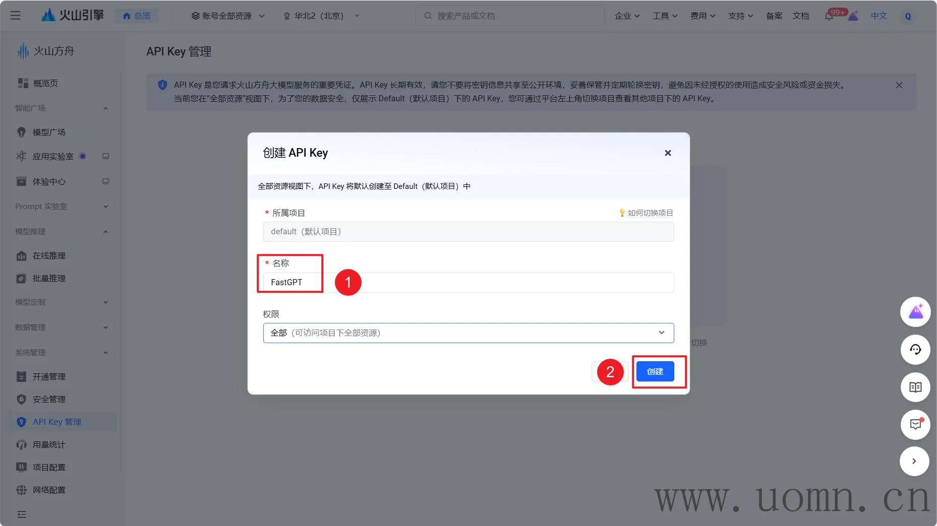 在创建API密钥前,需要开通所有的大模型
