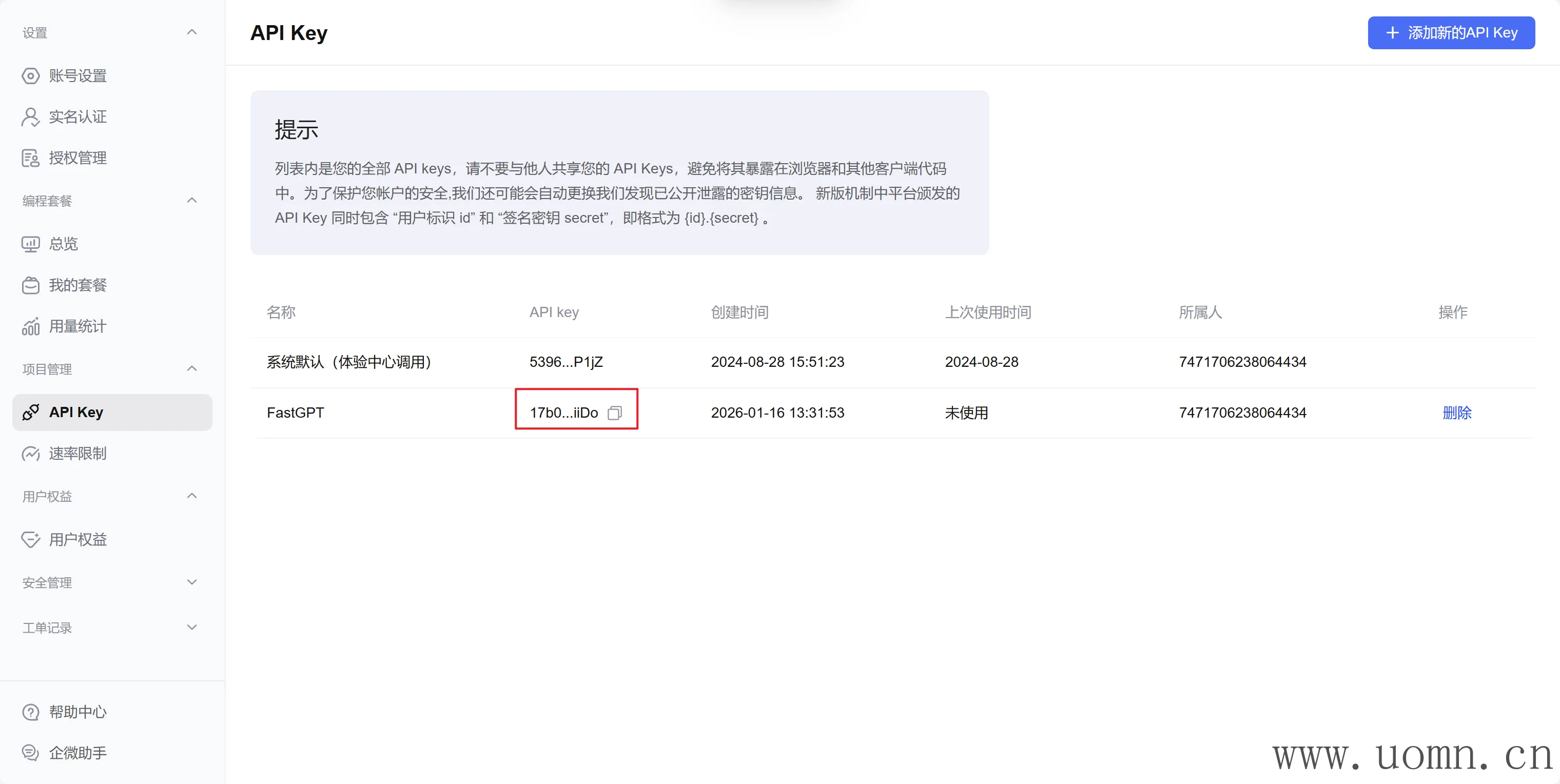 API密钥:需要去对应服务商的官网获取