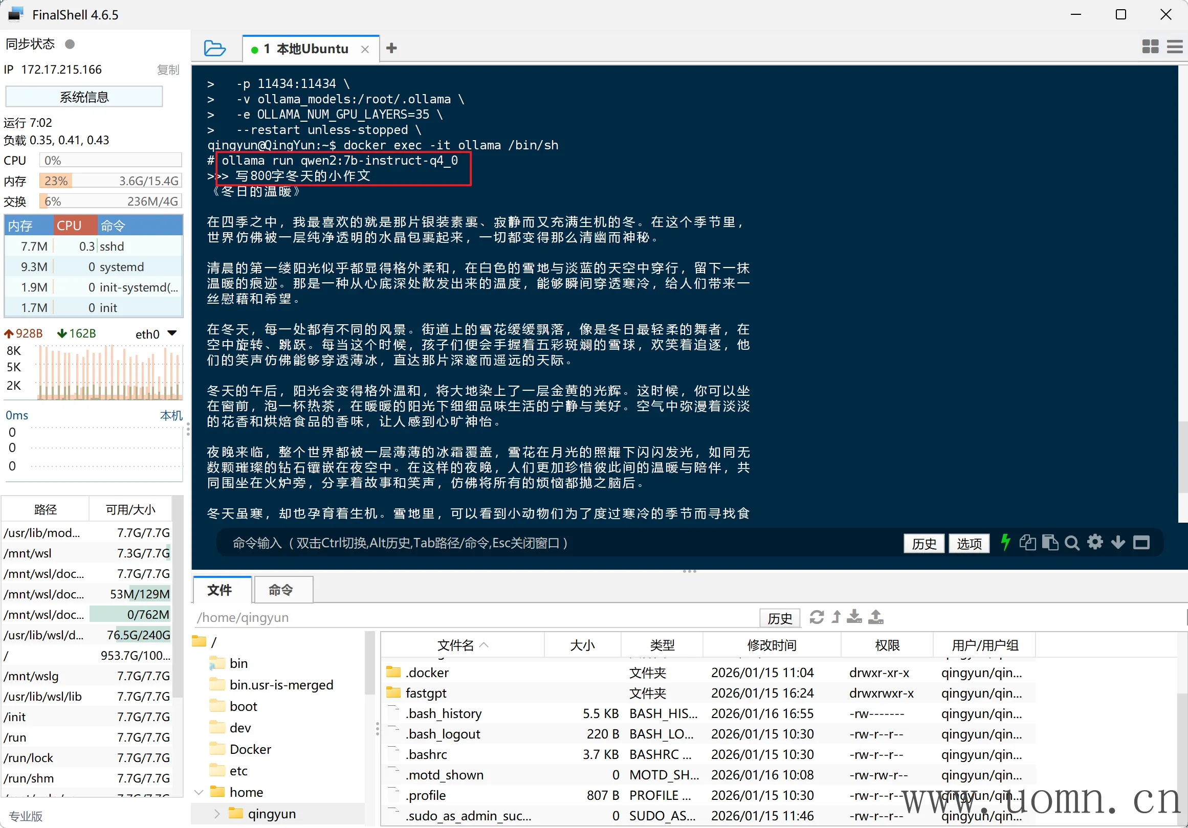 之前使用FinalShell连接了本地的Ubuntu,现在需要打开这个SSH工具并连接好,执行下放命令