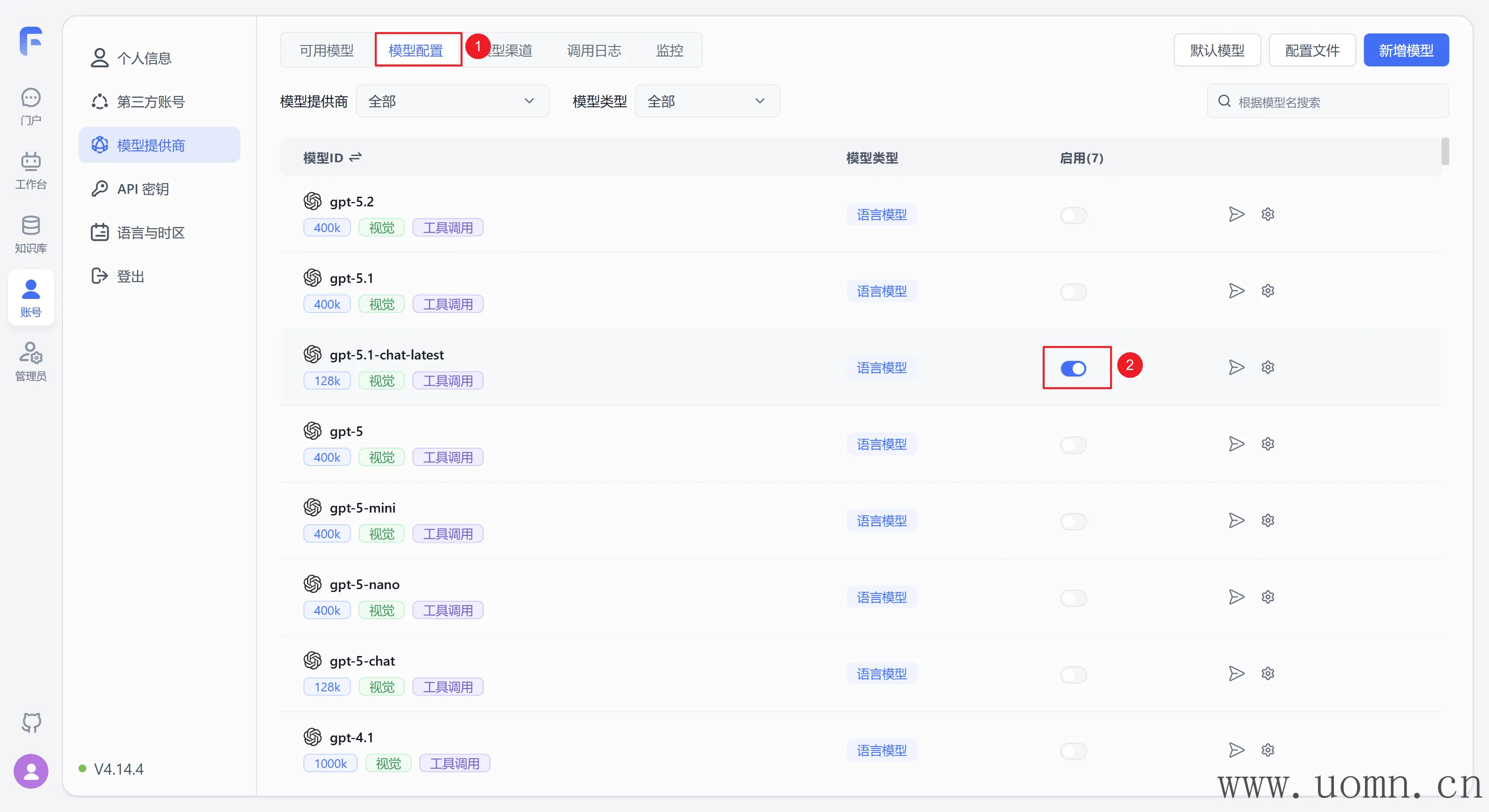 注意:新增的自定义模型会自动启用