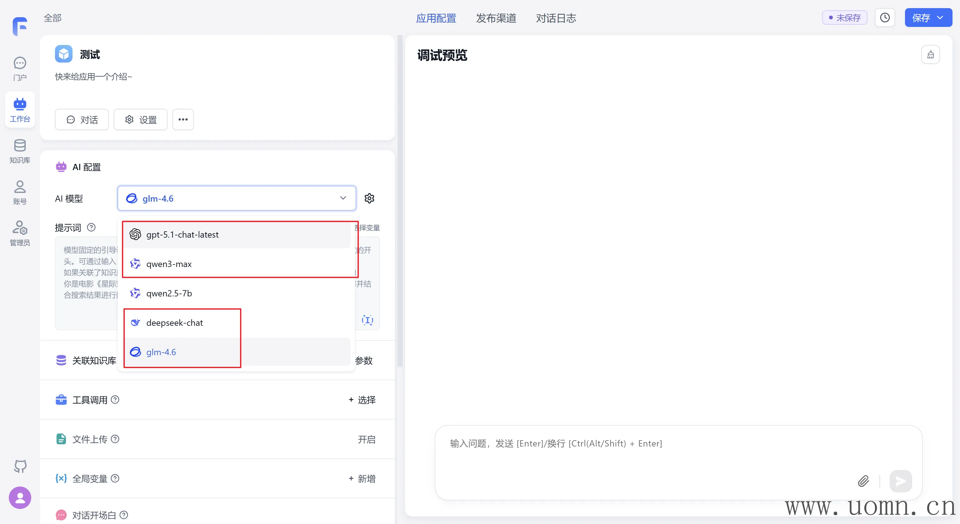 关于模型选择,只要有智谱清言的图标的模型都选上