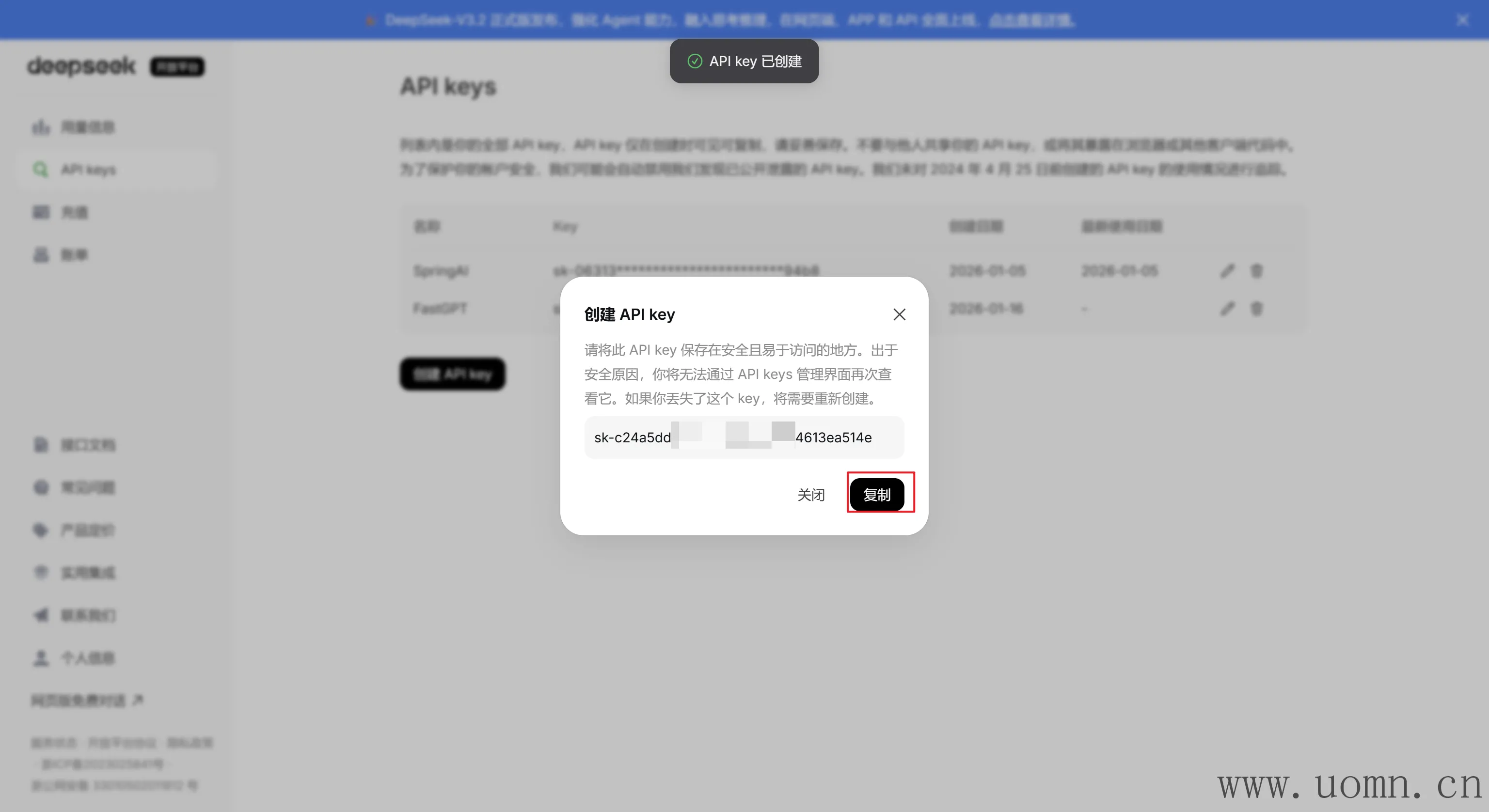 这里只放一些常用的国内大模型的密钥获取教程,然后网站的注册登录流程、充值流程我这里就不再写了