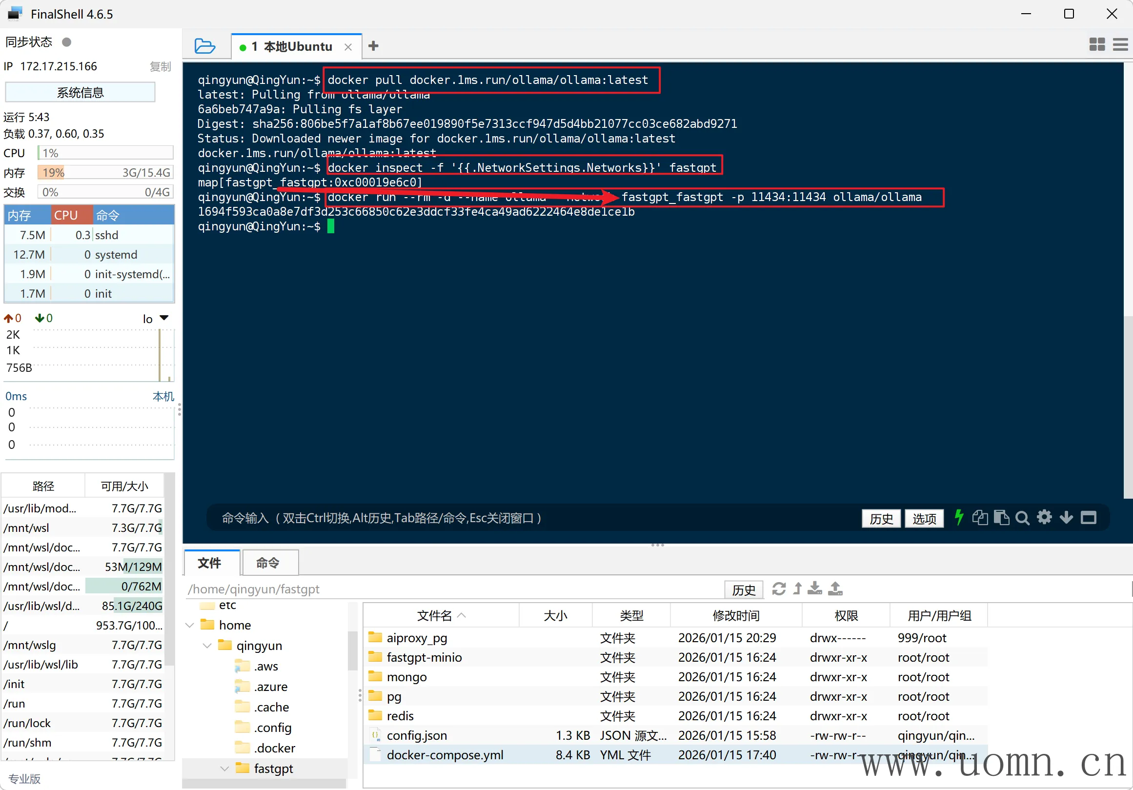 # 运行Ollama并加入到FastGPT的网络