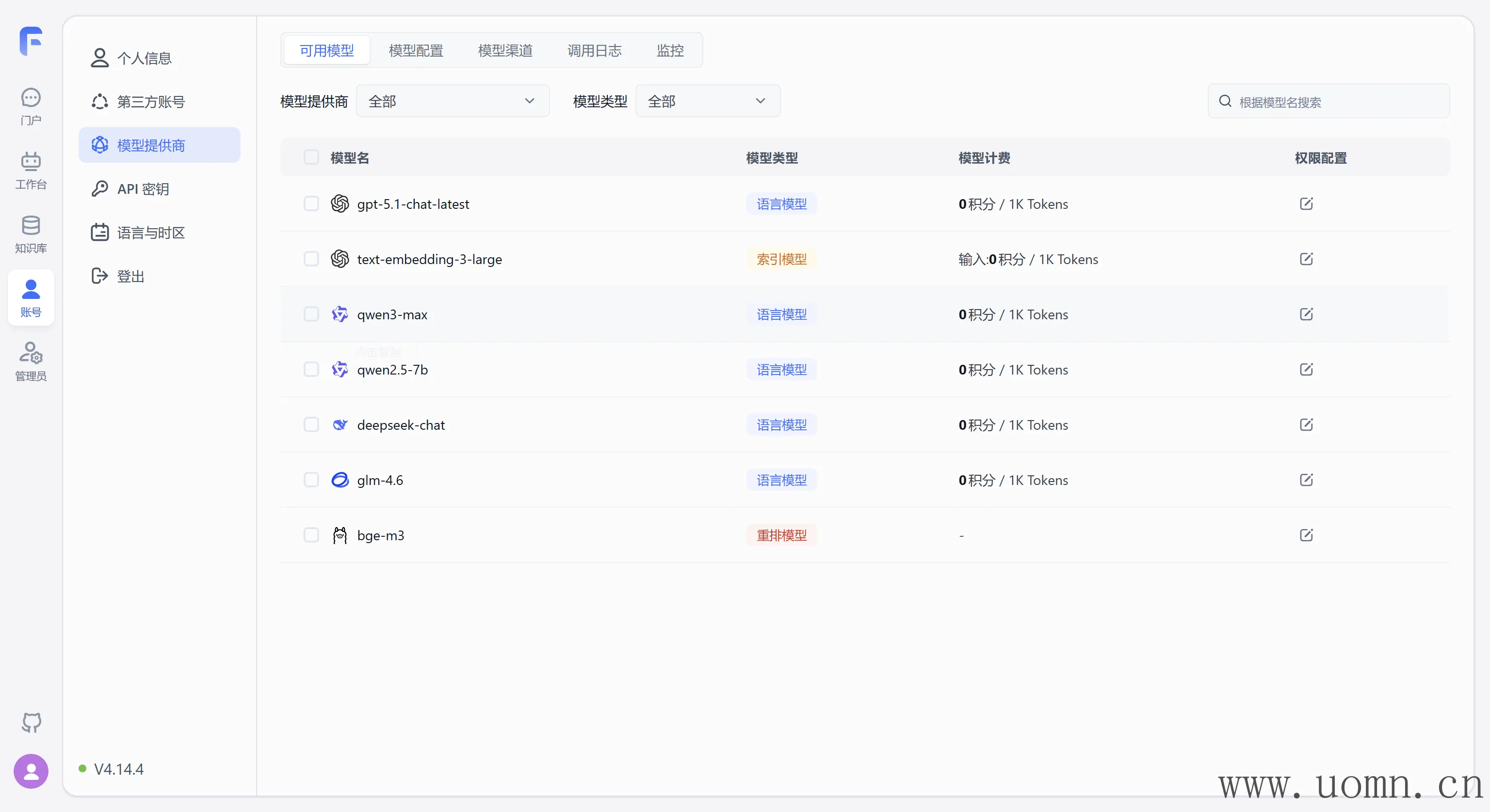 这里会接入截图中4个服务商的模型