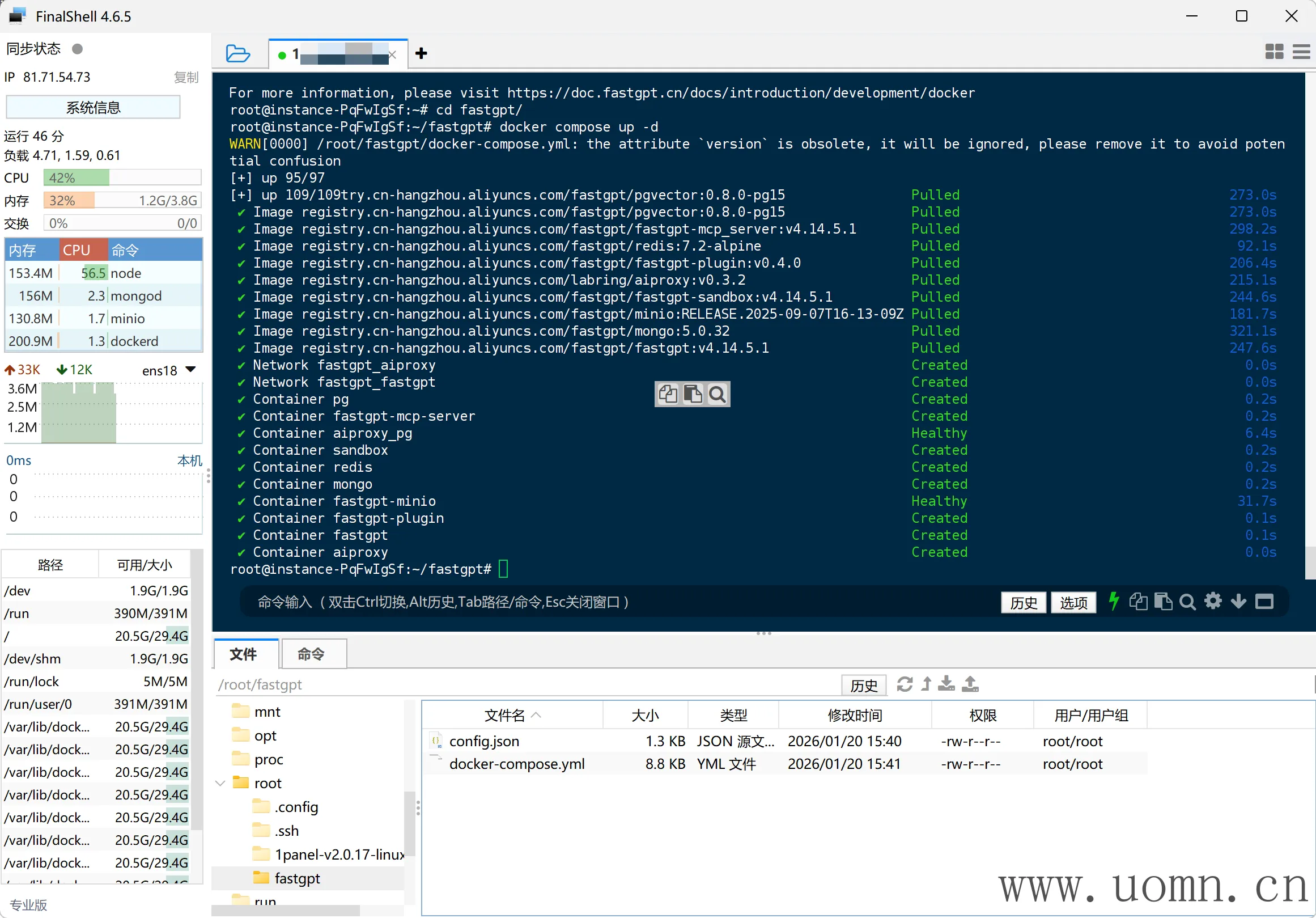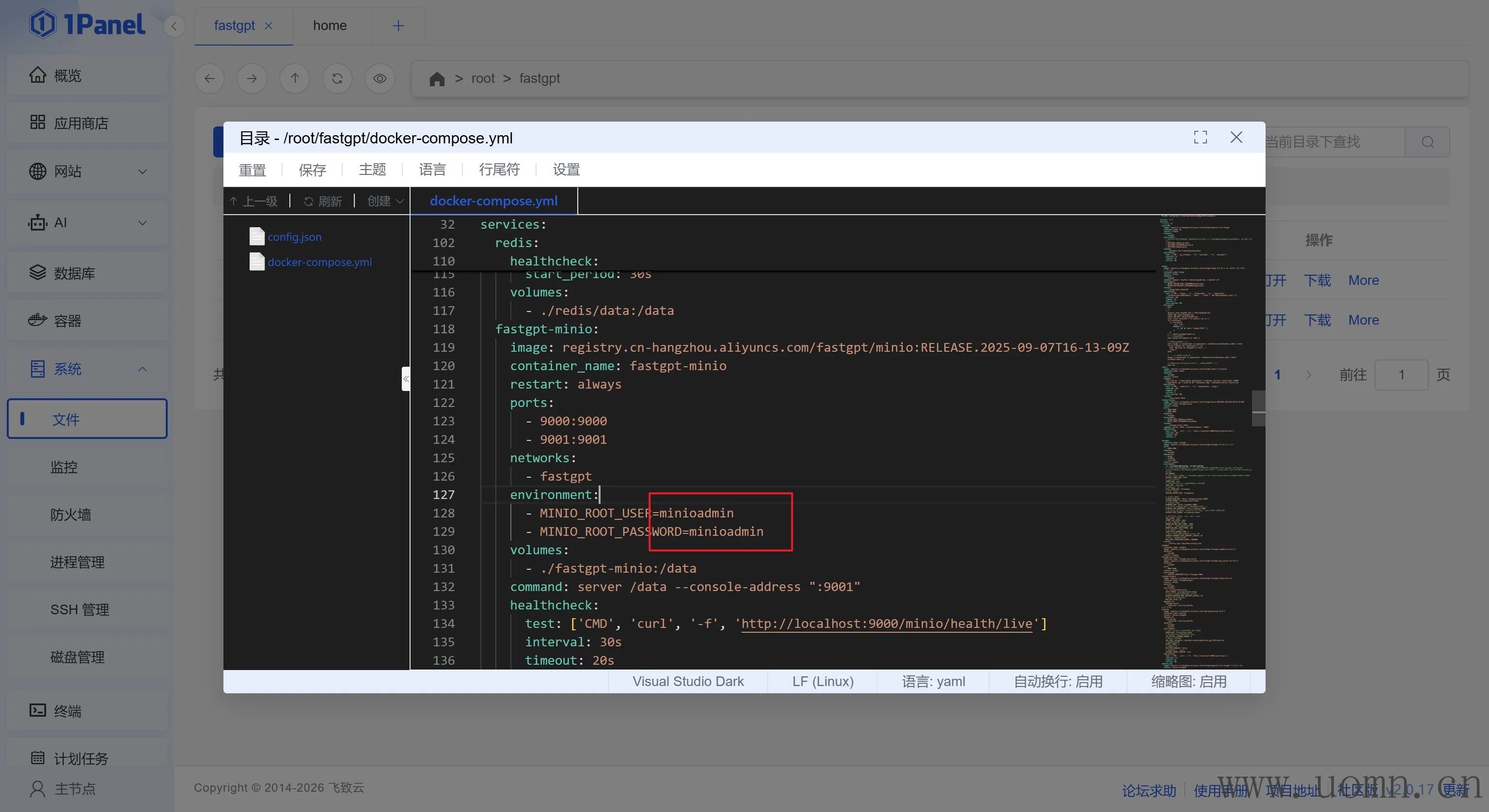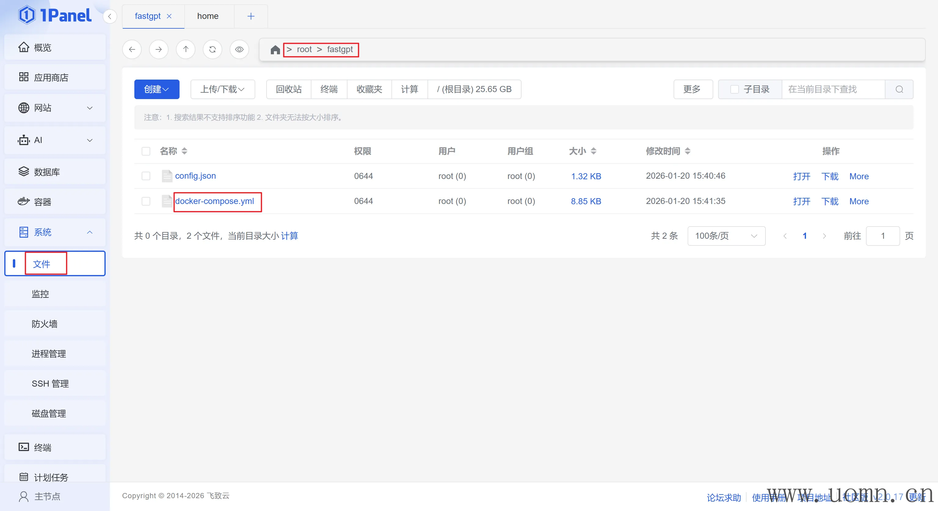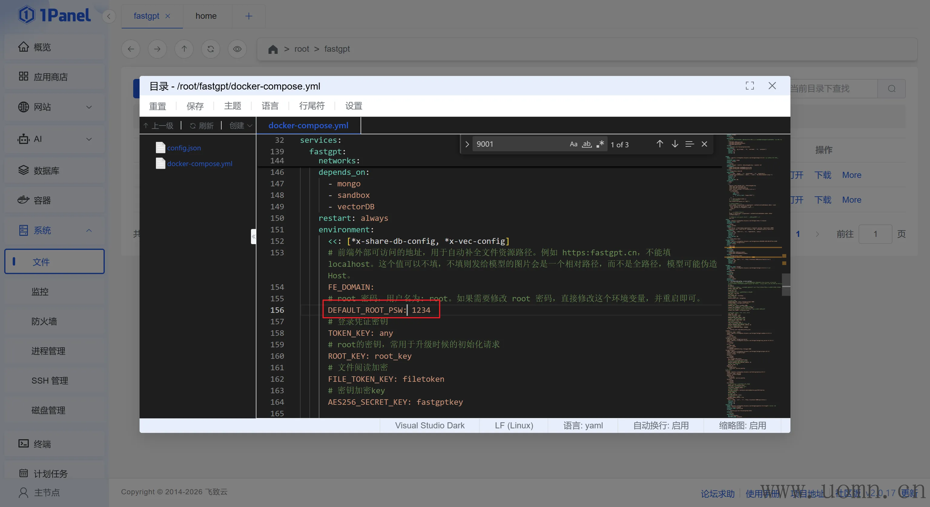 为了方便修改,这里使用1Panel的文件管理功能,首先找到fastgpt所在文件夹