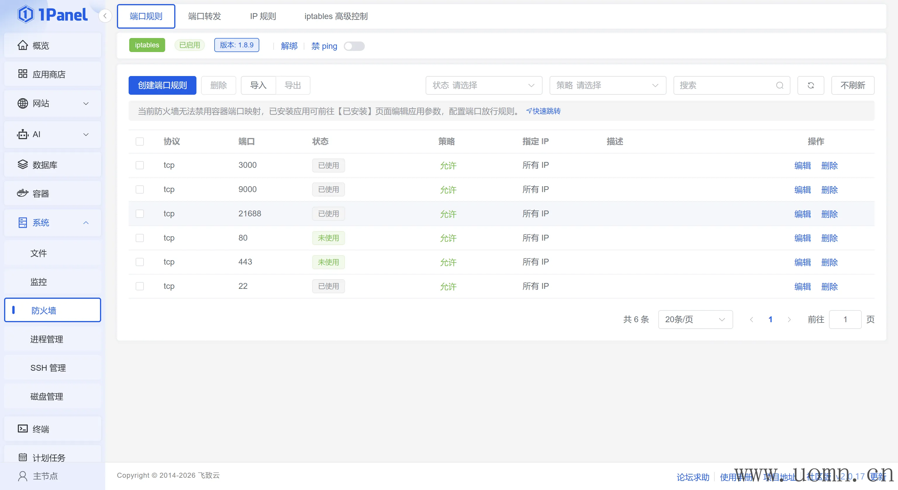 在服务器上一般有内部防火墙和外部防火墙,其中内部防火墙在服务器中进行配置,外部防火墙在服务商处配置,在使用FastGPT的时候需要开放3000端口和9000端口