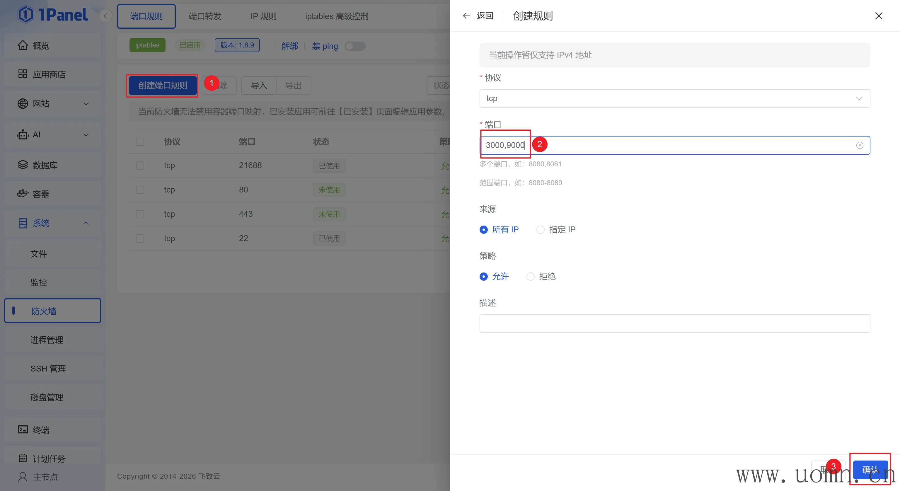 开放3000和9000端口