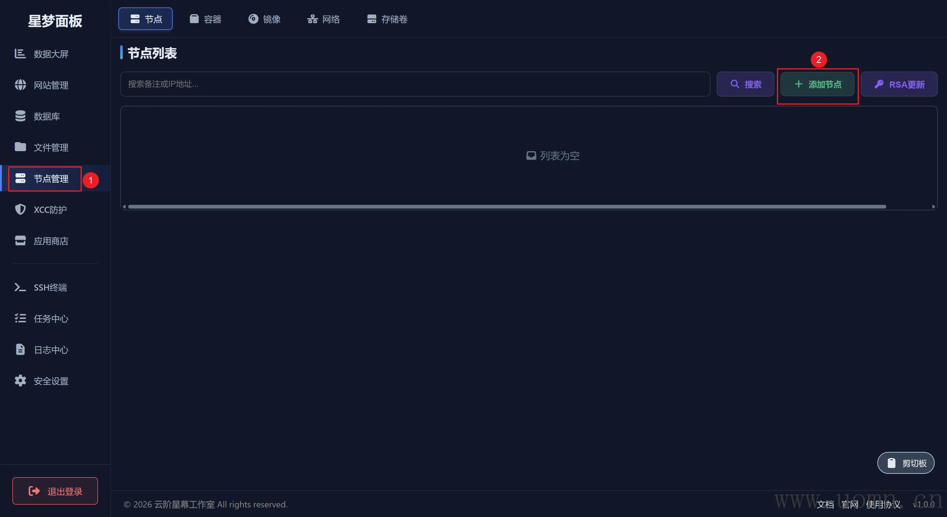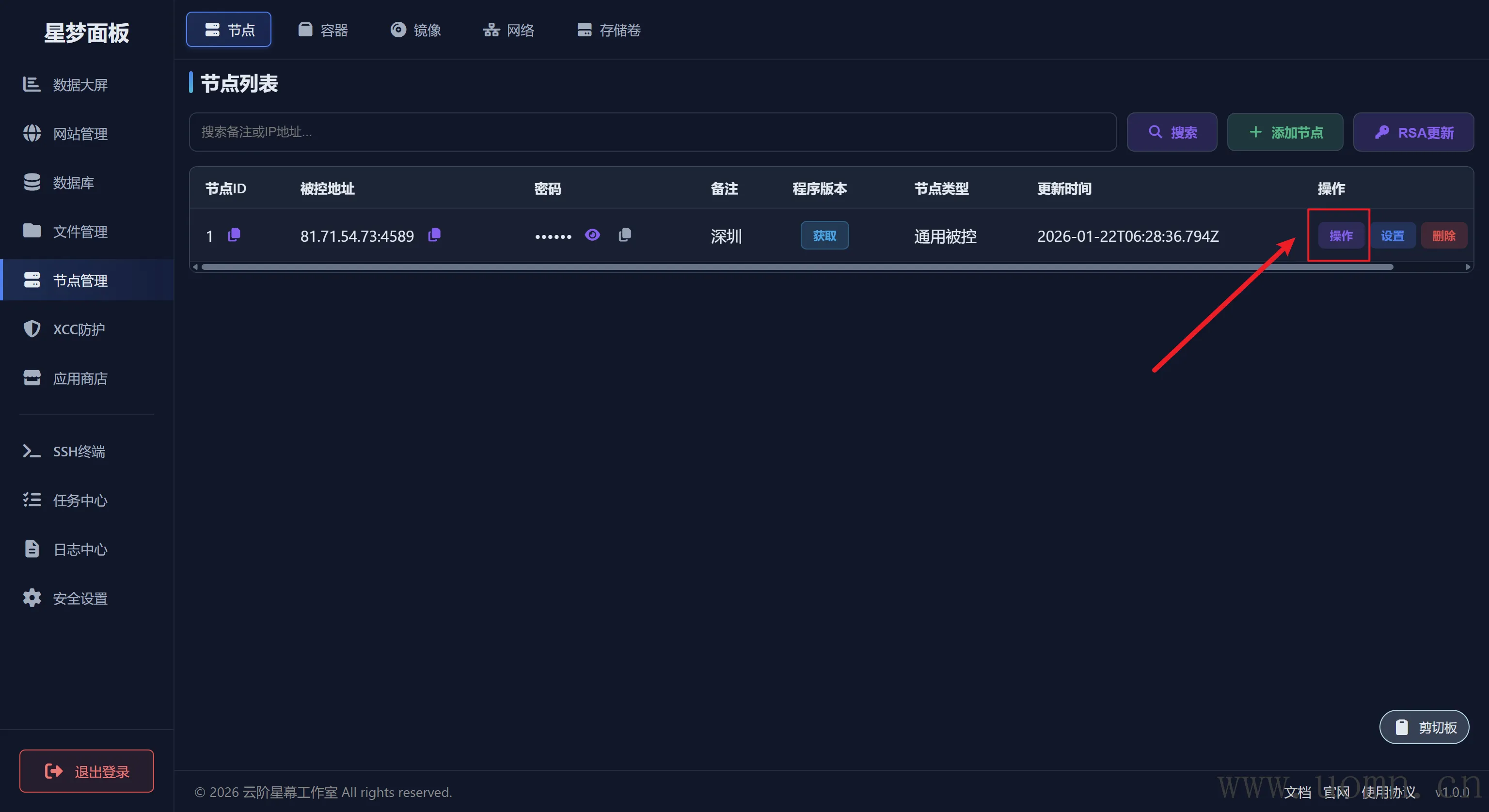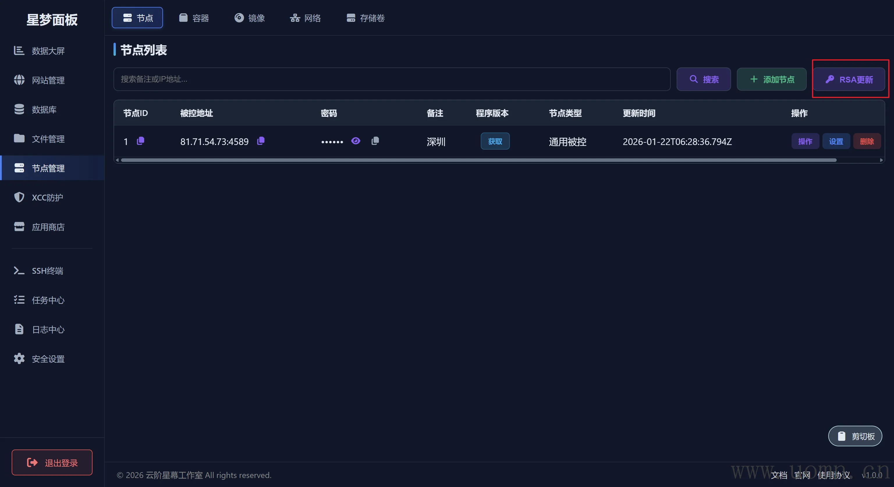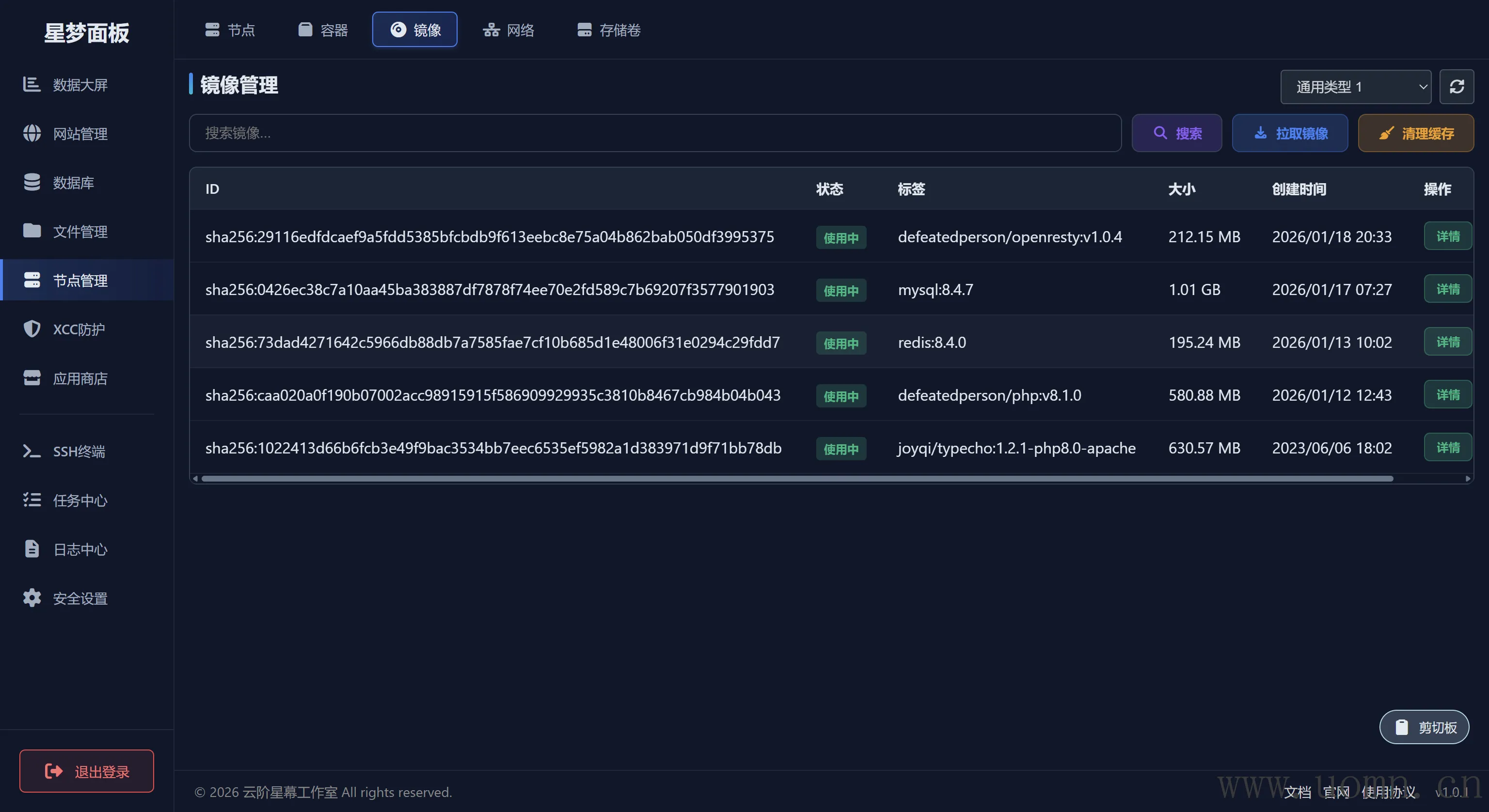 可以查看、修改、删除指定节点上的镜像列表,右上角可切换节点