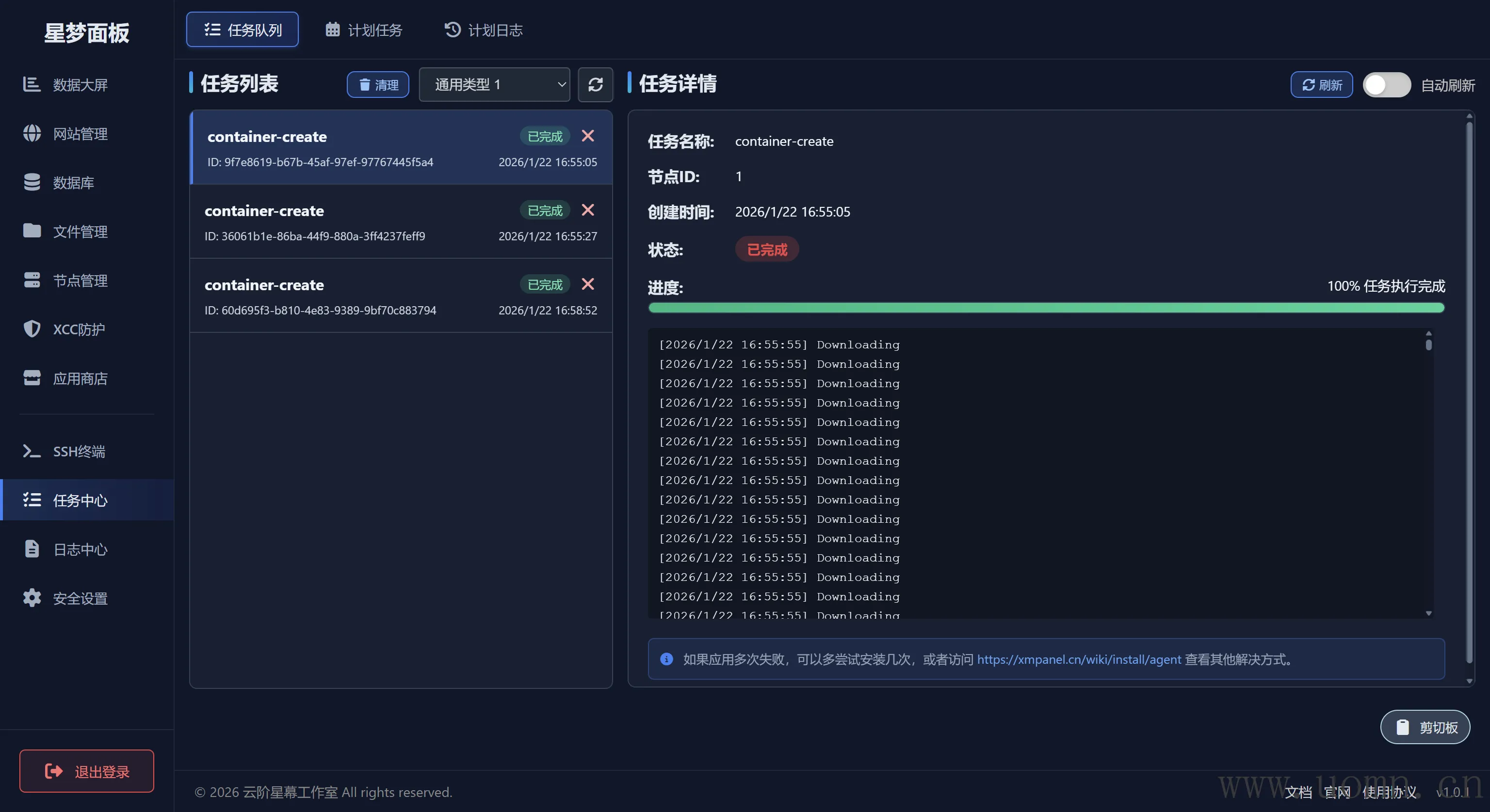 在任务中心可以查看安装进度