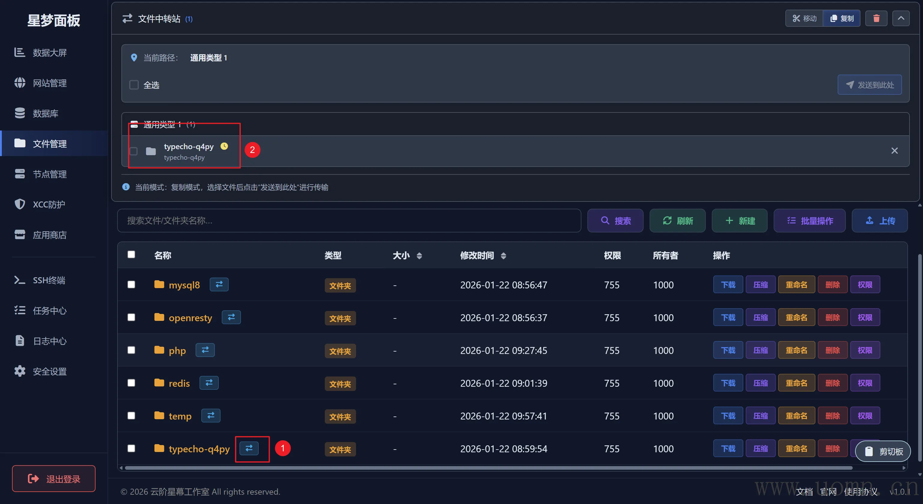 文件管理还有一个文件中转站的功能,用于复制、移动功能。