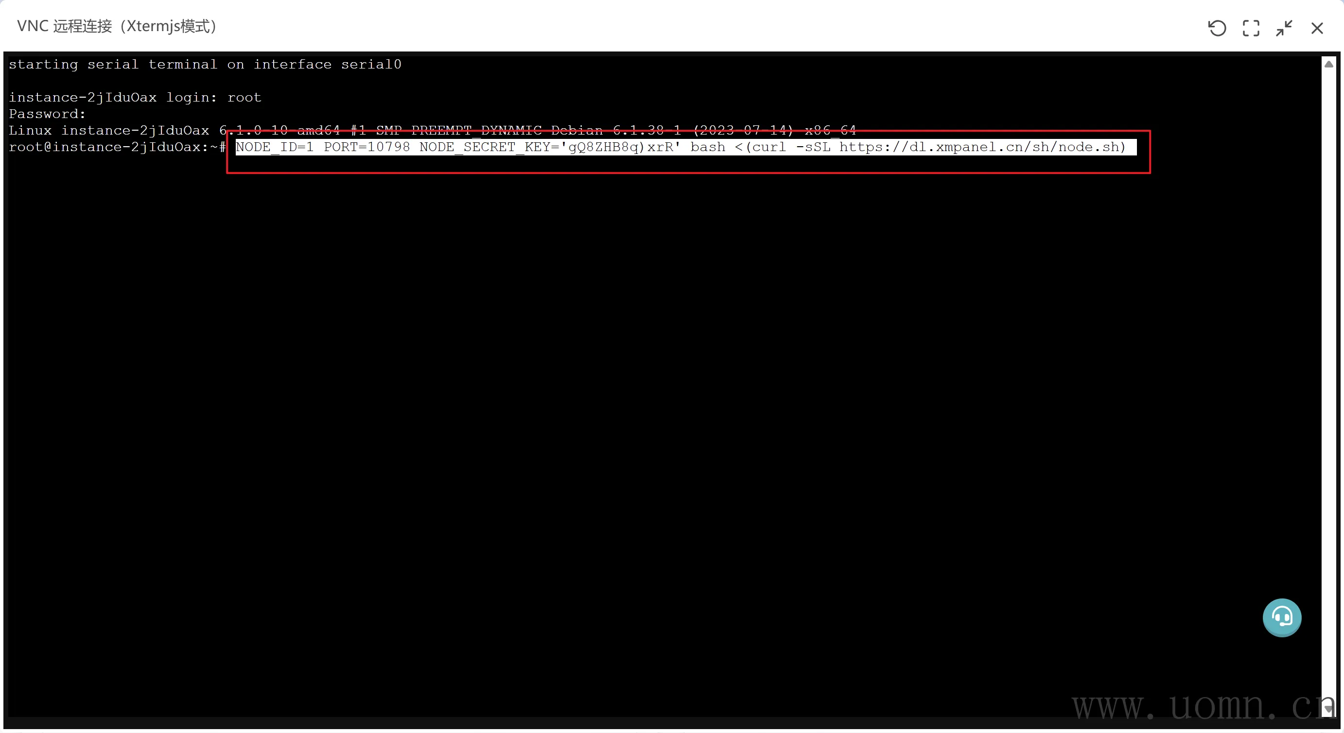 为了快速安装,这里我就直接用雨云服务器自带的VNC连接被控服务器
