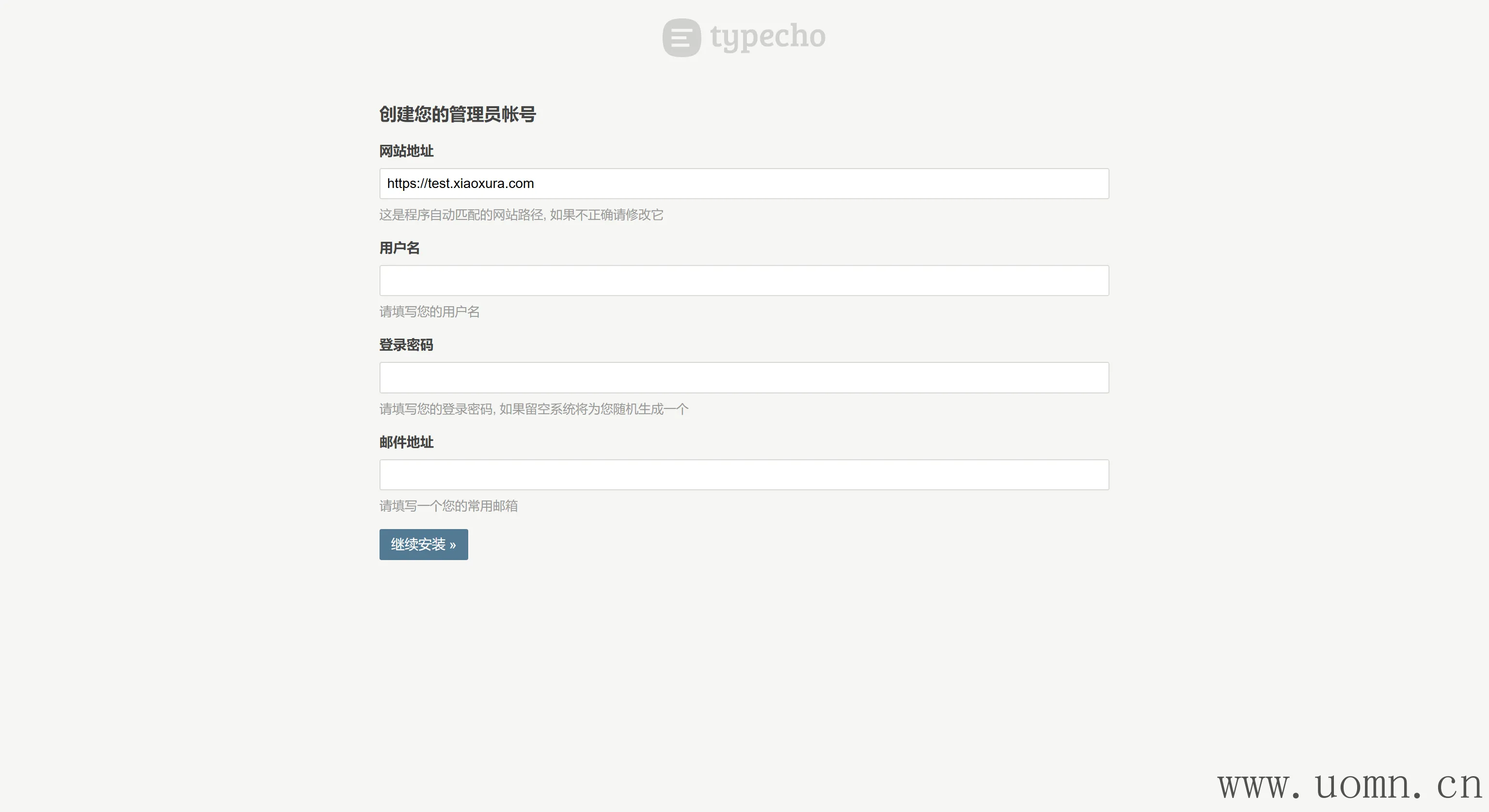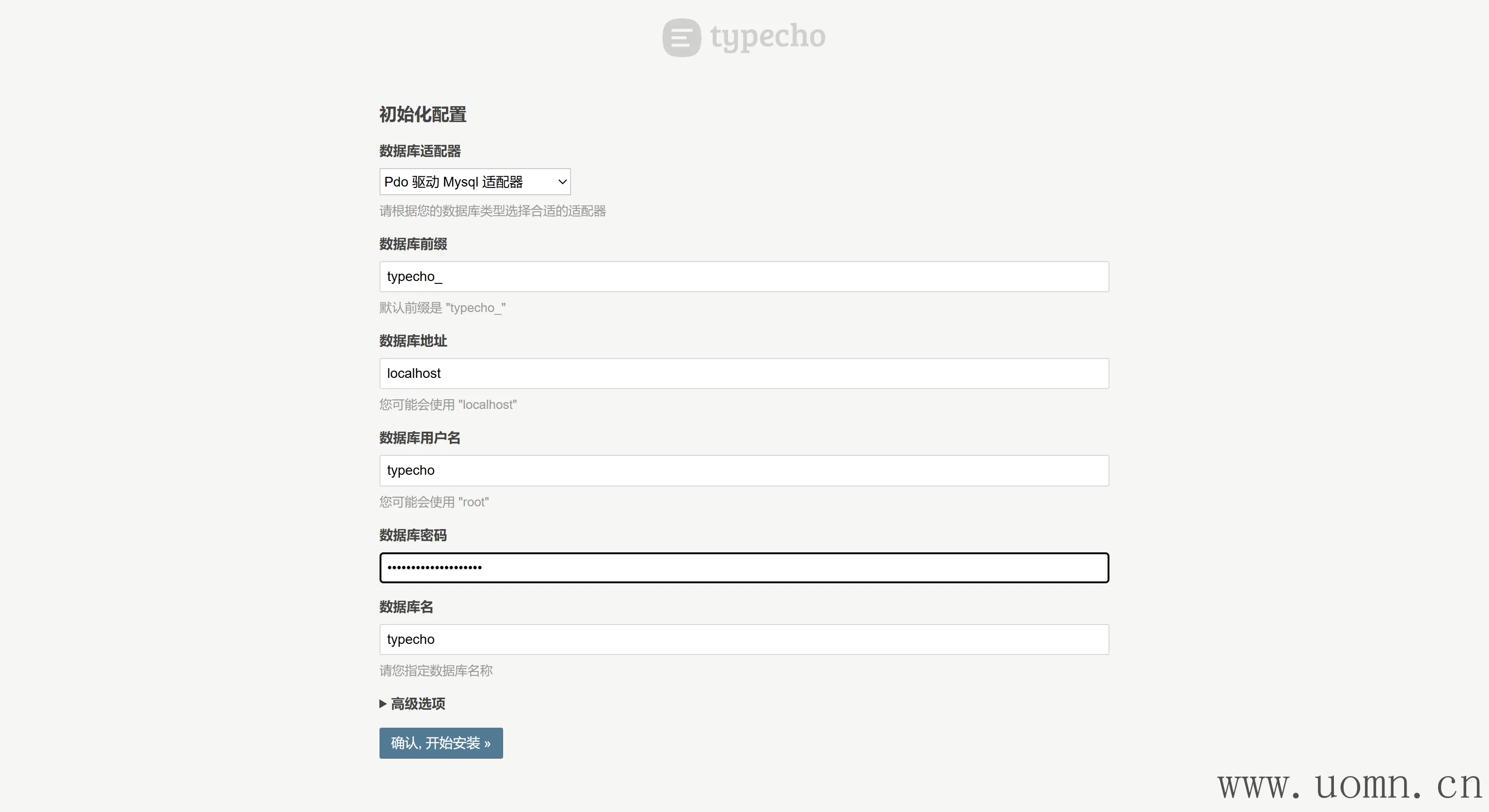 将数据库信息填写到Typecho中,下边的数据库地址需要修改为MySQL的容器名,要不然连不上,例如mysql8