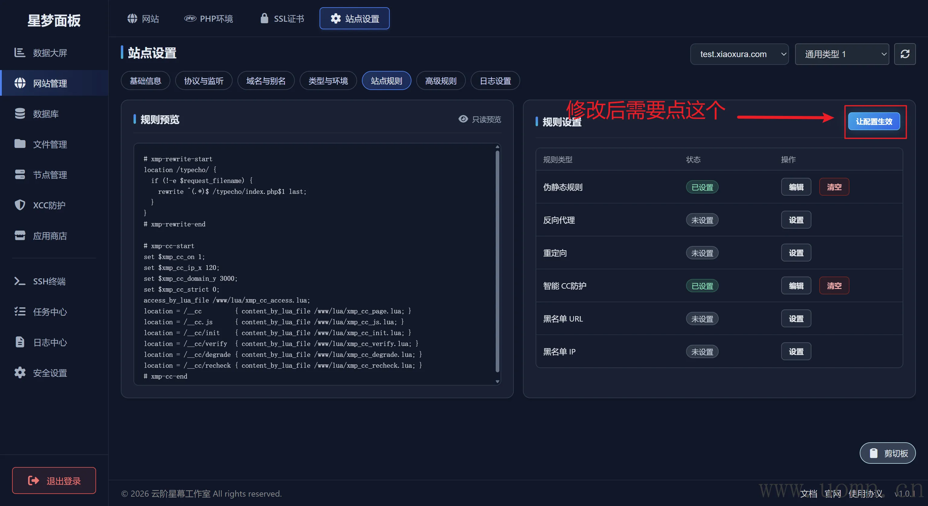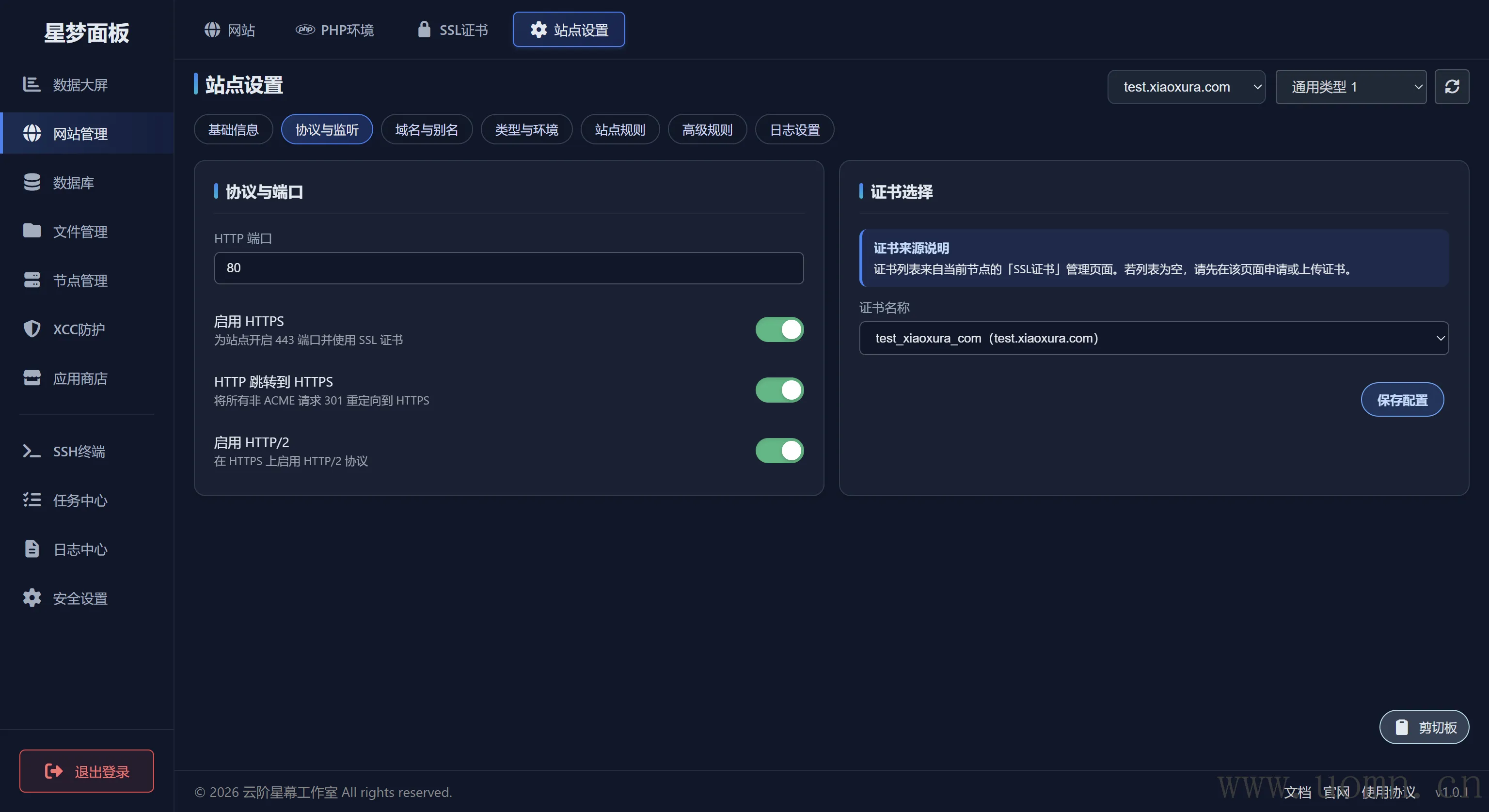能够选择在网站列表里的网站进行设置,例如SSL、伪静态等