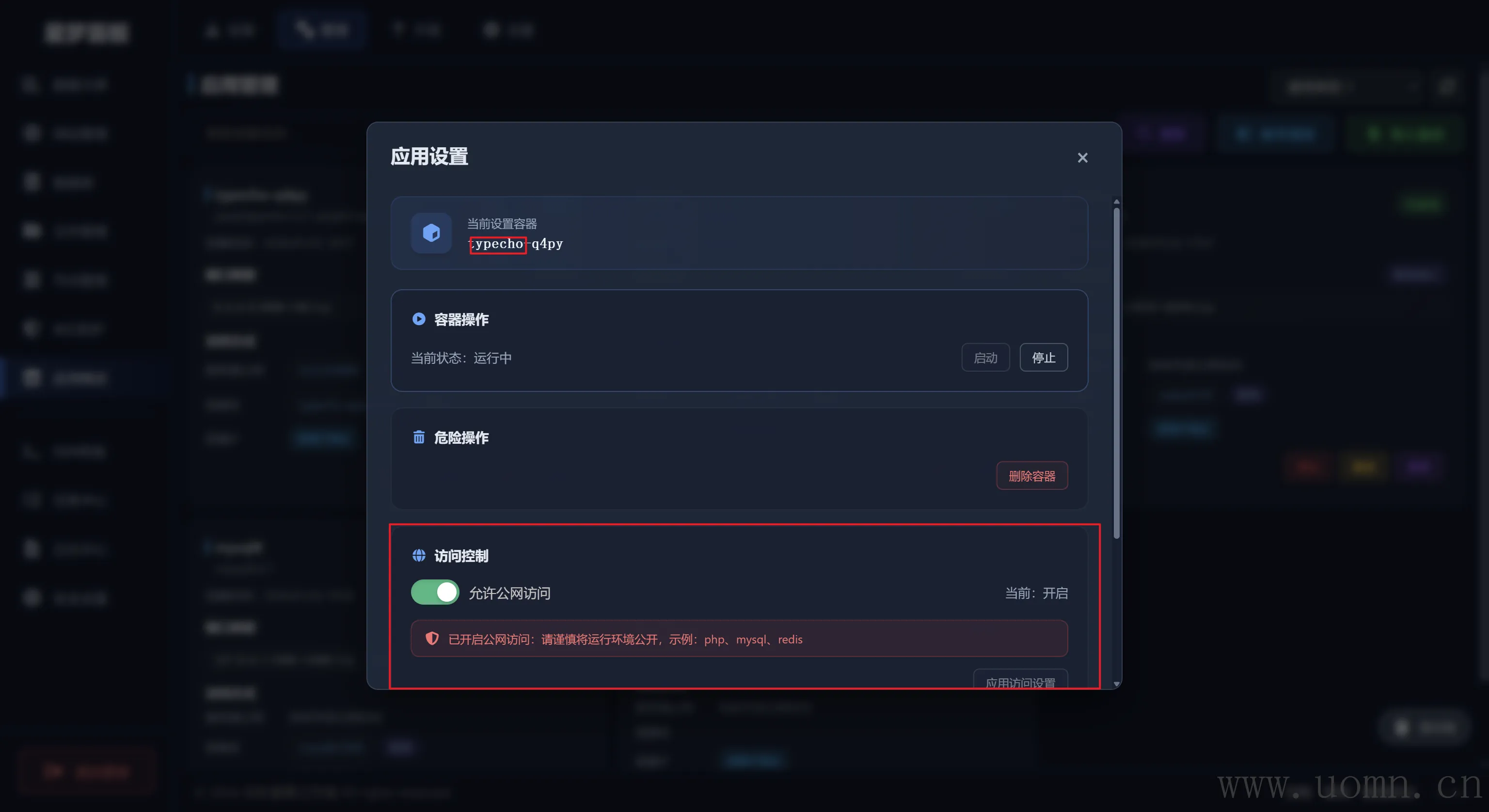 注意:还需要开启通用节点上Typecho容器的外部访问才行