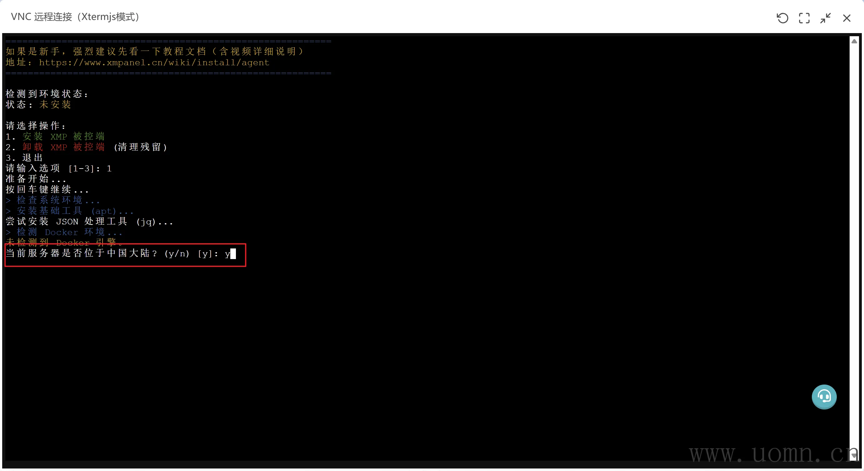 当前服务器是否位于中国大陆? 国内直接回车,国外输入n再回车