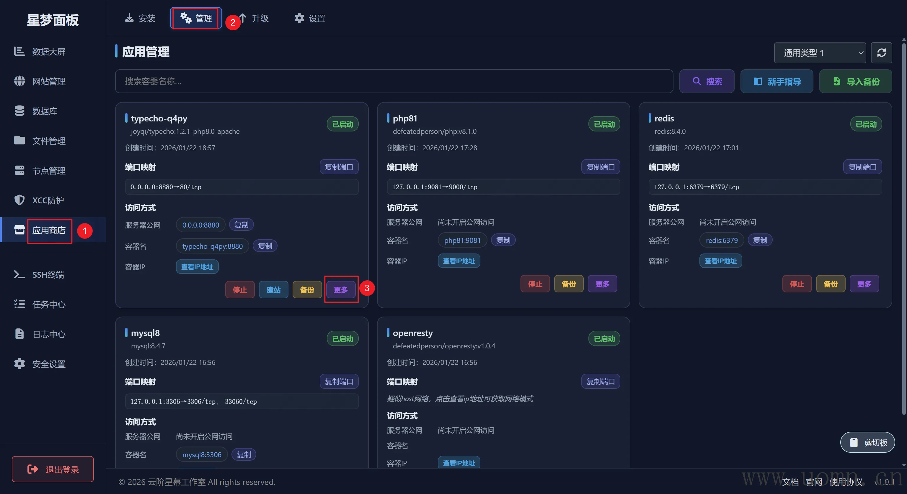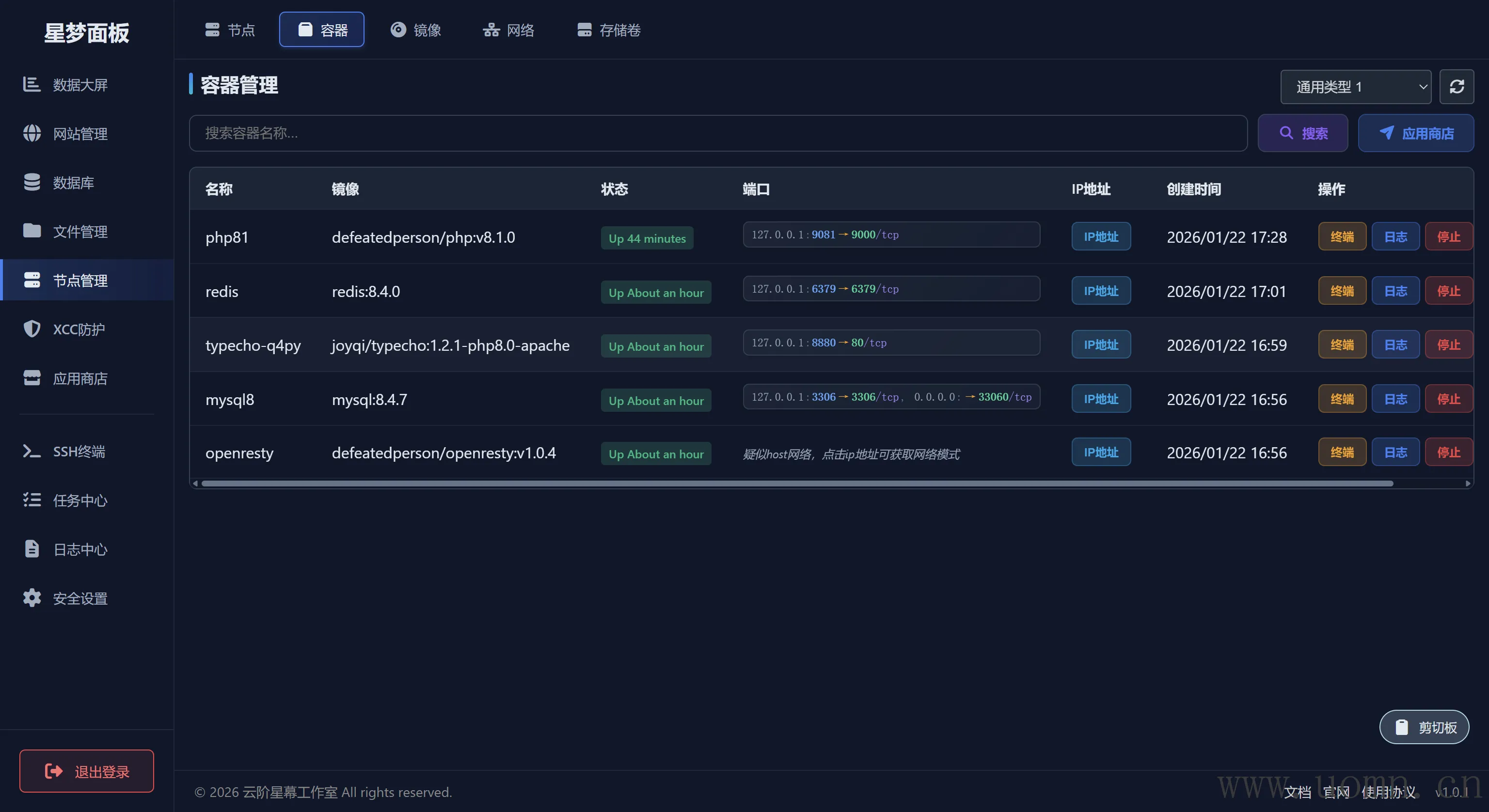 自然是用来管理应用容器的页面,这里就不多说了