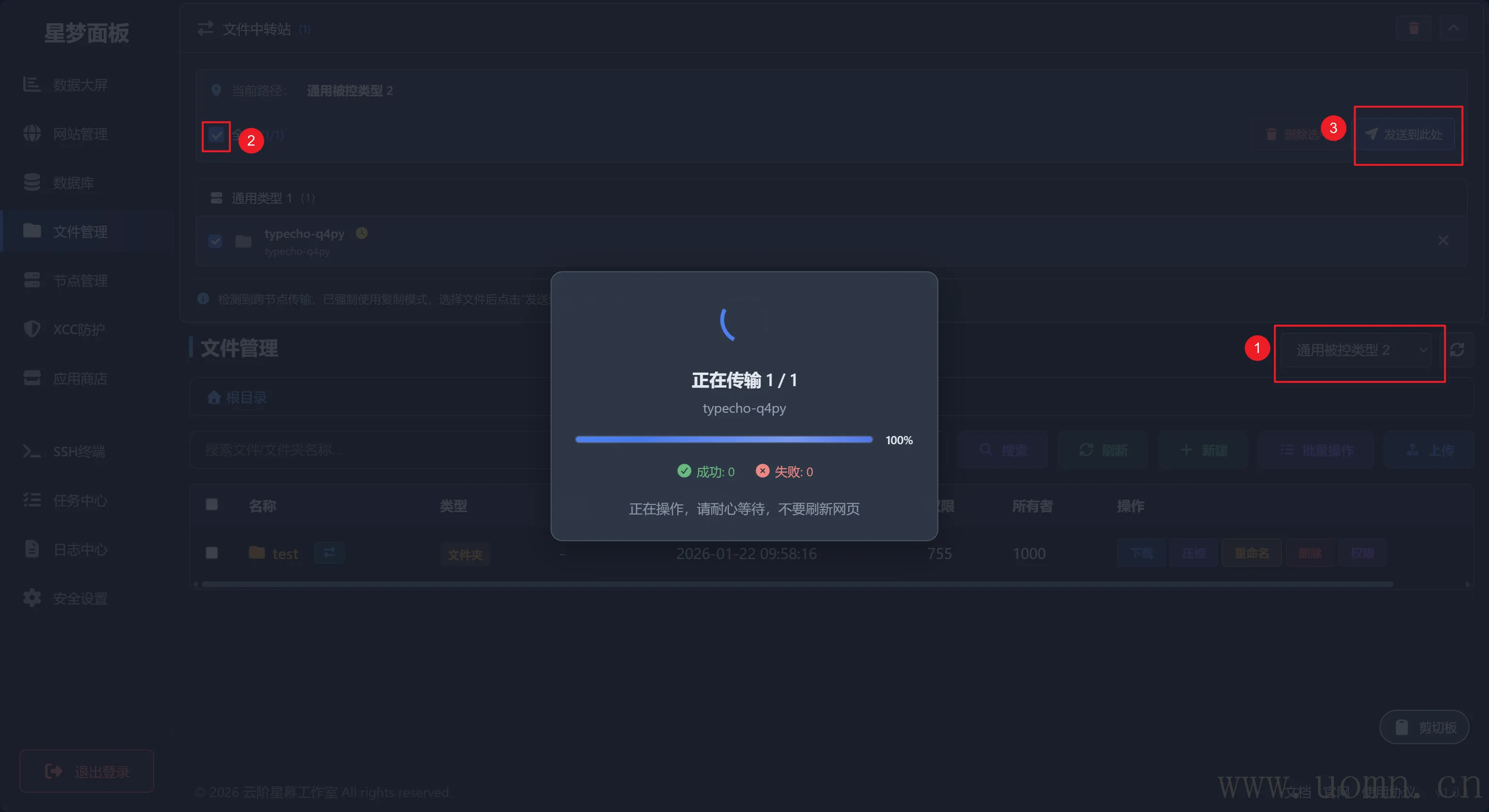 除此之外,还能跨节点传输文件,例如,在节点一将文件发送到了文件中转站,然后切换到节点二上,就可以在文件中转站发送文件到节点二上,免去手动下载、上传的步骤