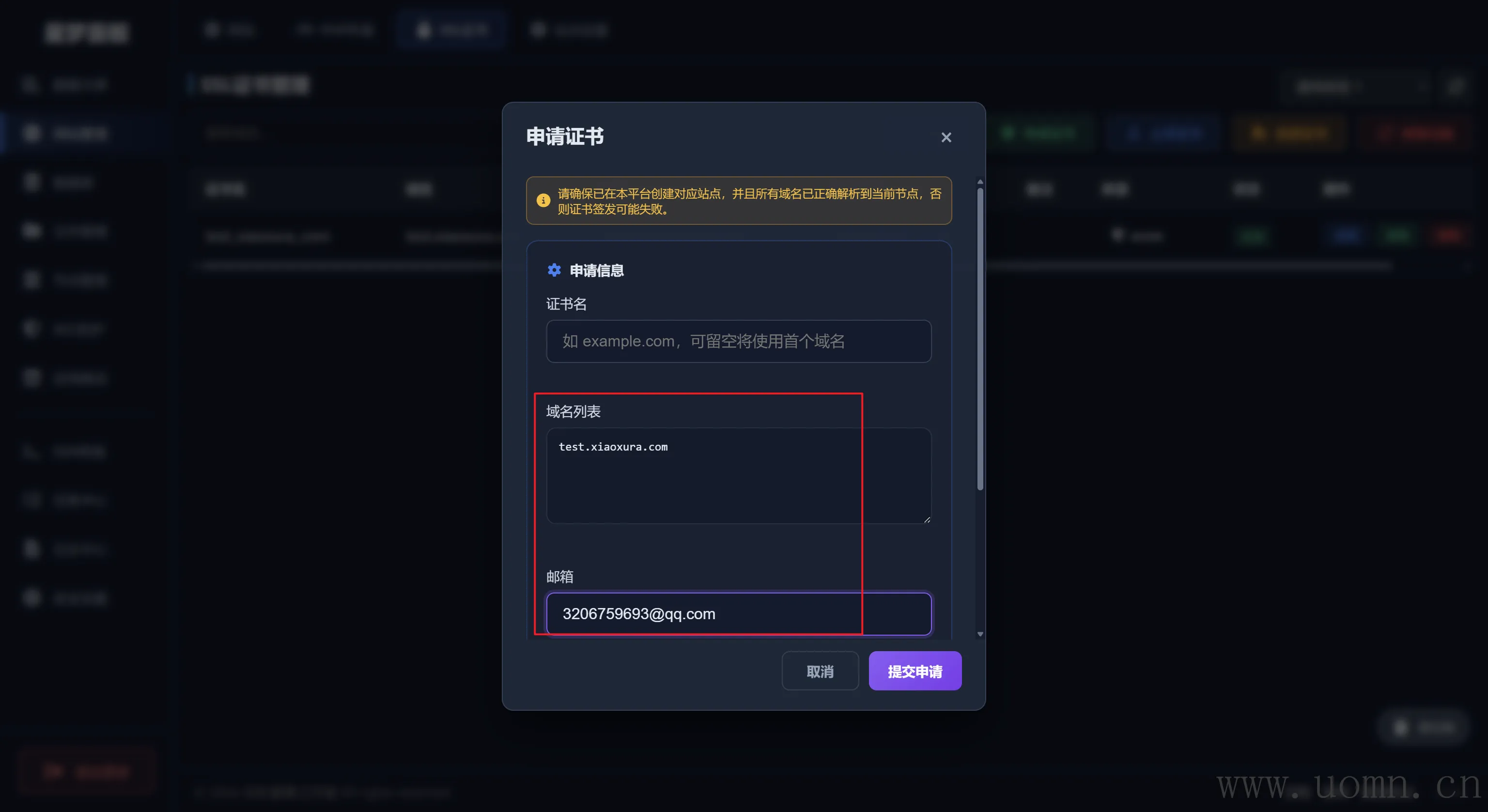 申请证书只需要填写域名和邮箱就行了